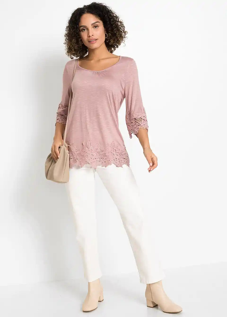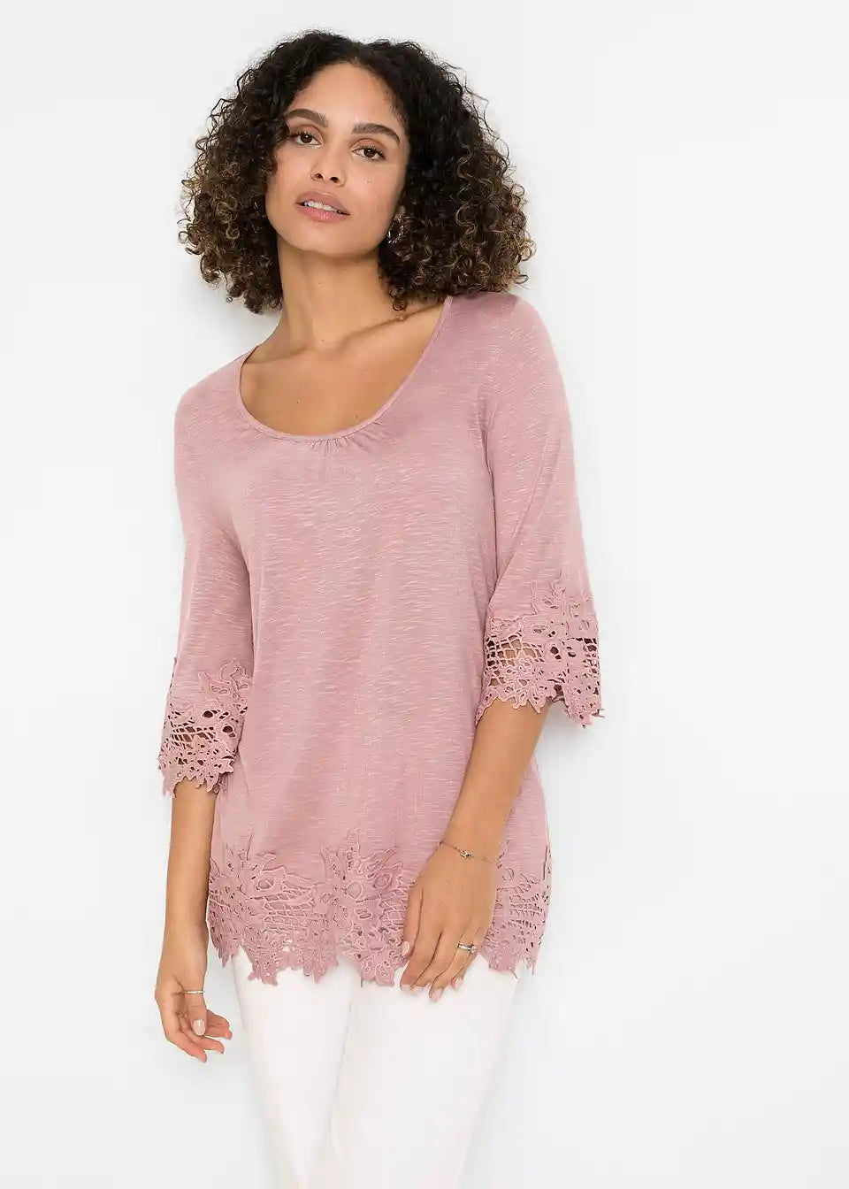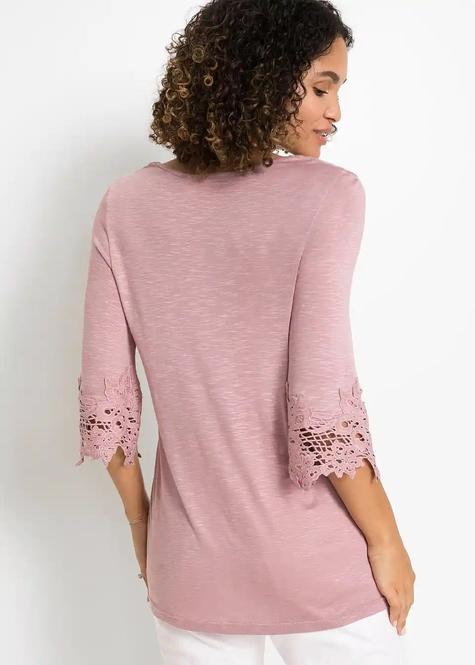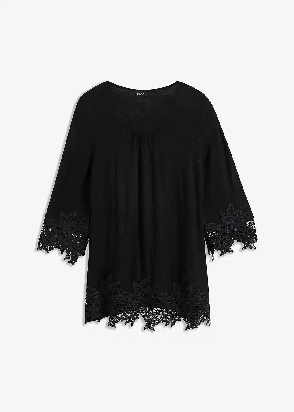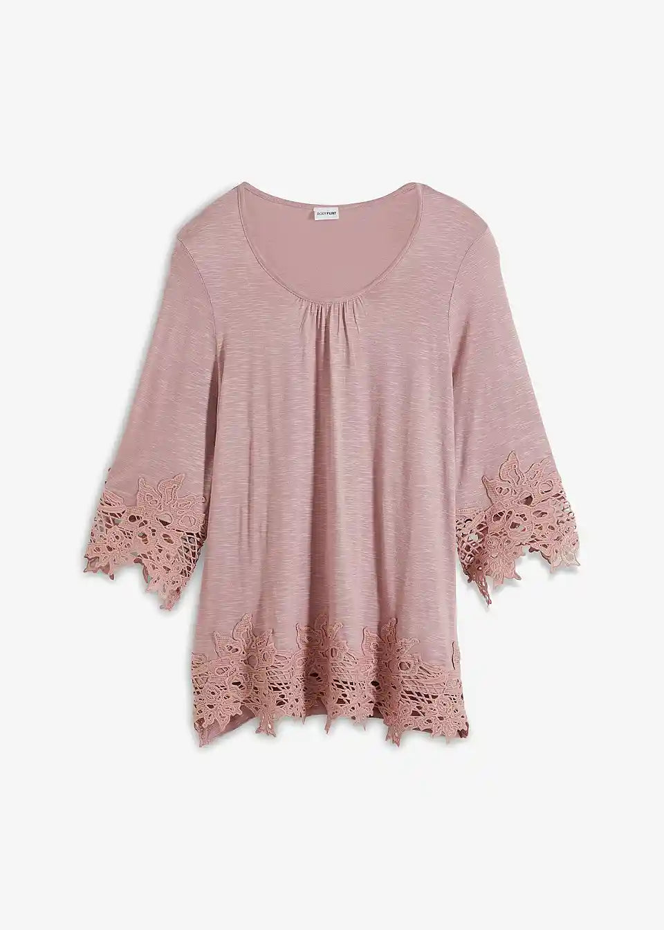 Ljetna majica od BODYFLIRT-a. Majica je ukrašena čipkom na rukavima i rubu. Duljina u vel. 36/38 cca 68 cm.