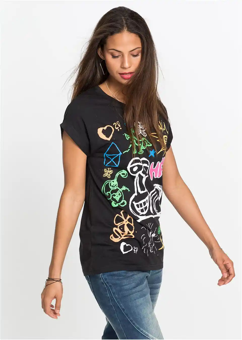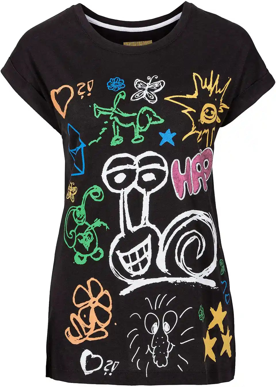 Ovaj cool T-Shirt impresionira svojim duhovitim printom sprijeda. Majica je lagano strukirana, ali i dalje udobno ležerna. Kratki, spušteni rukavi dolaze s malim preklopom. To je jednako trendi detalj kao i vidljivo obrađeni šavovi na desnoj strani. Okrugla majica je moderan pratilac za slobodno vrijeme, a svojim zabavnim printom privlači mnoge zainteresirane poglede, pa čak i poneki osmijeh.