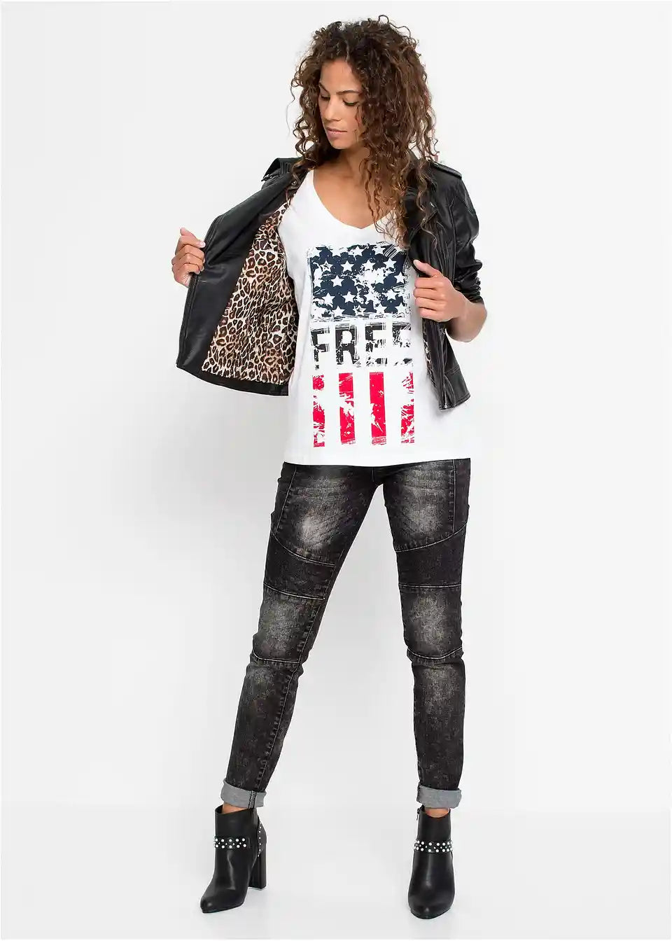 Idealni suputnik za trendi outfite je ova cool majica s printom na prednjoj strani. Moderni statement print sa stiliziranim, višebojnim motivom osigurava moderan izgled. Cool detalj je duboki, široko obrubljeni V-izrez. Lagano strukirani, uski kroj s posebno kratkim rukavima daje T-Shir-u odličan kroj.