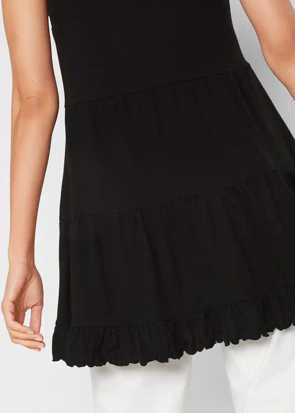 Ljetni dugi top s preslatkim detaljima nabora na širokim naramenicama i razigranim volanima