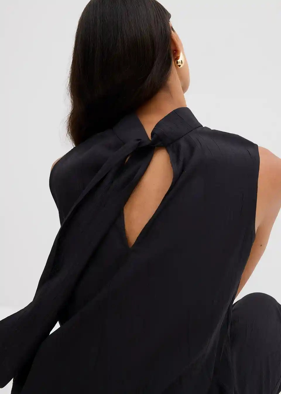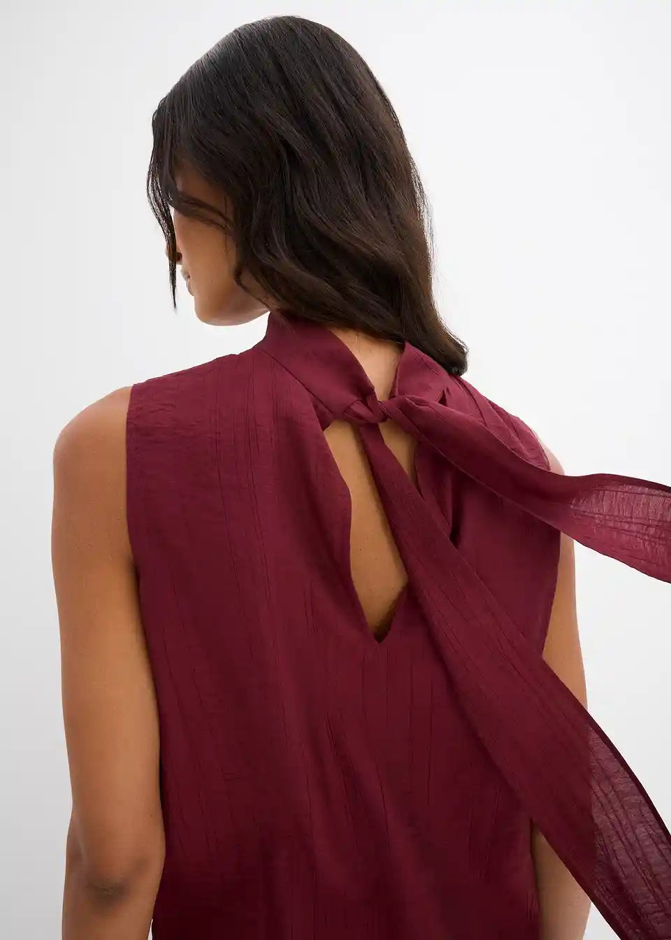 Long-Top od strukturirane tkanine, dublji izrez na leđima te vezanje na stražnjoj strani