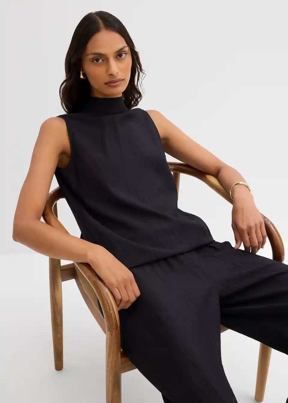 Duga majica bez rukava sa strukturom od materijala s udjelom viskoze