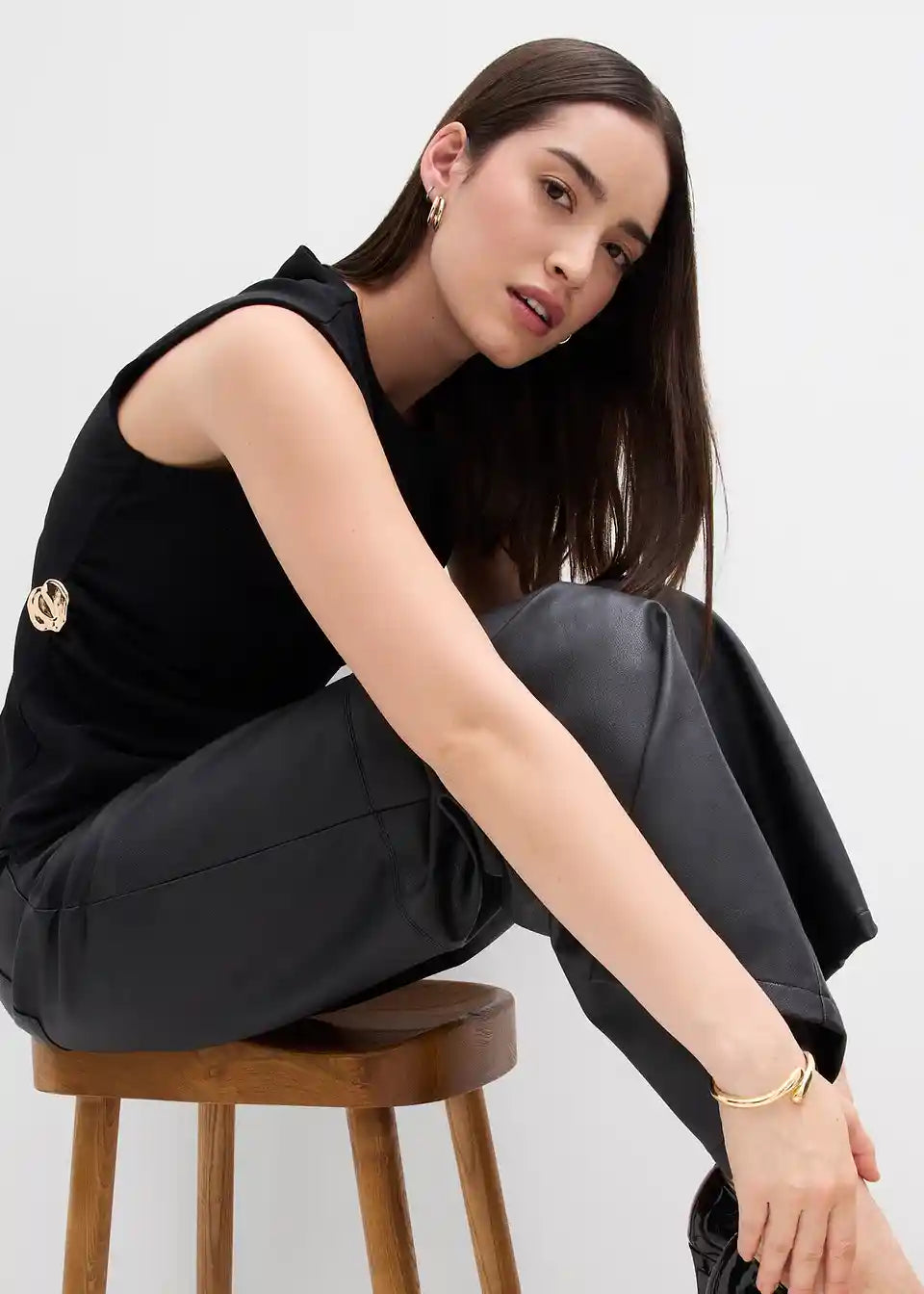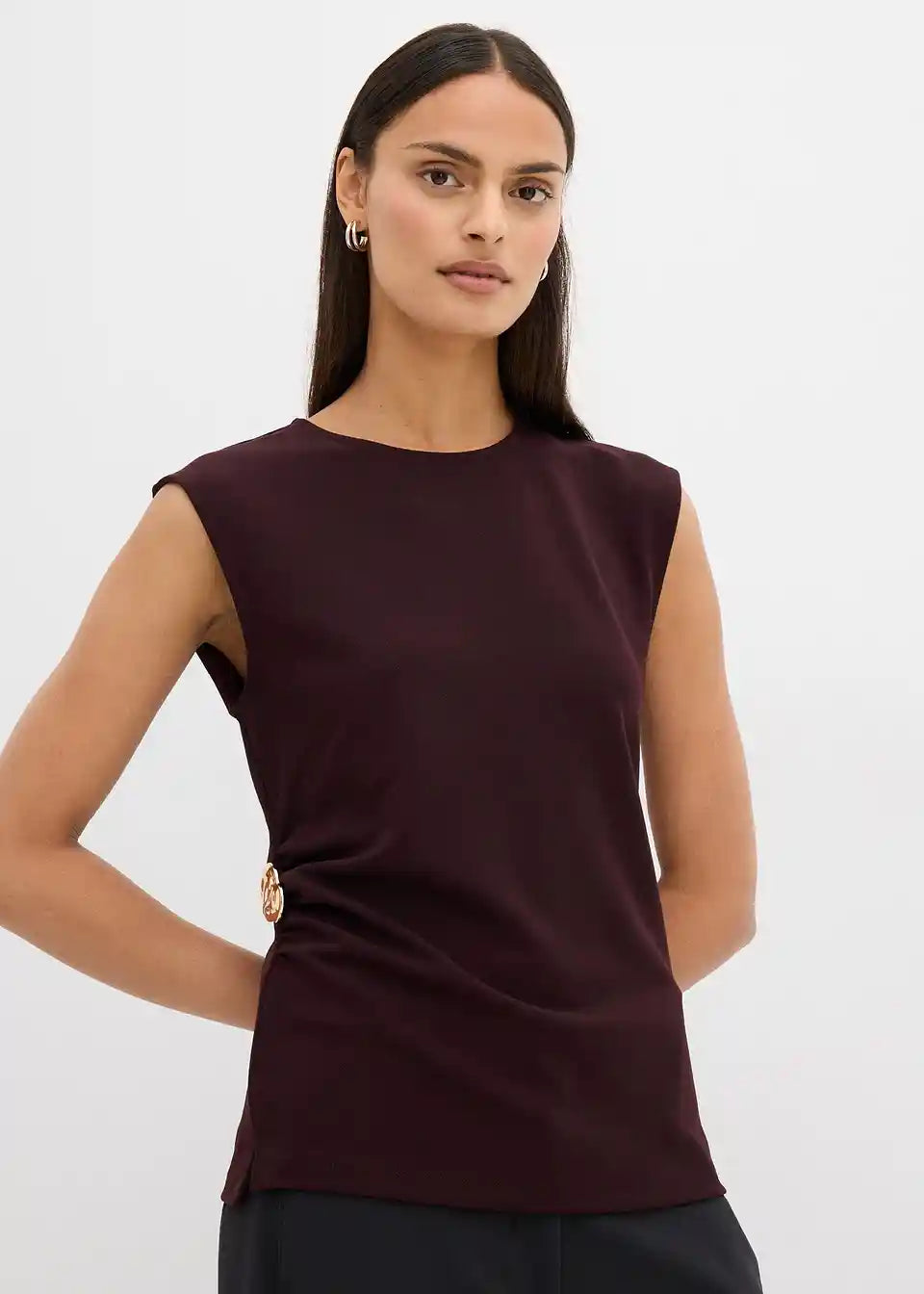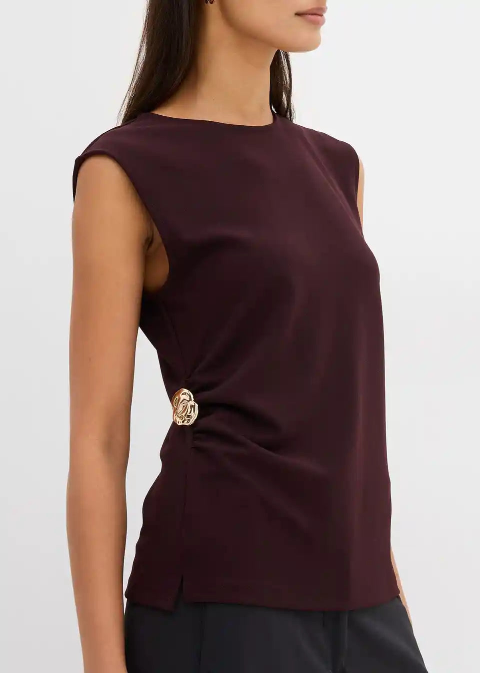 Majica bez rukava s ukrasnom kopčom od krepa