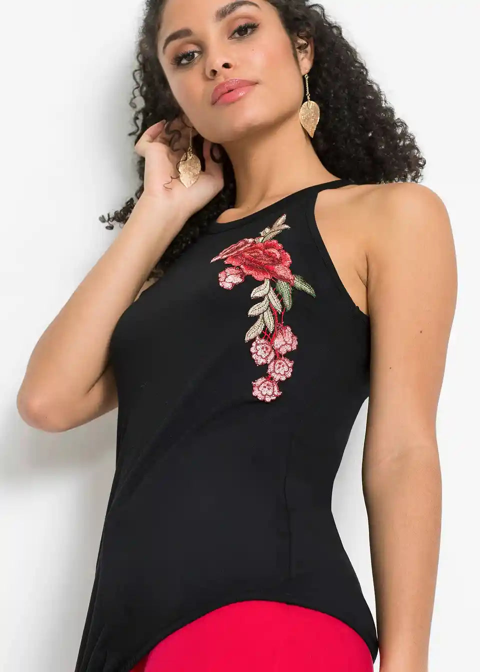 Top s vezom predstavlja moderan istaknuti komad u ormaru i ne smije nedostajati u nadolazećoj sezoni. Sa svojim krojem bez rukava atraktivno naglašava ramena i leđa. Upečatljiv detalj je cvjetni vez sprijeda. Sa stražnje strane TOP BODYFLIRT otkriva svoj šarmantni dio uz lijep prorez i mali gumbić za zatvaranje. Zahvaljujući elastičnoj gumi na donjoj strani ruba, gornji dio koji prekriva bokove nježno se prilagođava silueti. U kombinaciji s kratkim traper hlačama i sandalama stvara se moderan outfit za dan.