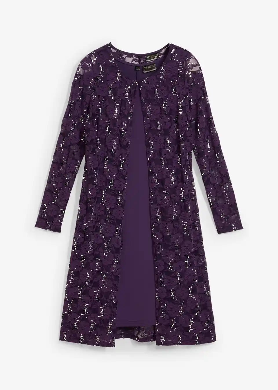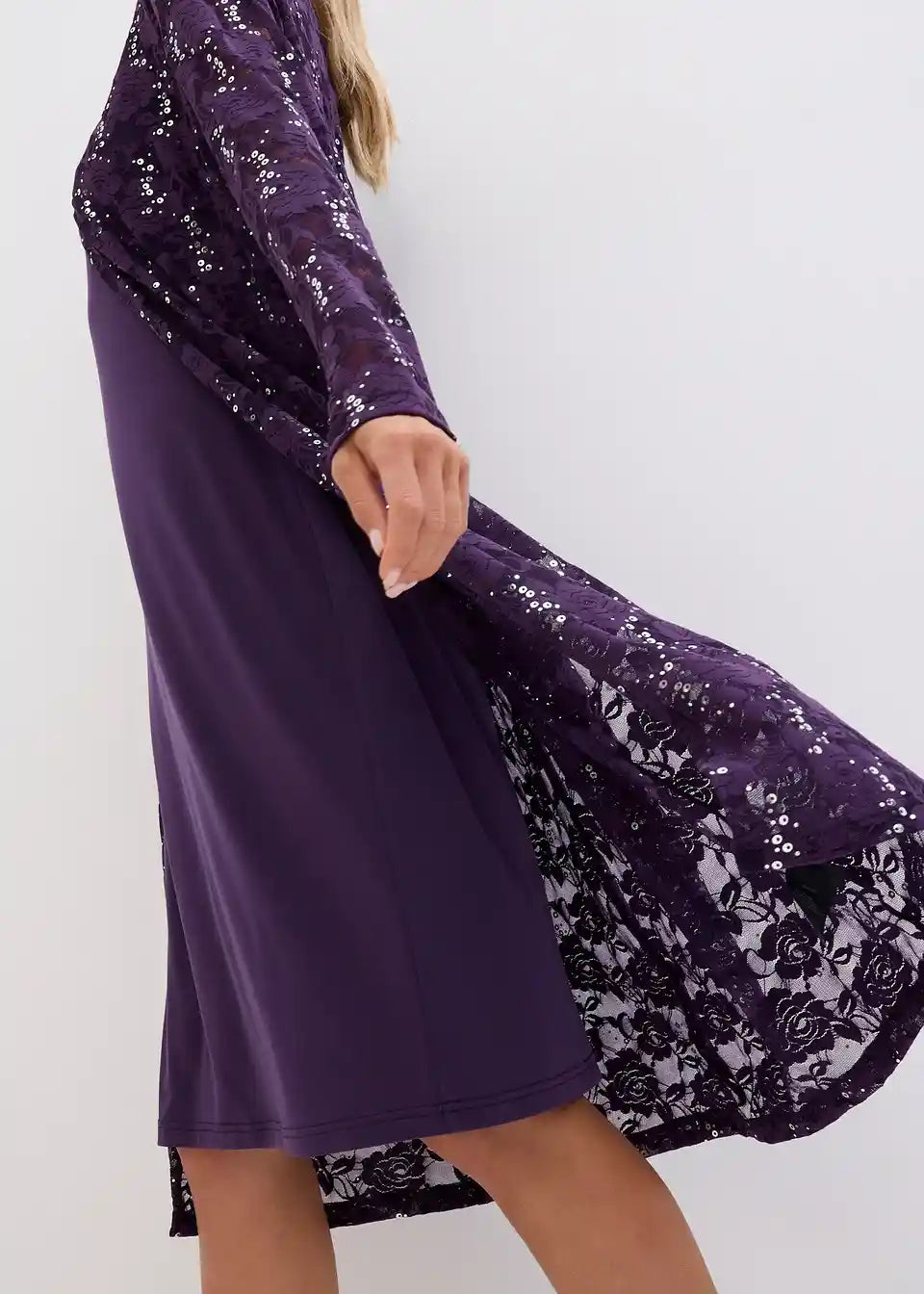 Svečana haljina s čipkastim kardiganom i ukrasnim kamenjem