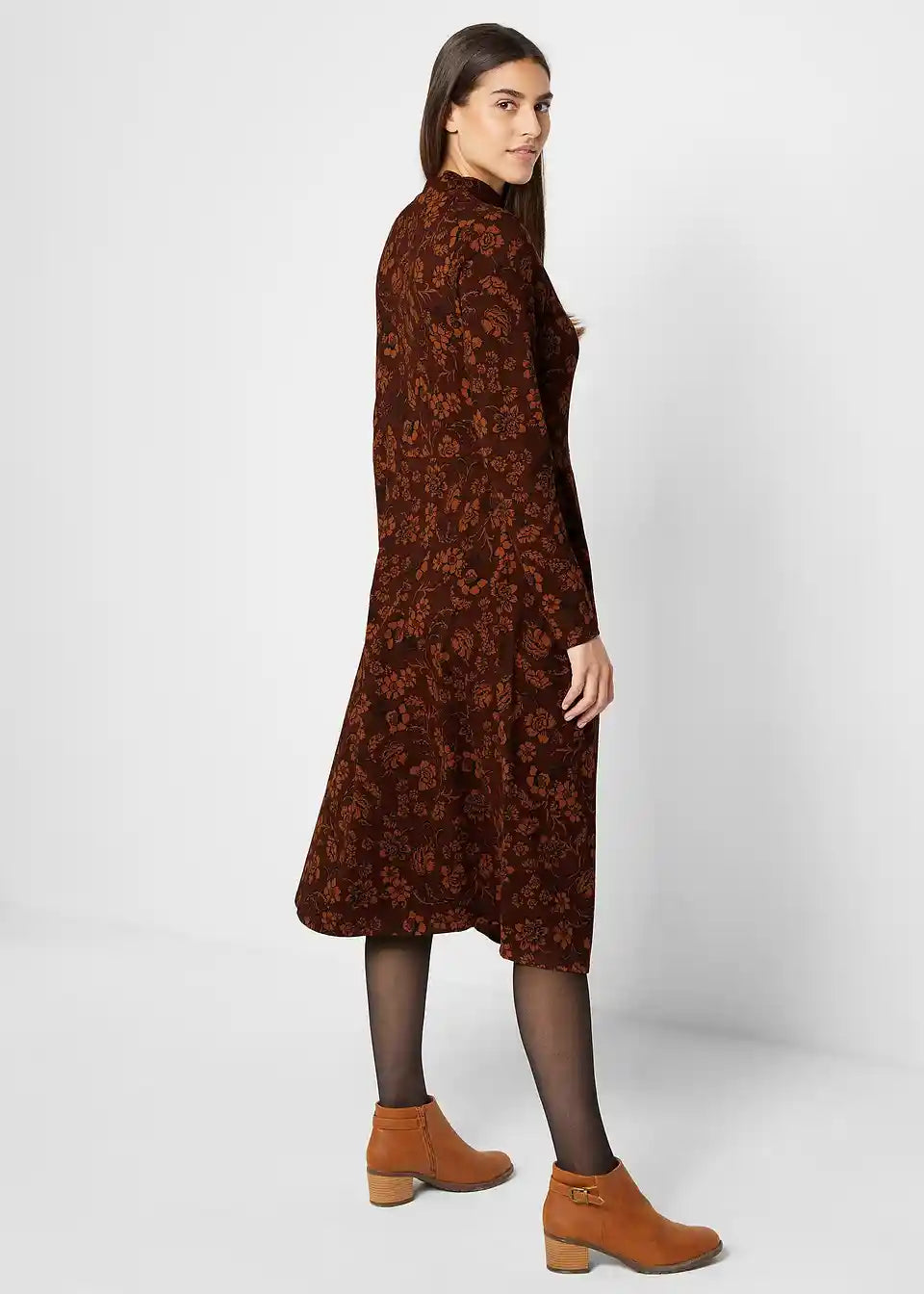 Jerse haljina s cvjetnim uzorkom i visokim ovratnikom