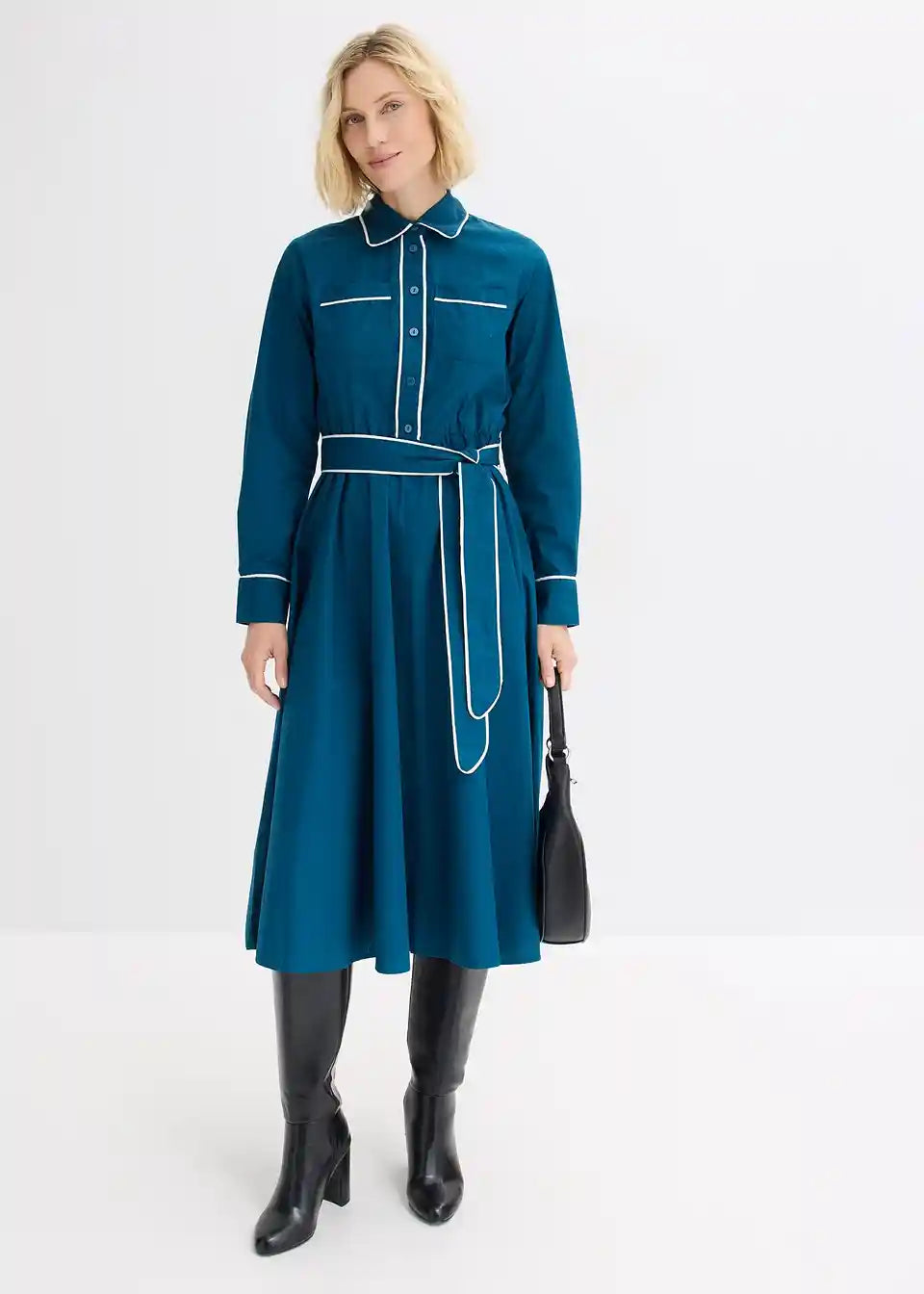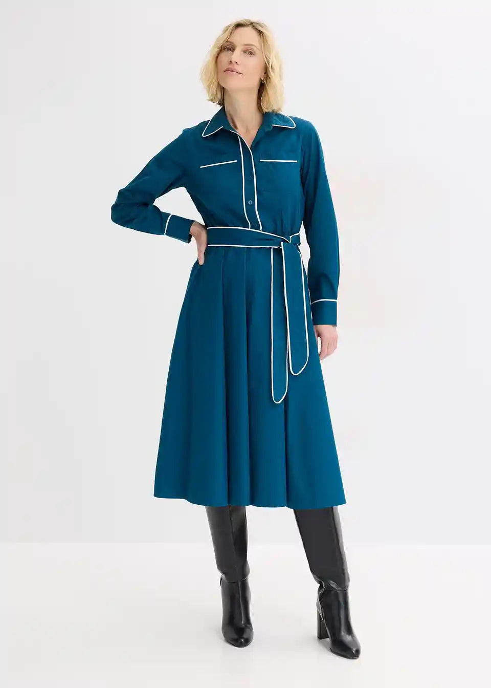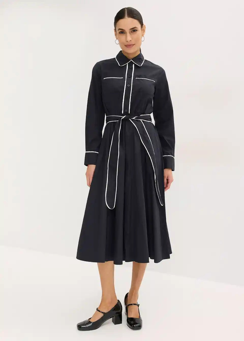 stilizirana košulja-haljina s kontrastnim paspulama