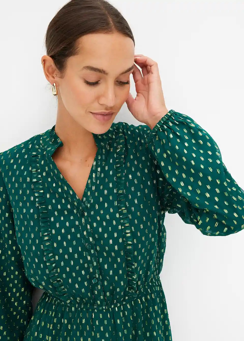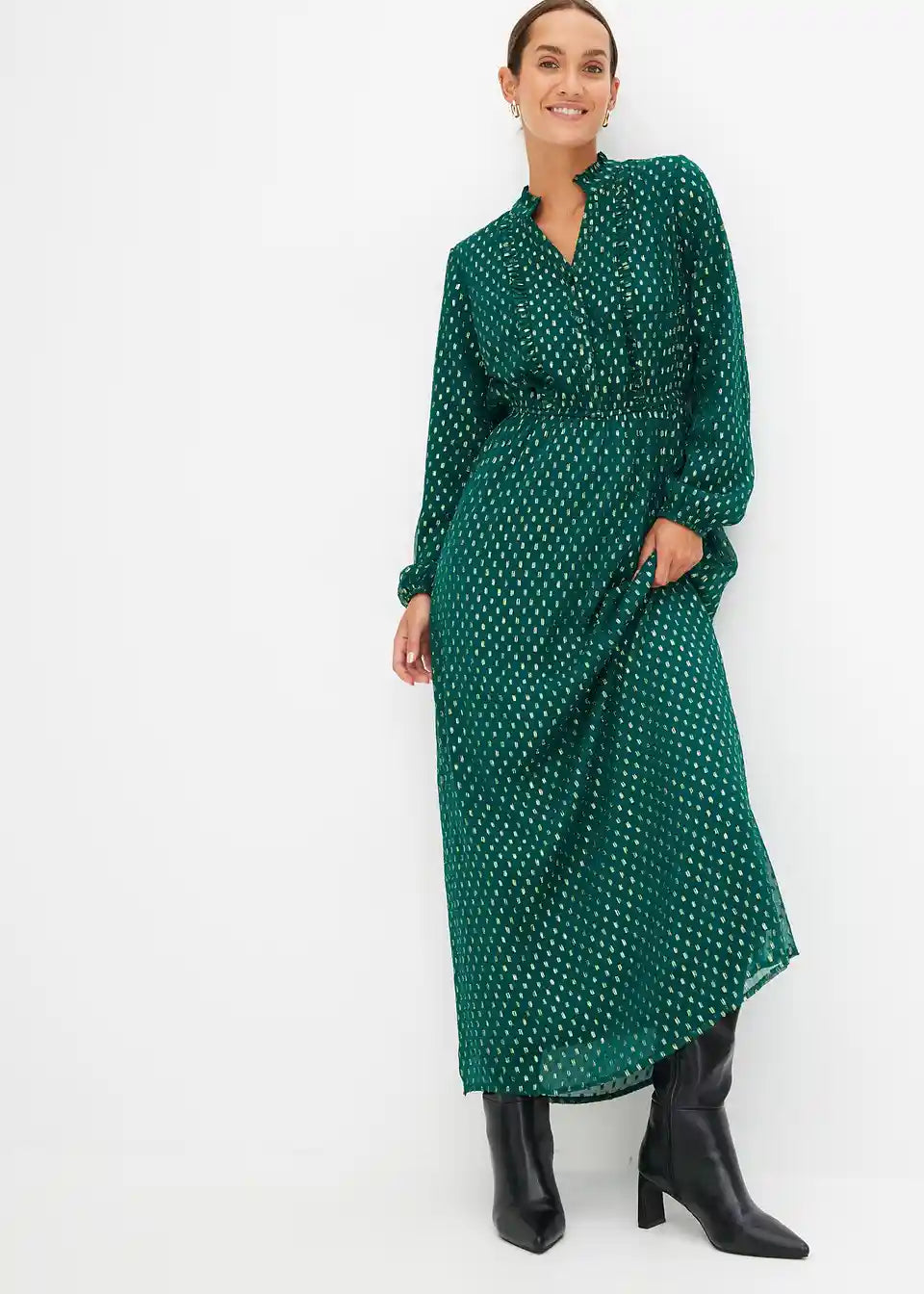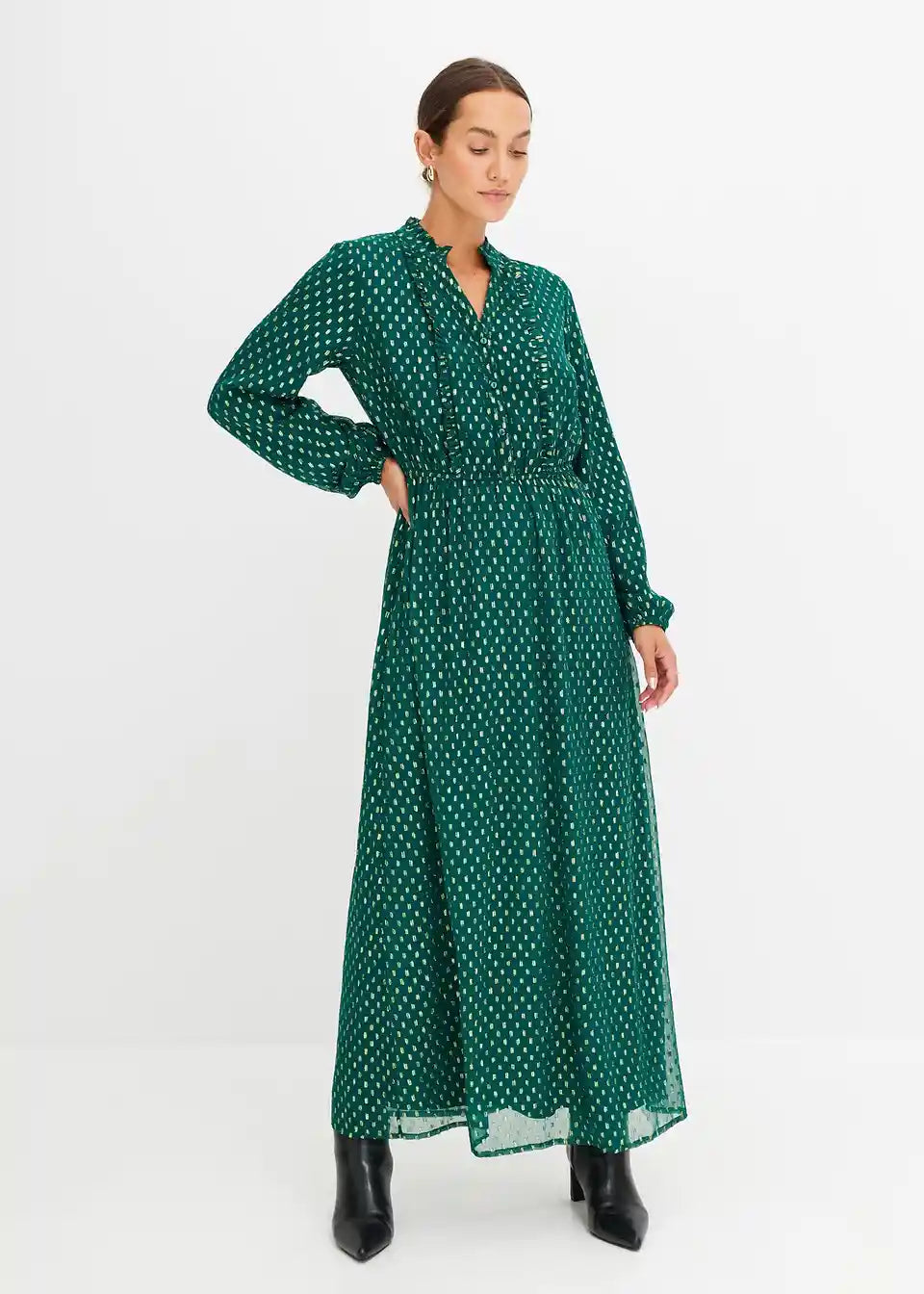 Elegantna Maxi haljina s efektom sjaja i kopčanjem na gumbe