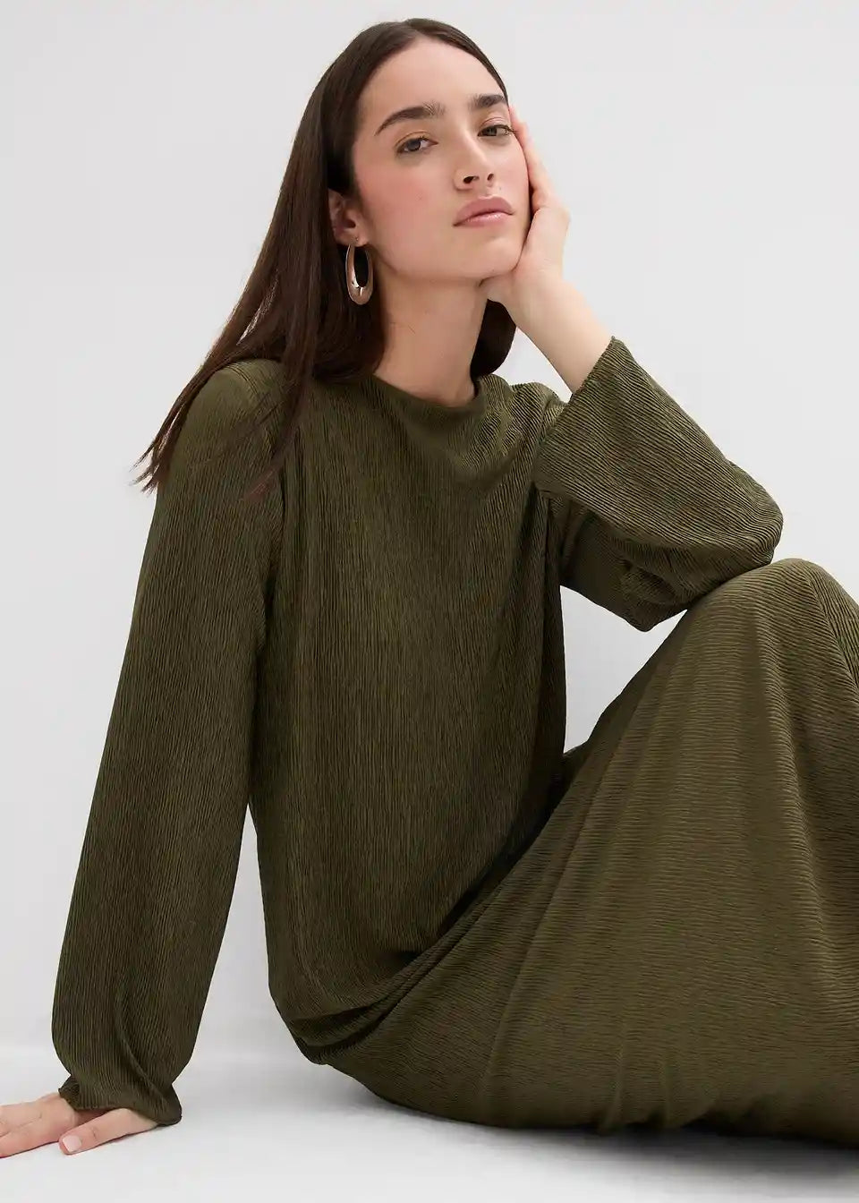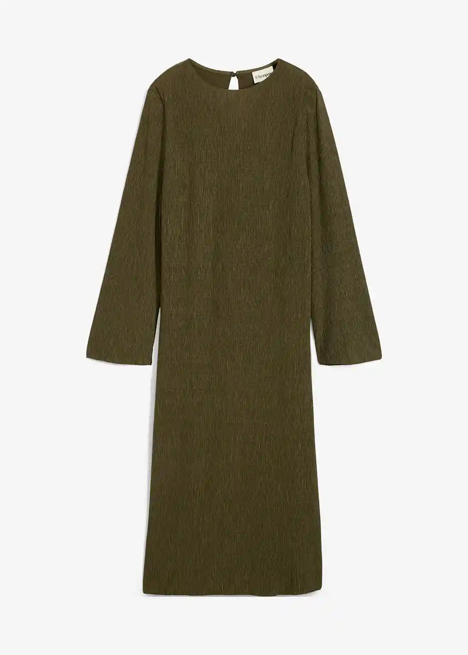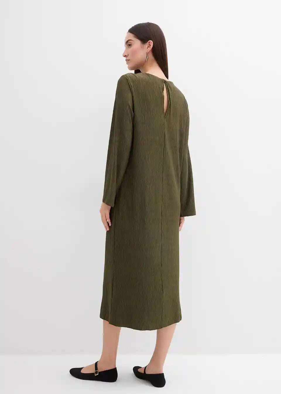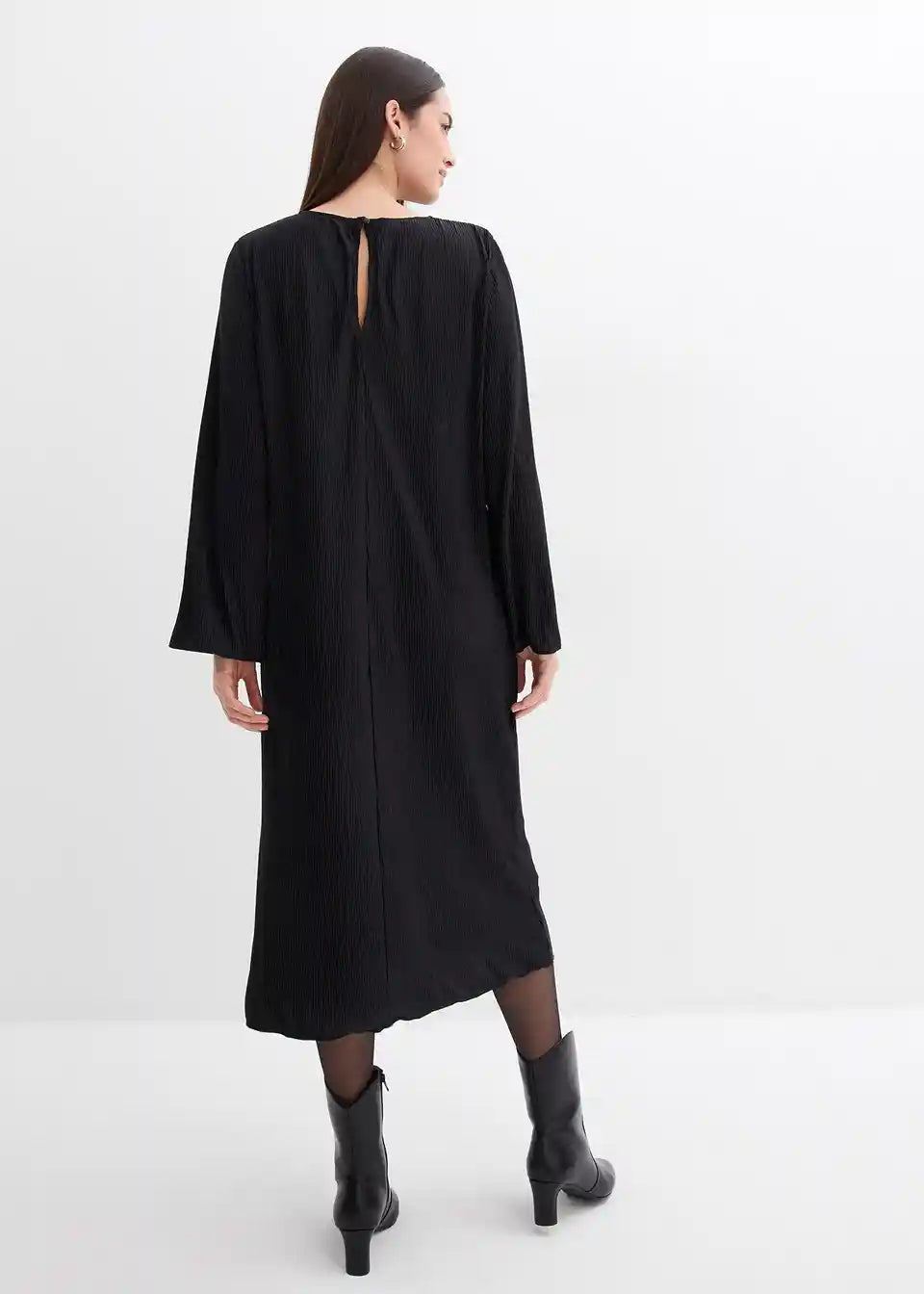 Pravo rezana haljina s dugim rukavima, otvor sa šlicom straga u Crinkle izgledu