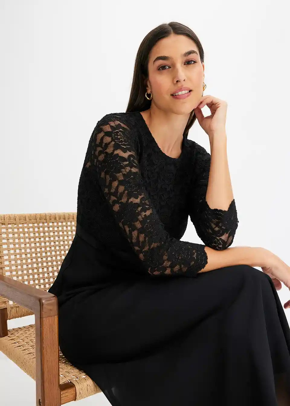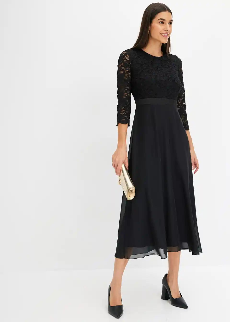 Midi haljina od laganog šifona s čipkanim gornjim dijelom