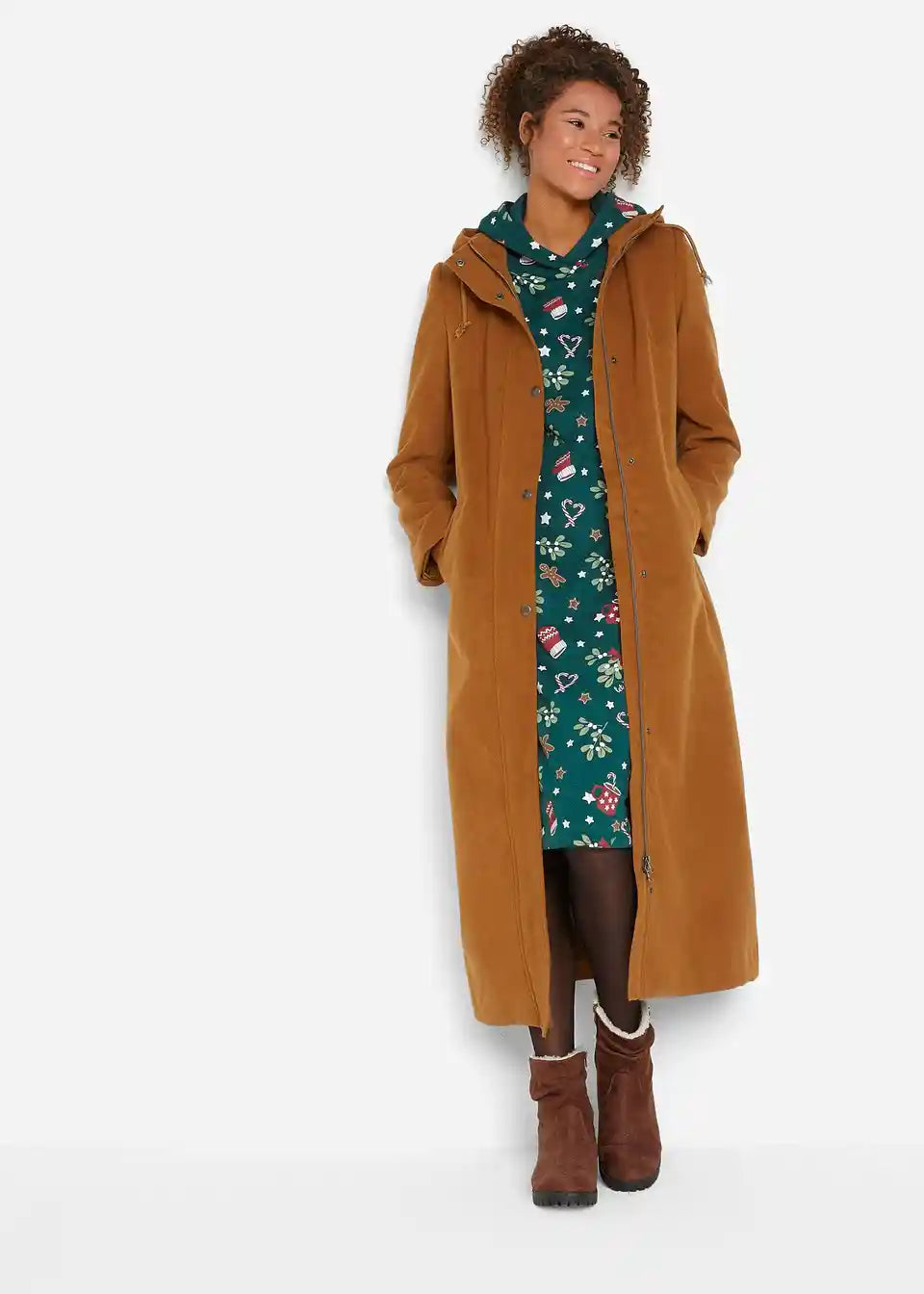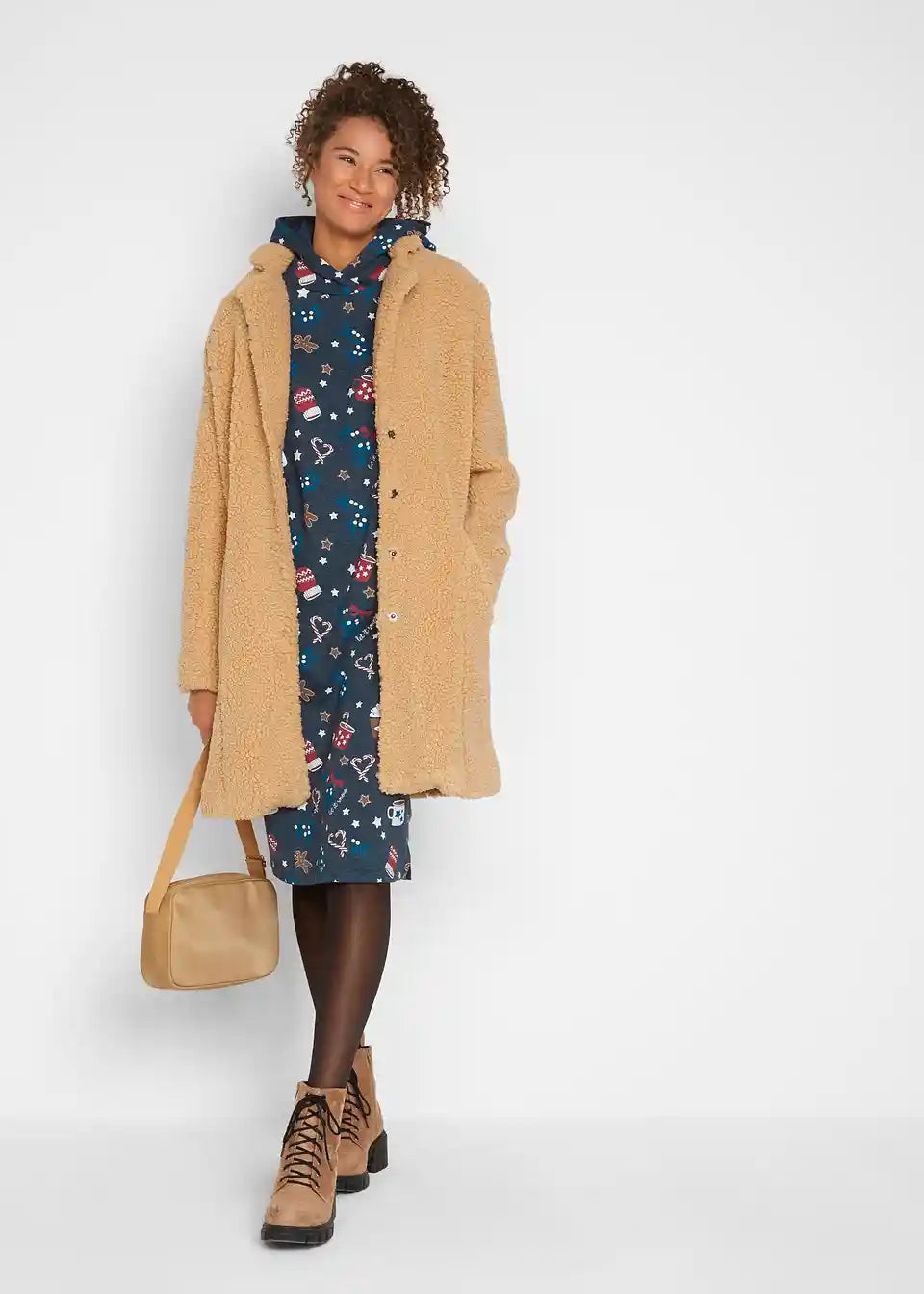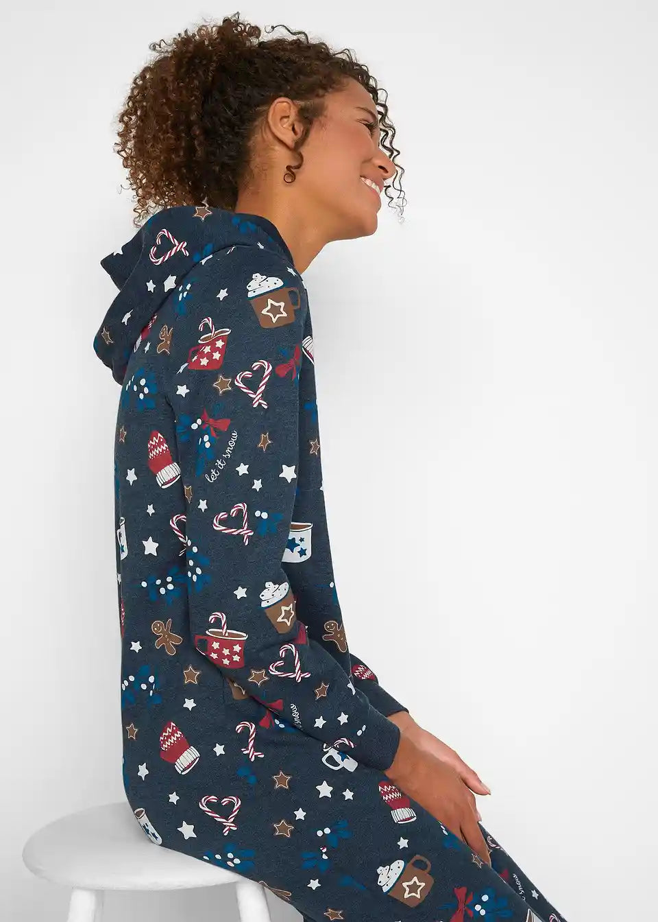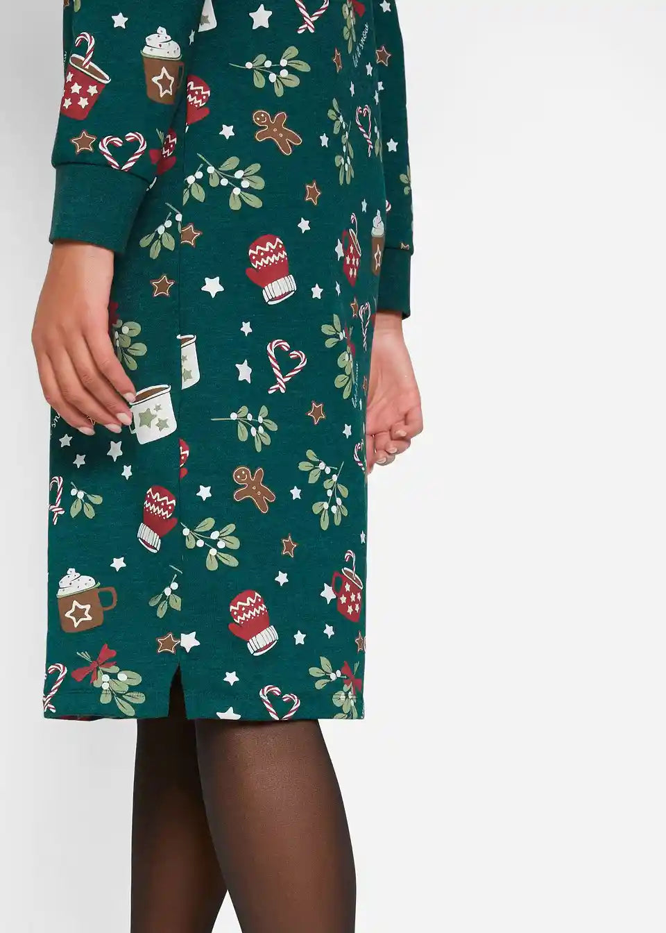 Božićno tiskana Sweat haljina s kapuljačom i bočnim prorezima