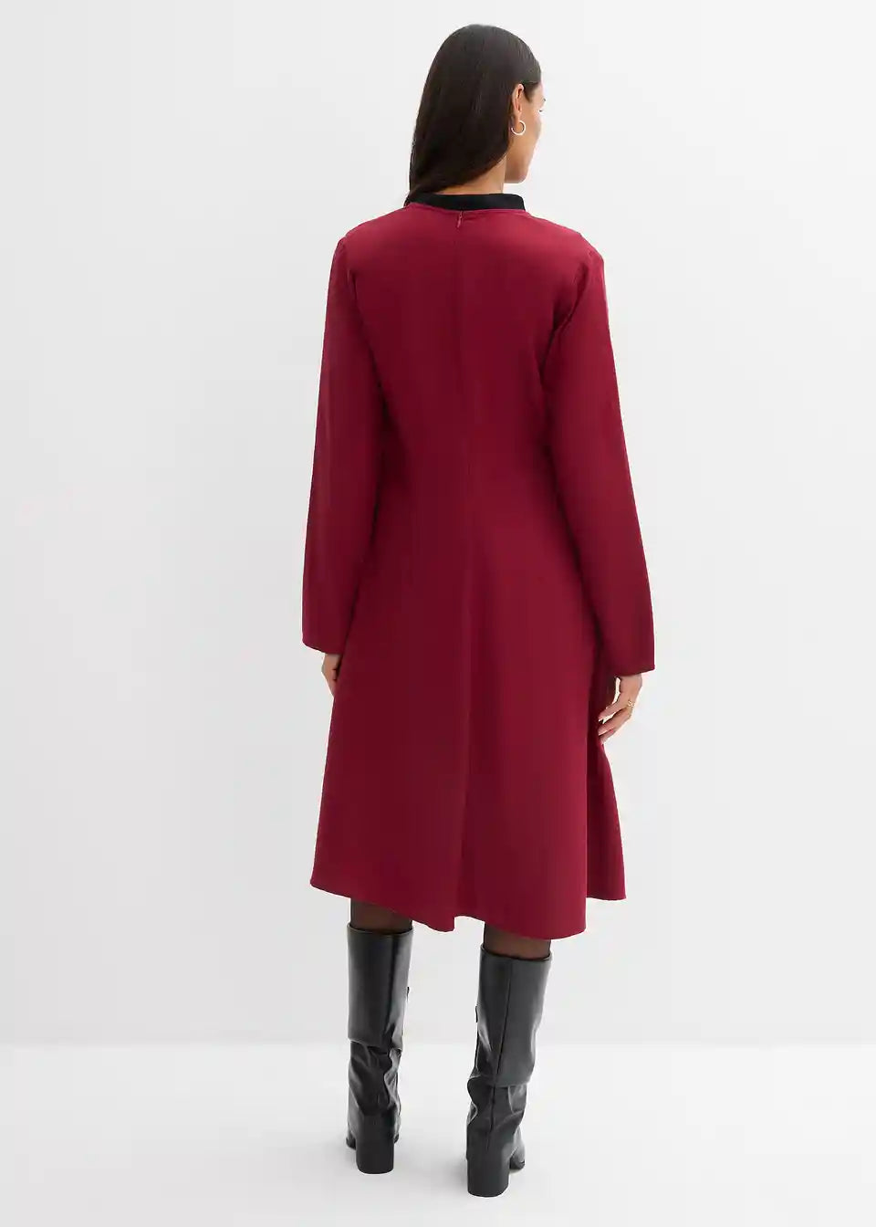 Poluduga, lepršava haljina s ušivima na završecima rukava te ukrasnim šavom sprijeda i straga. Skriveni patentni zatvarač straga.