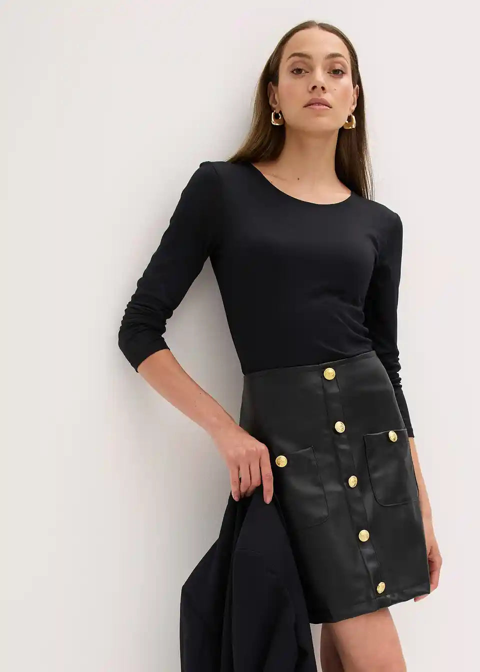 Stilna mini suknja s izvrsnim krojem i zlatnim gumbima sprijeda