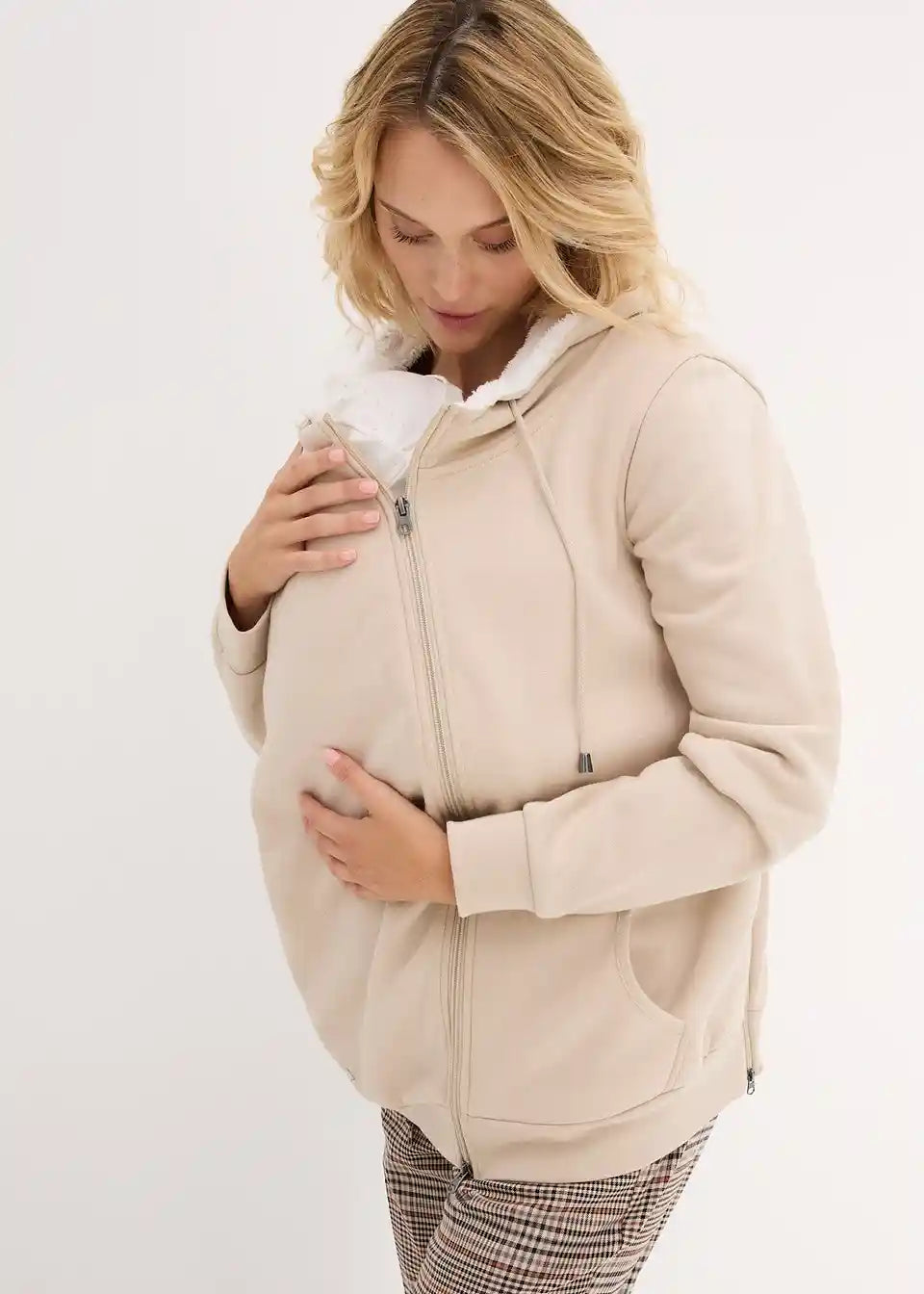 Udobna trudnička trenirka za hladne dane. Umetak za bebu služi samo za zaštitu djeteta od vjetra i vremenskih nepogoda, a ne kao funkcija nošenja!