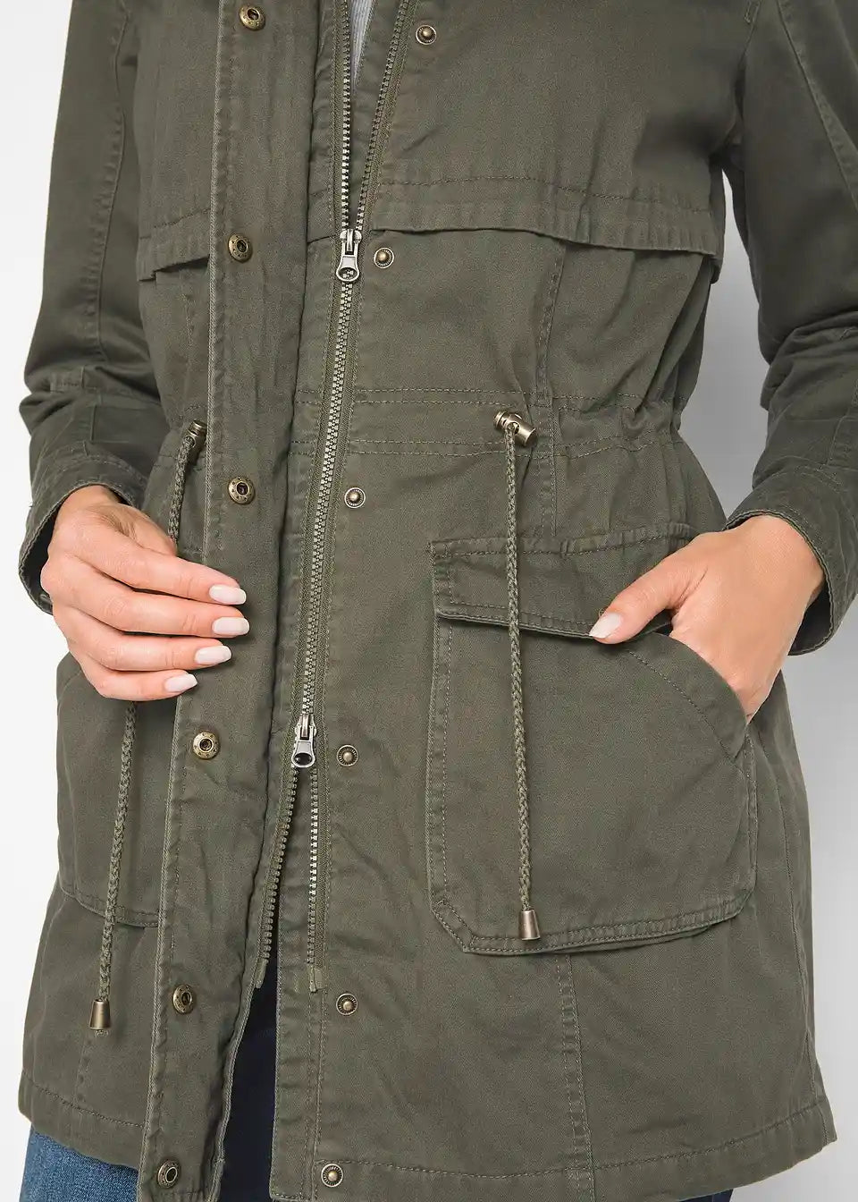 Atraktivan parka od pamuka s kapuljačom i vezicom u struku
