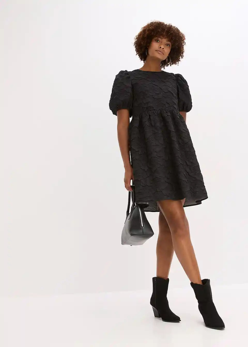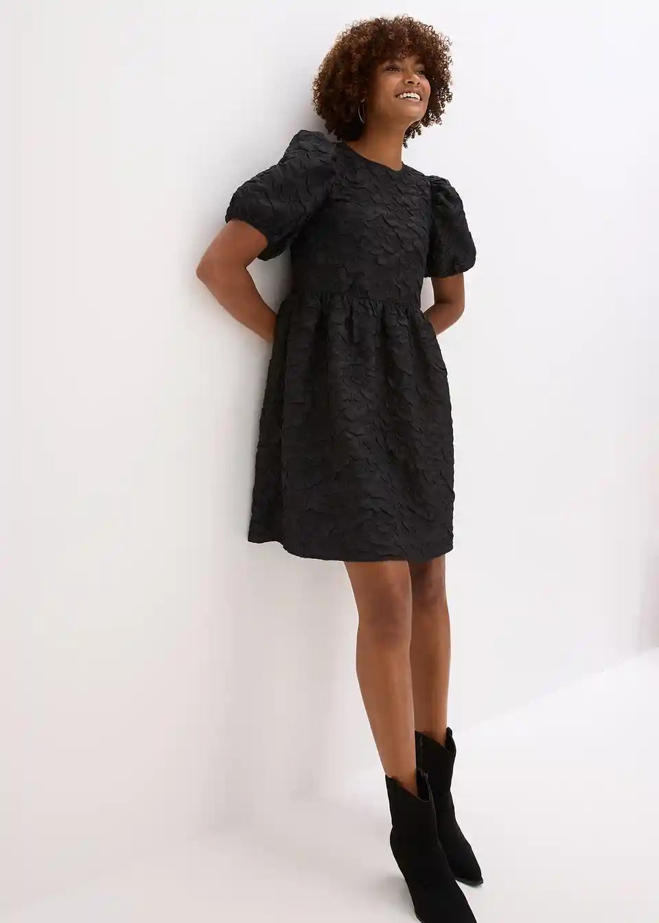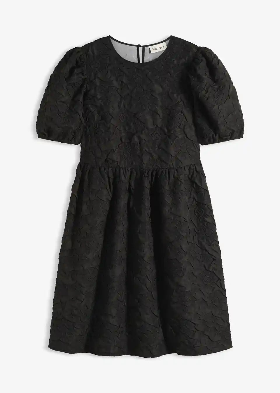 kratka haljina s puff rukavima od modernog Jacquard materijala