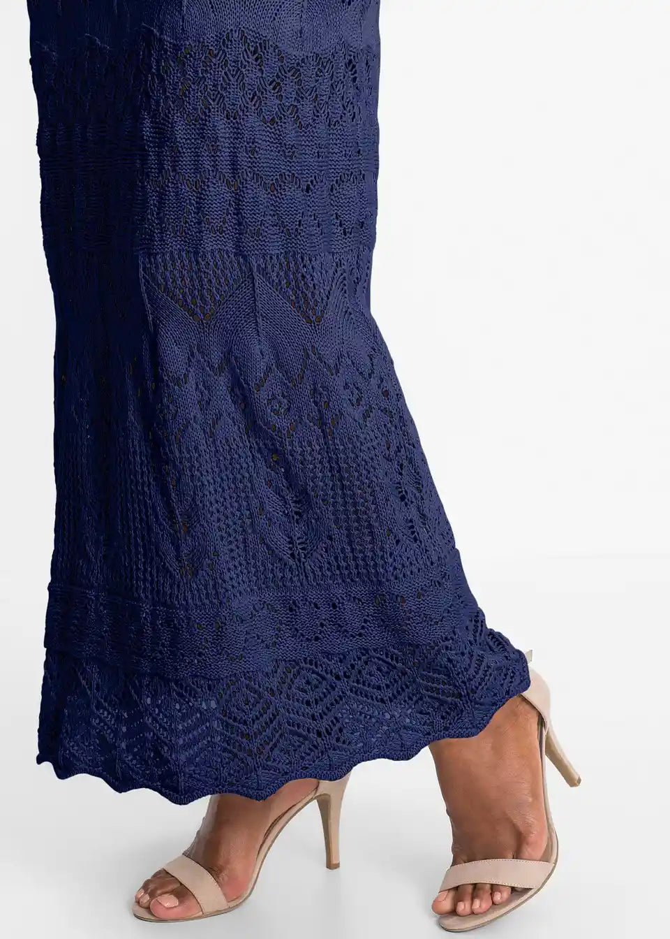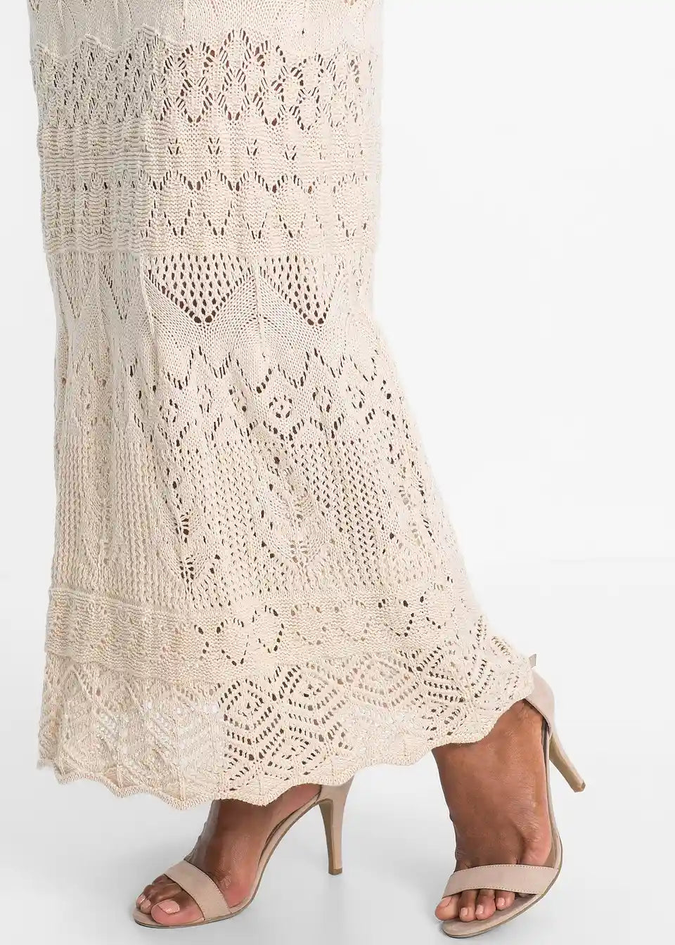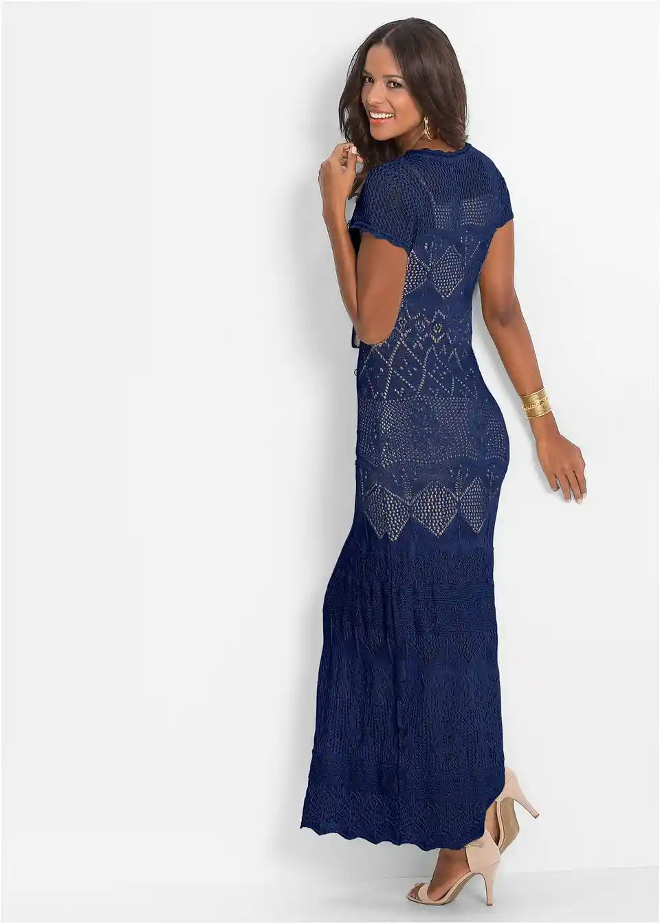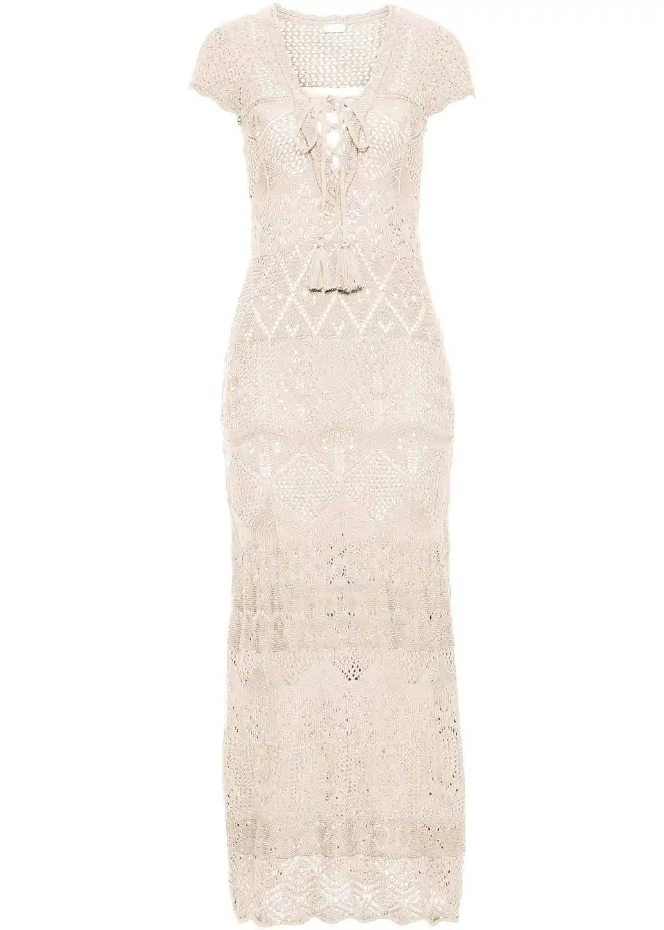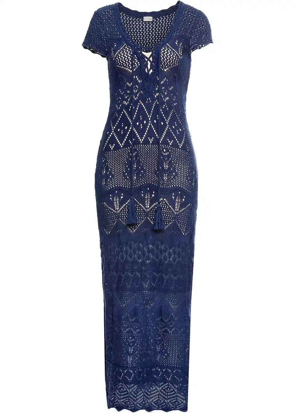 Očaravajuća pletena haljina s ažur uzorkom i vezicama