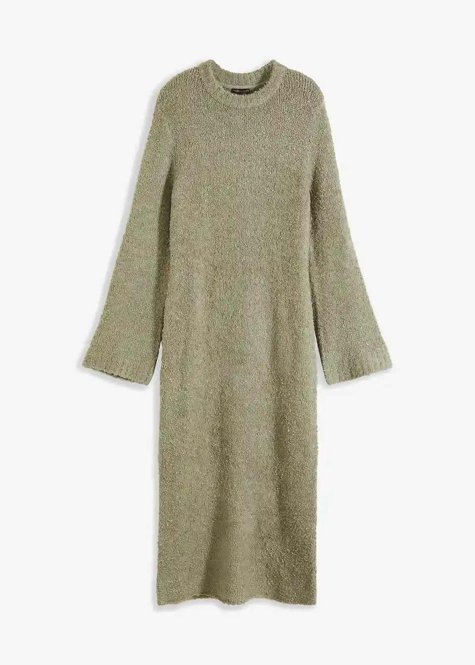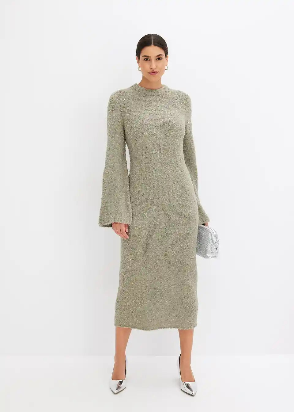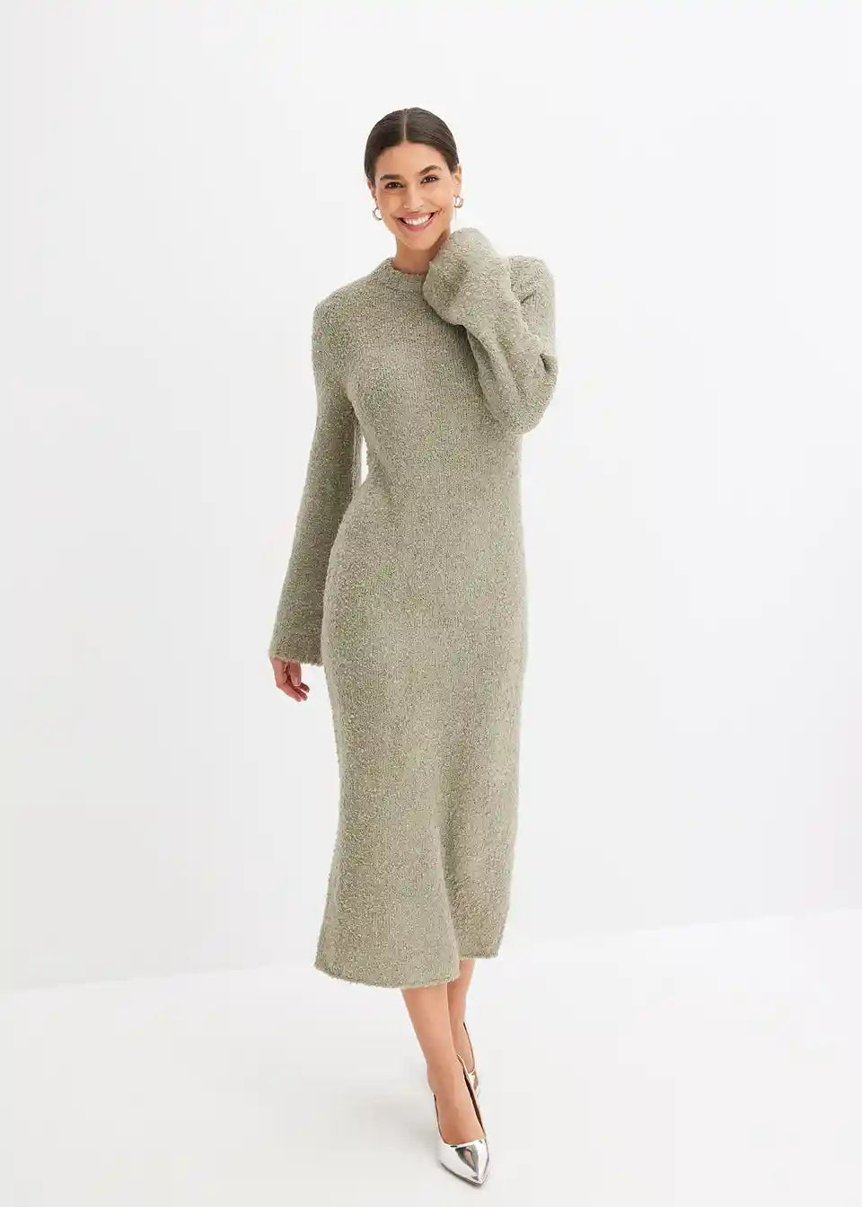 Elegantna Bouclé pletena haljina s okruglim izrezom