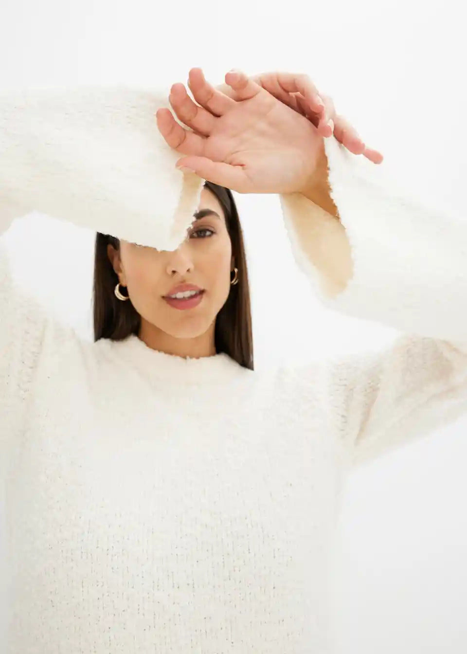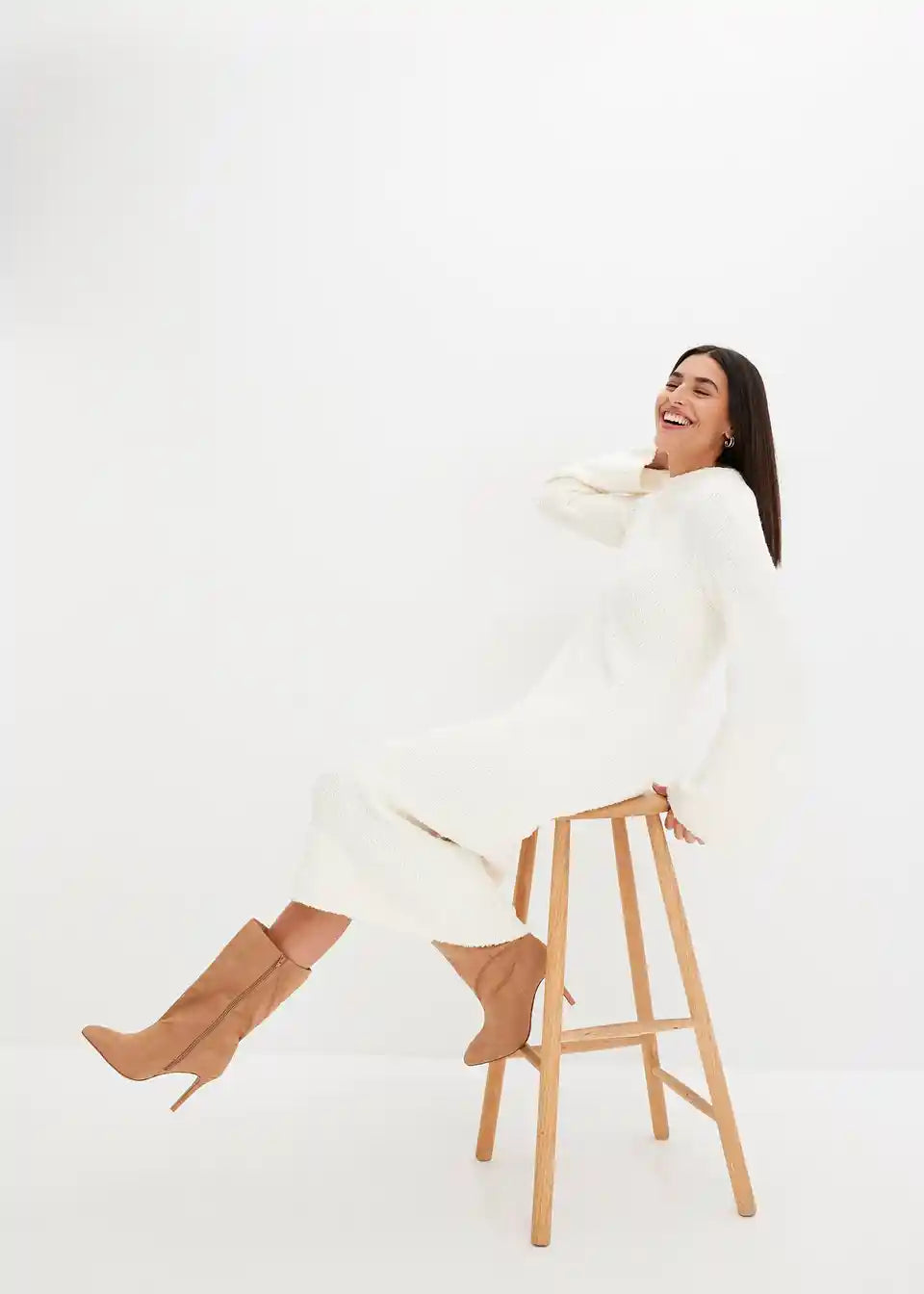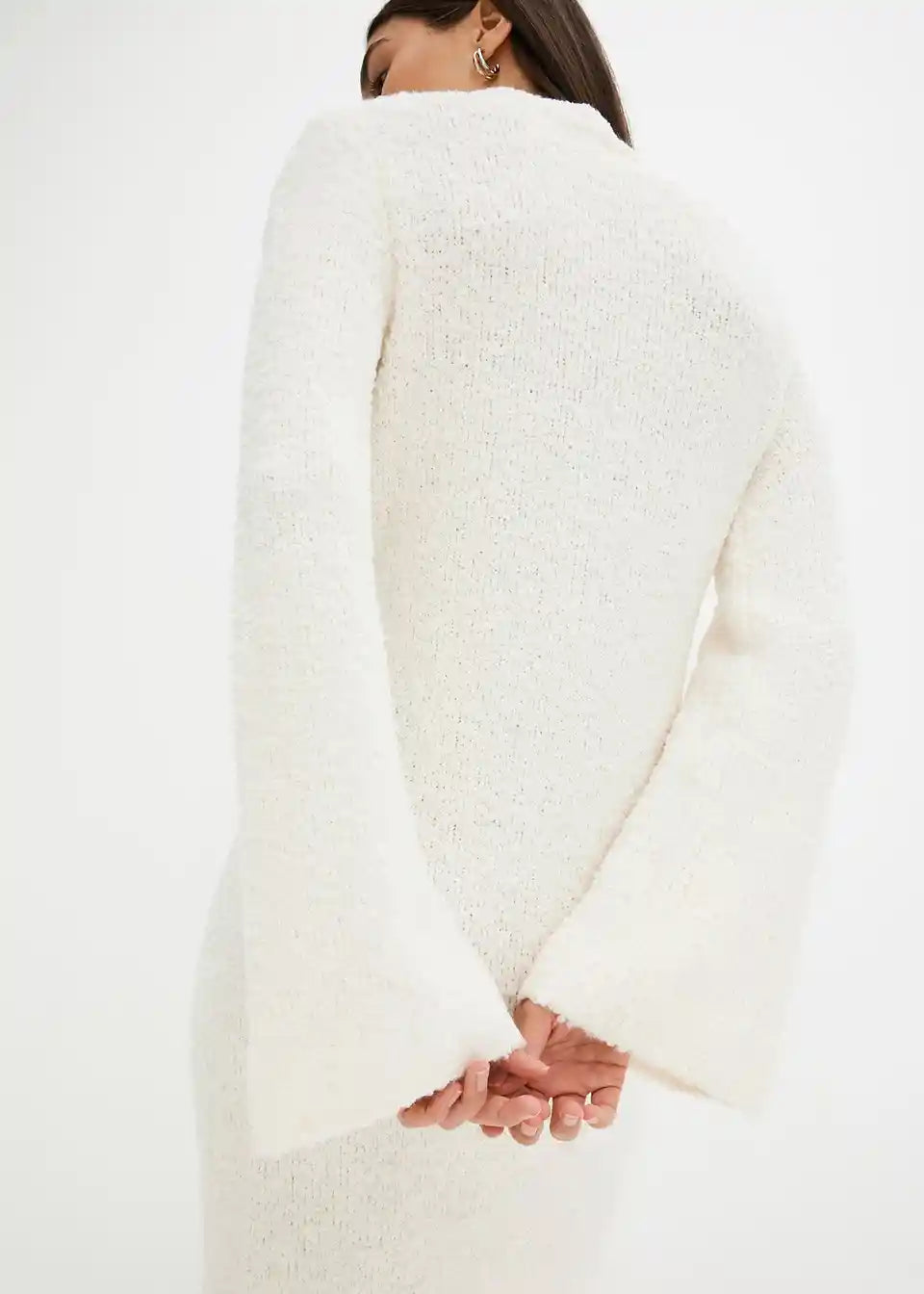 Elegantna Bouclé pletena haljina s okruglim izrezom
