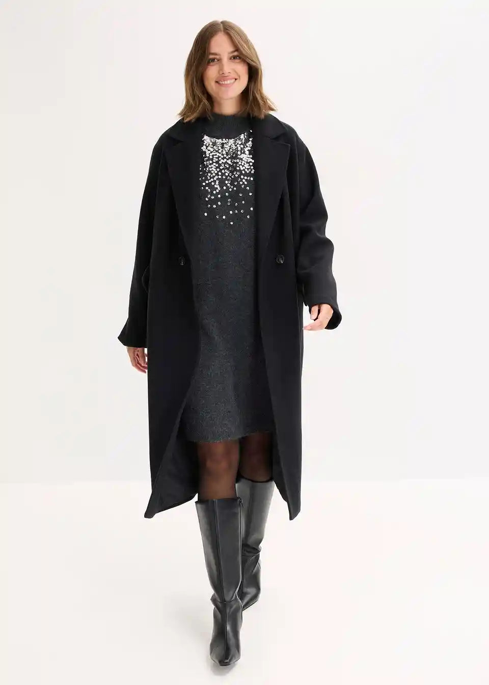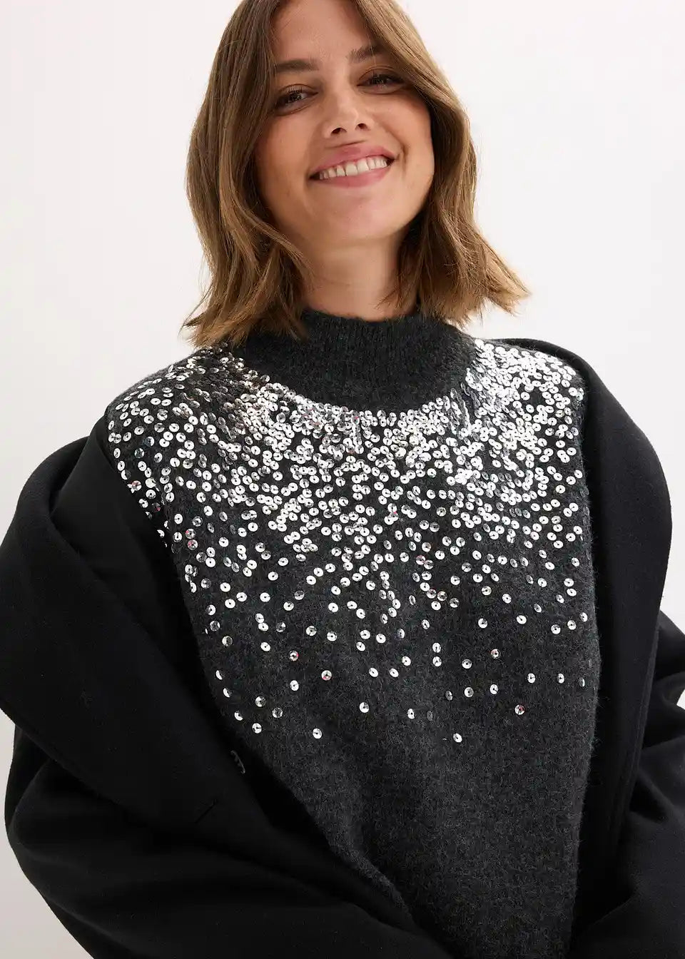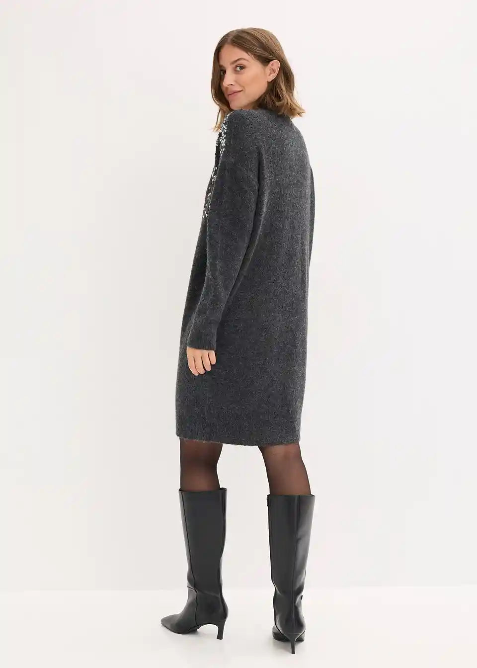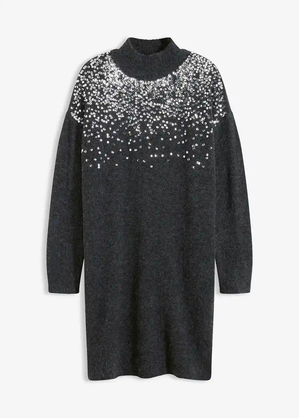 kratka pletena haljina s dekorativnom aplikacijom od šljokica sprijeda