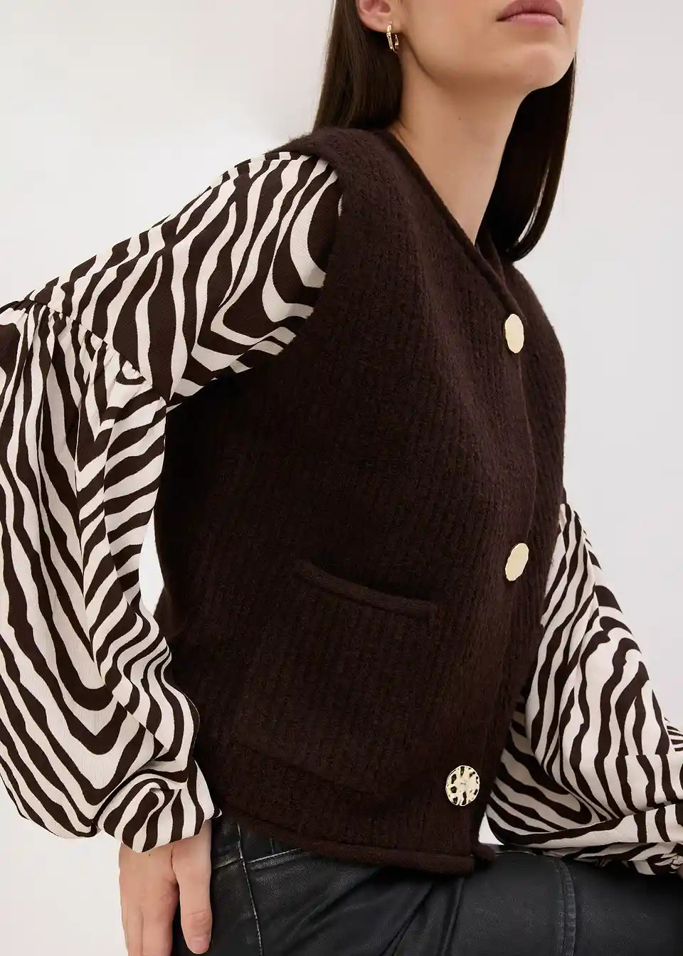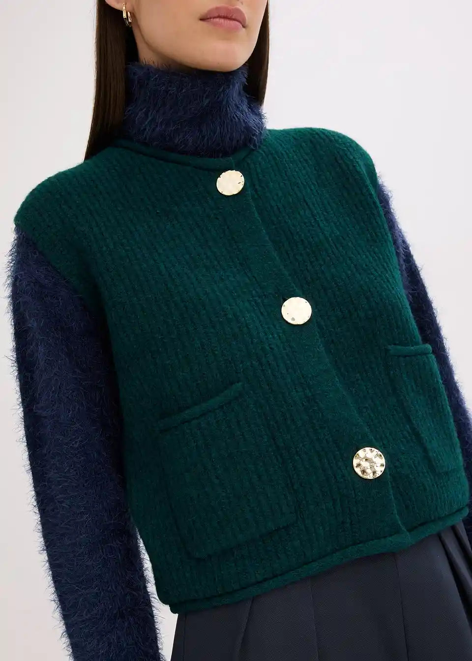 Pleteni prsluk s ukrasnim gumbima
