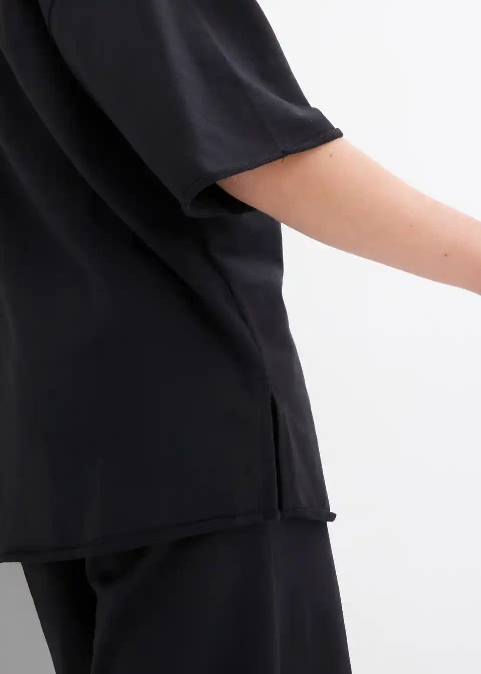 Značajka kroja:komfor zbog raspora sa strane, bez džepova koja bi se pohabala, sakrije puniji trbuh, stražnjicu, šire bokove i nadlakticu