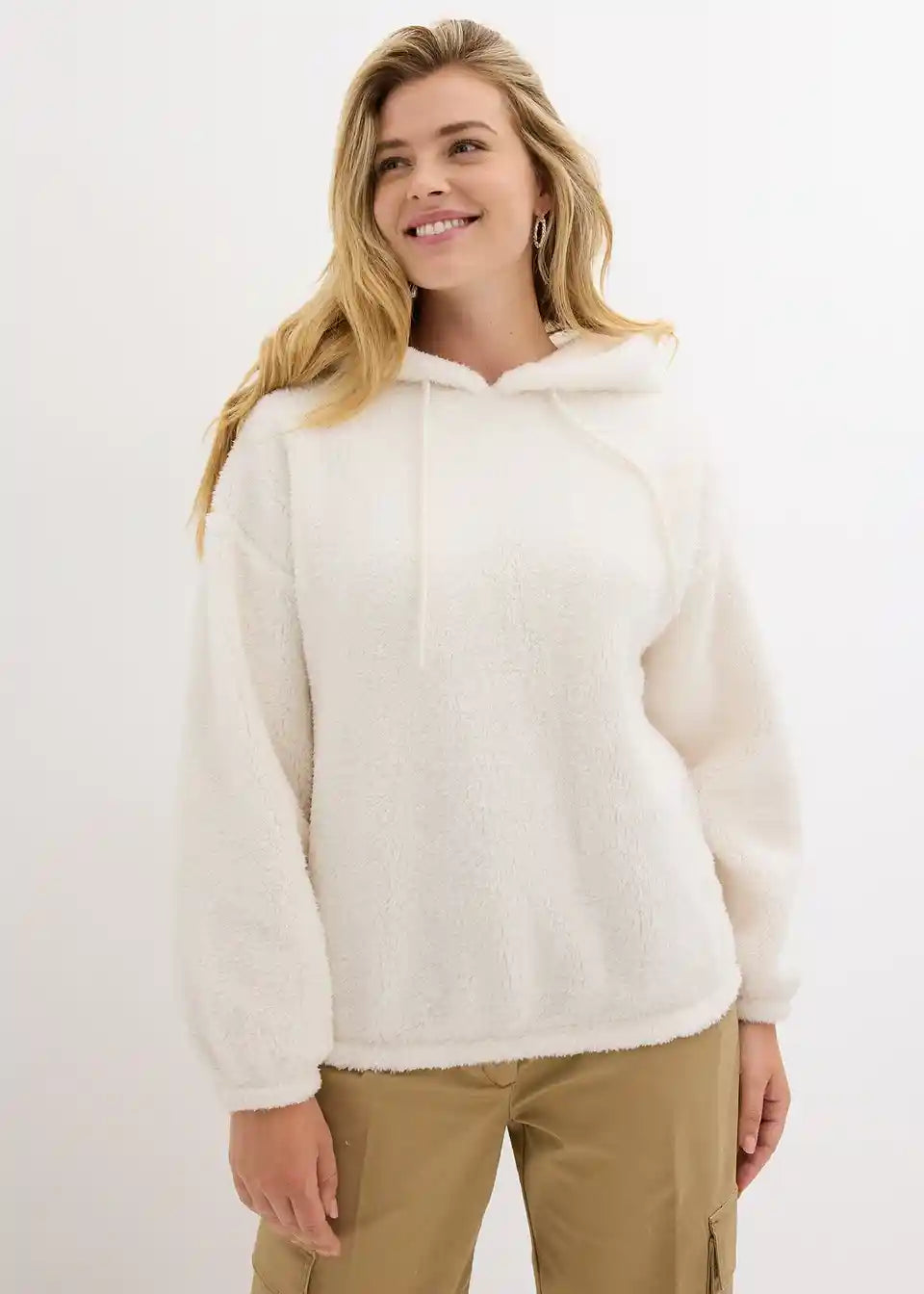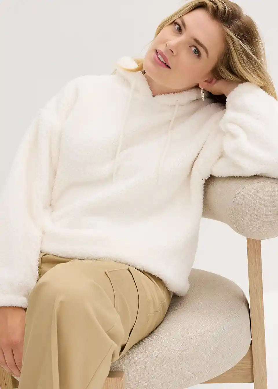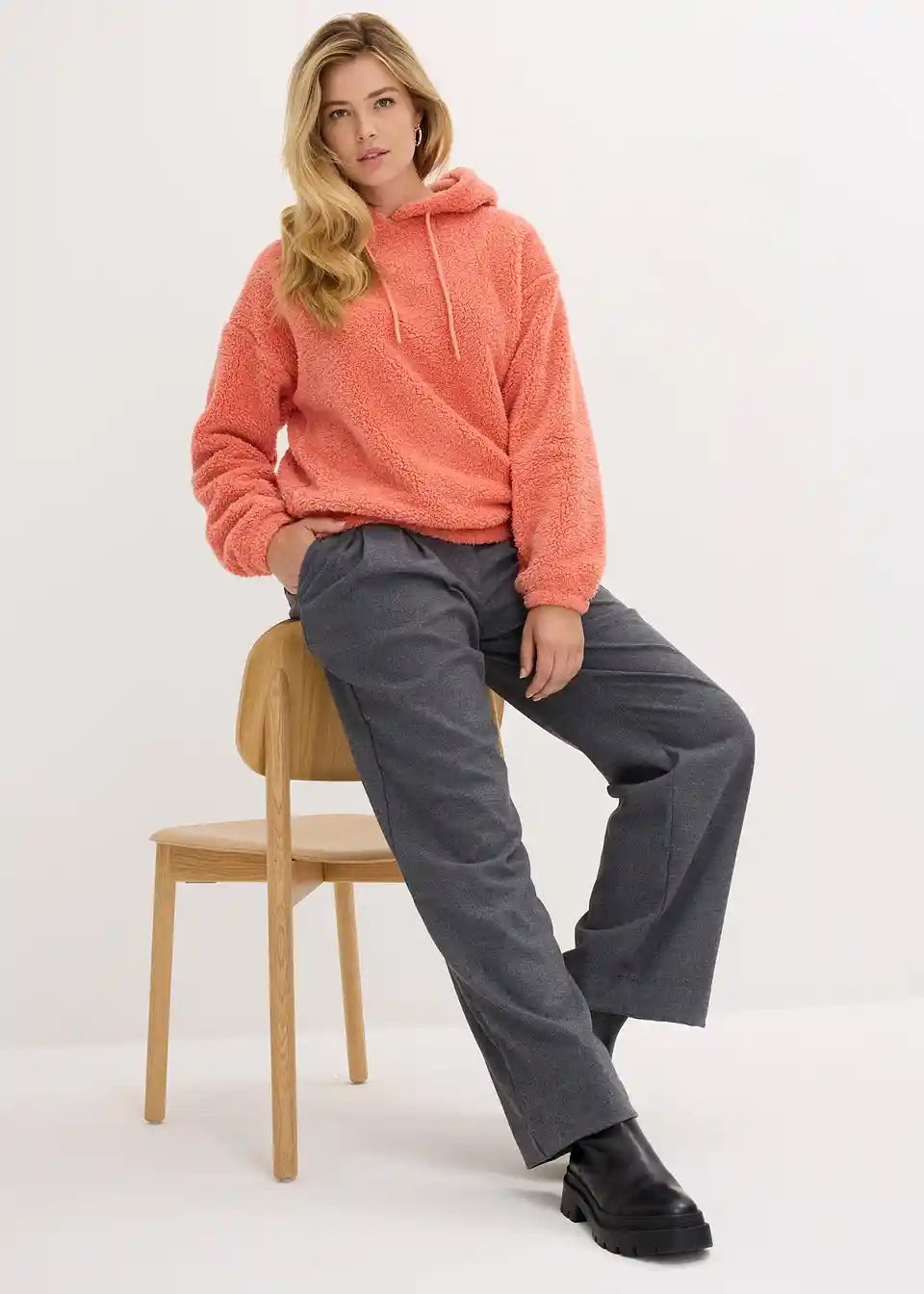 Ležerna fleeceshirt majica s elastičnom trakom i naborima na rubu