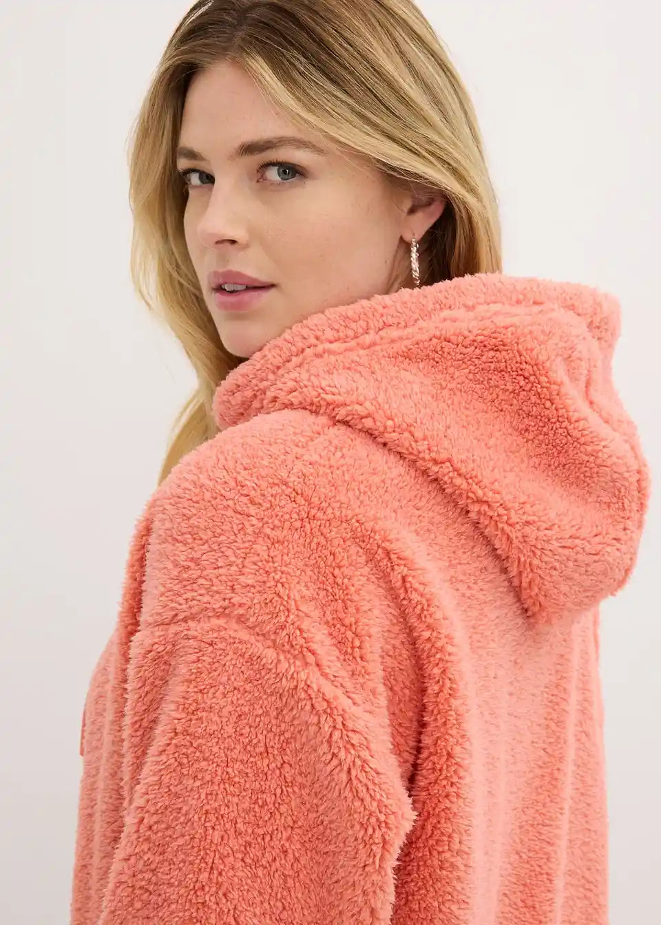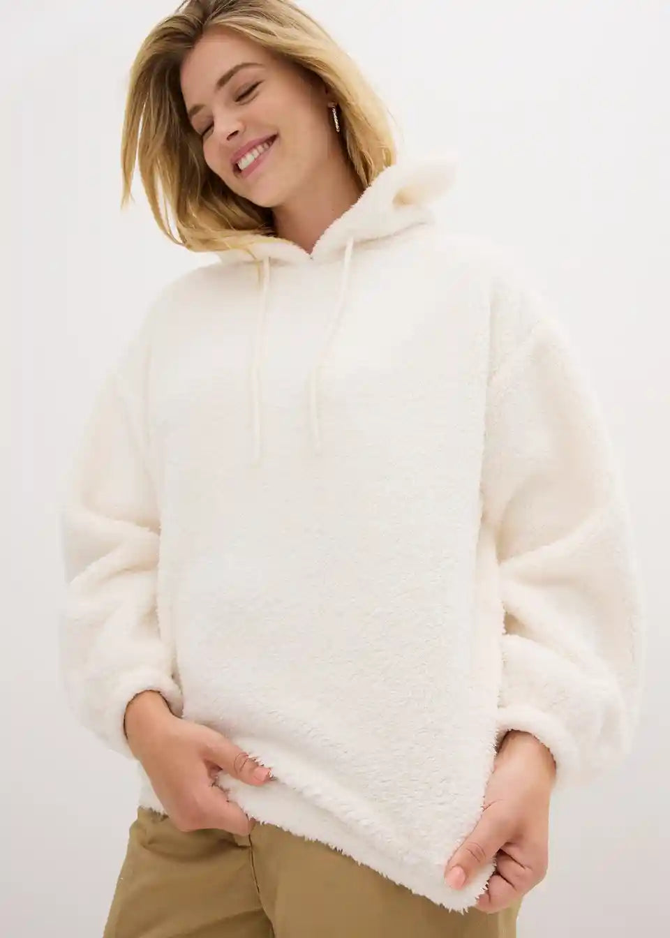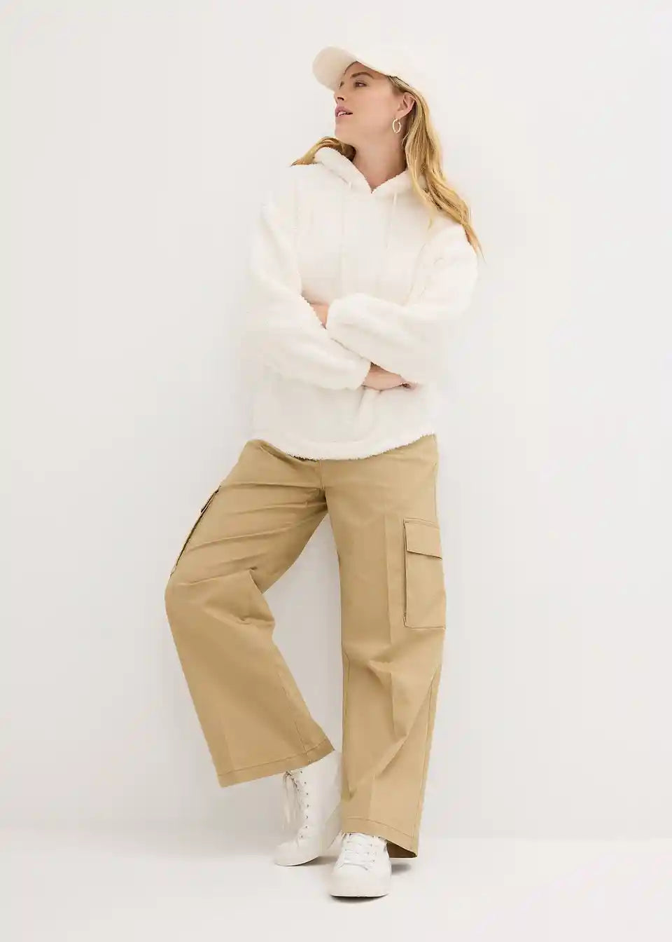 Ležerna fleeceshirt majica s elastičnom trakom i naborima na rubu