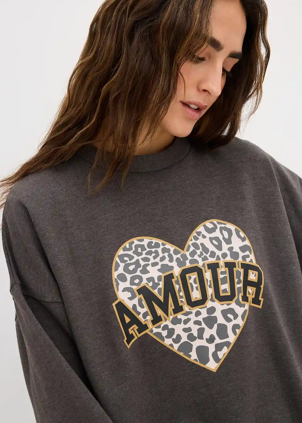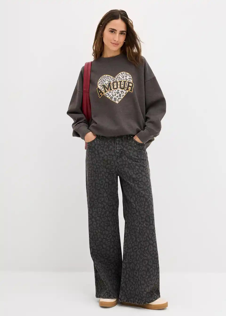 Ležerni oversize sweatshirt od pamučne mješavine s printom