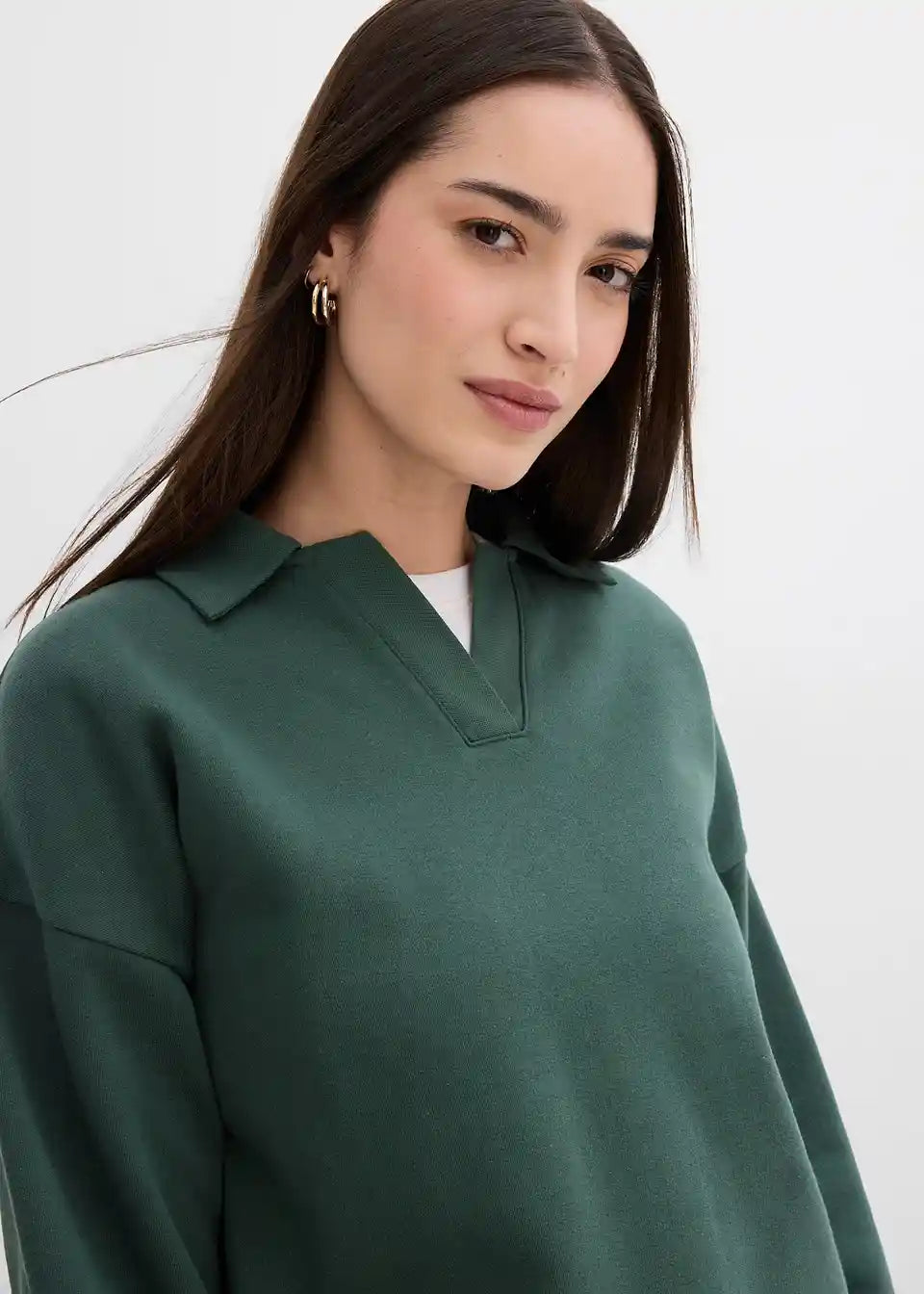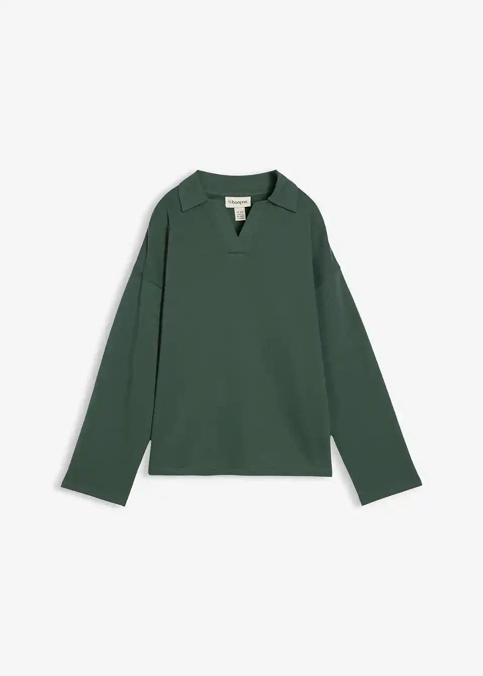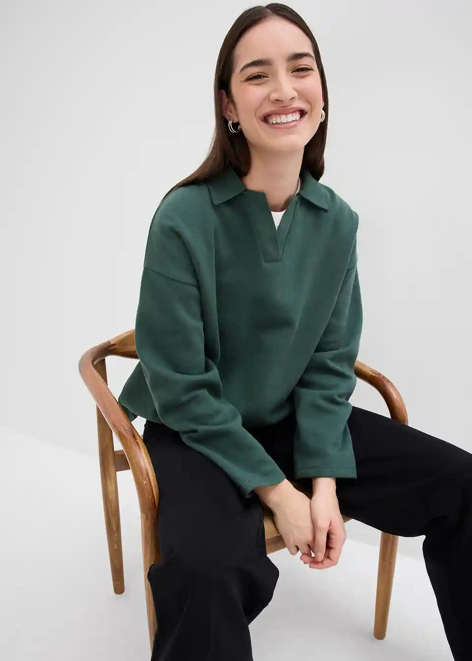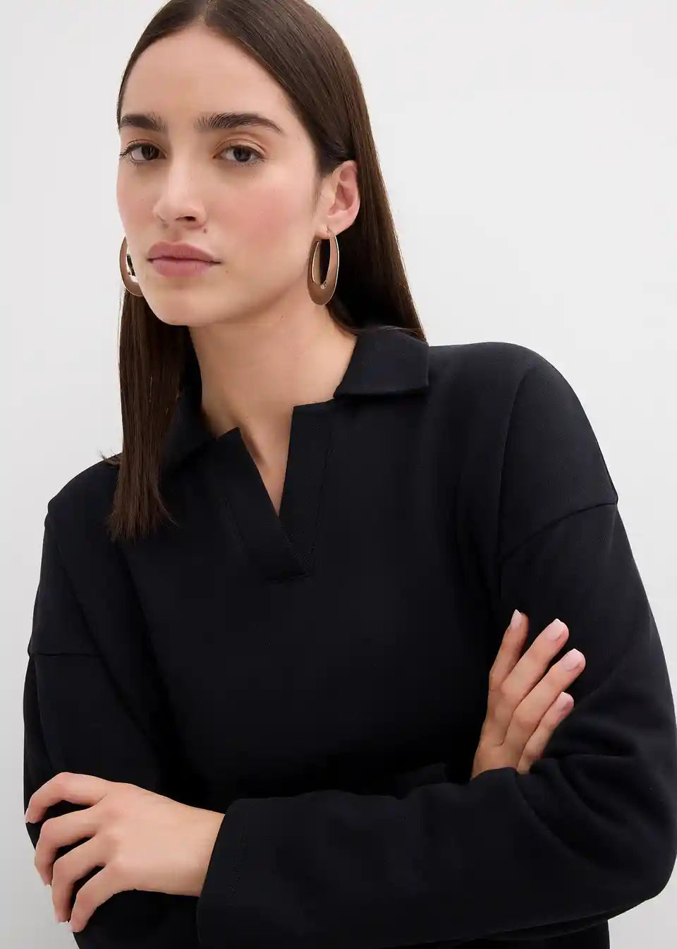 Sweatshirt s pletenim polo ovratnikom i V-izrezom s dugim rukavima od organskog pamuka