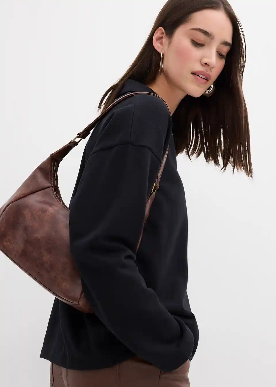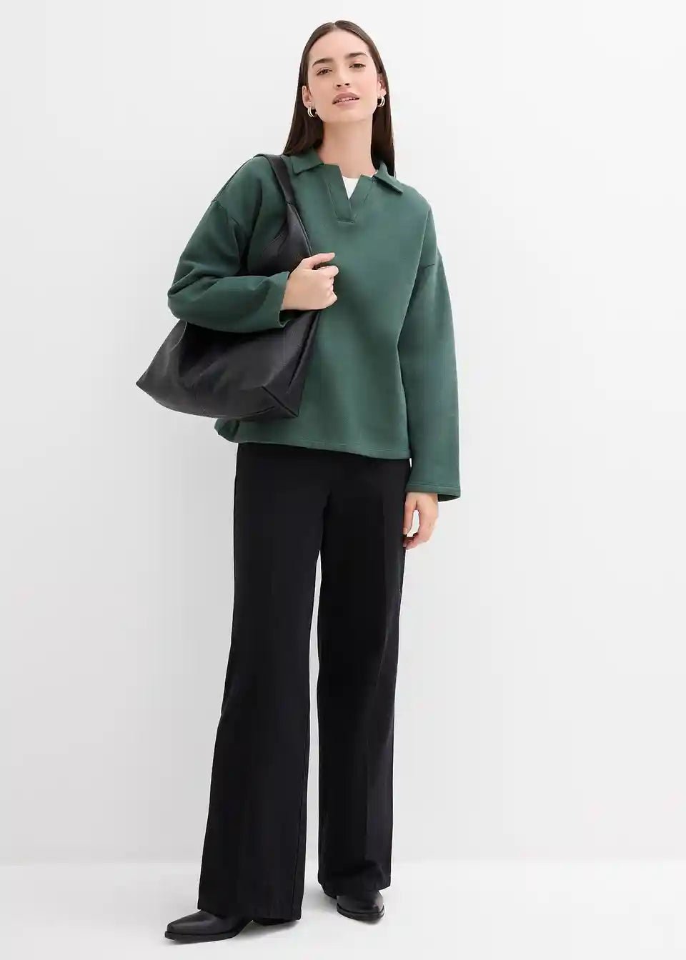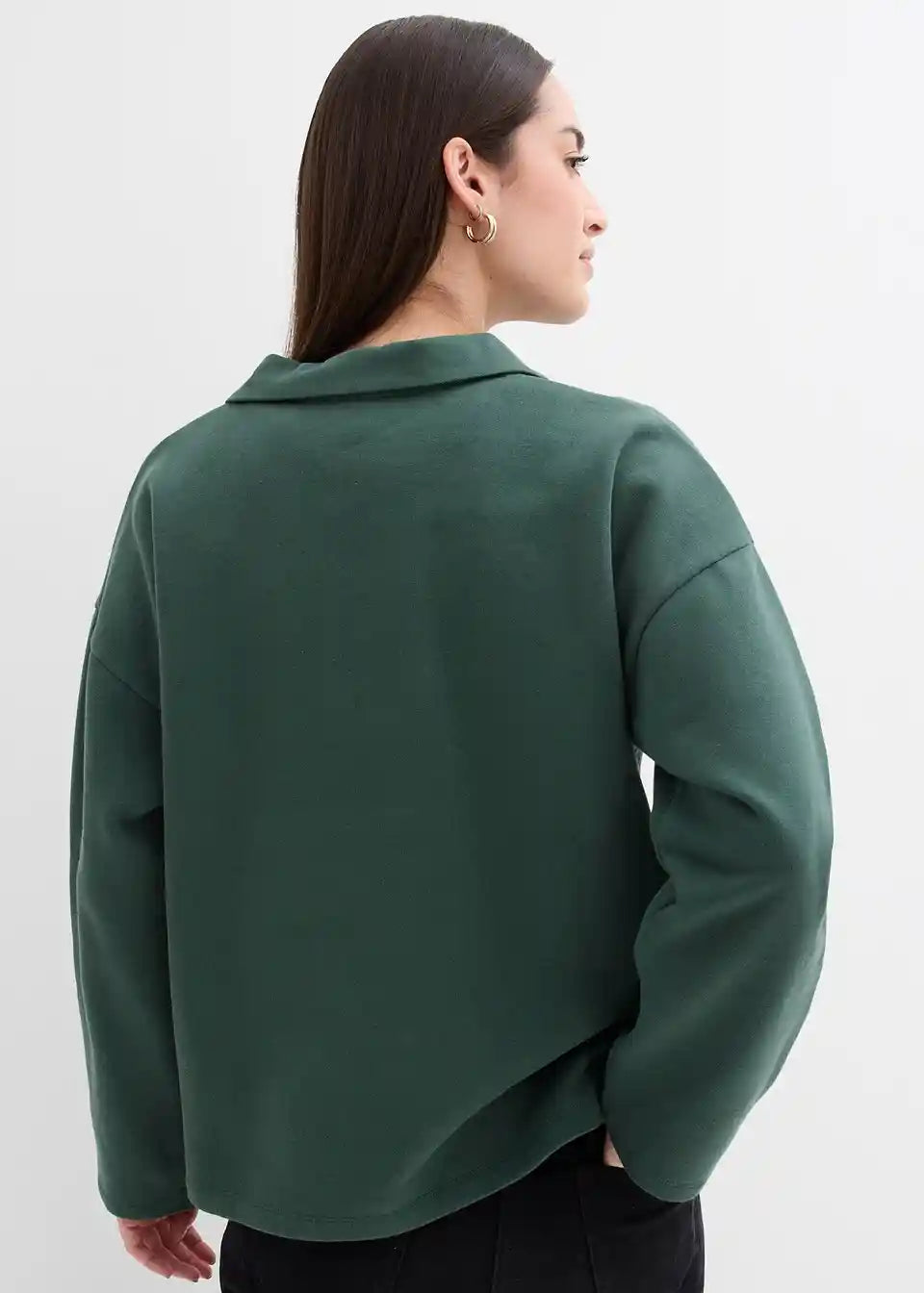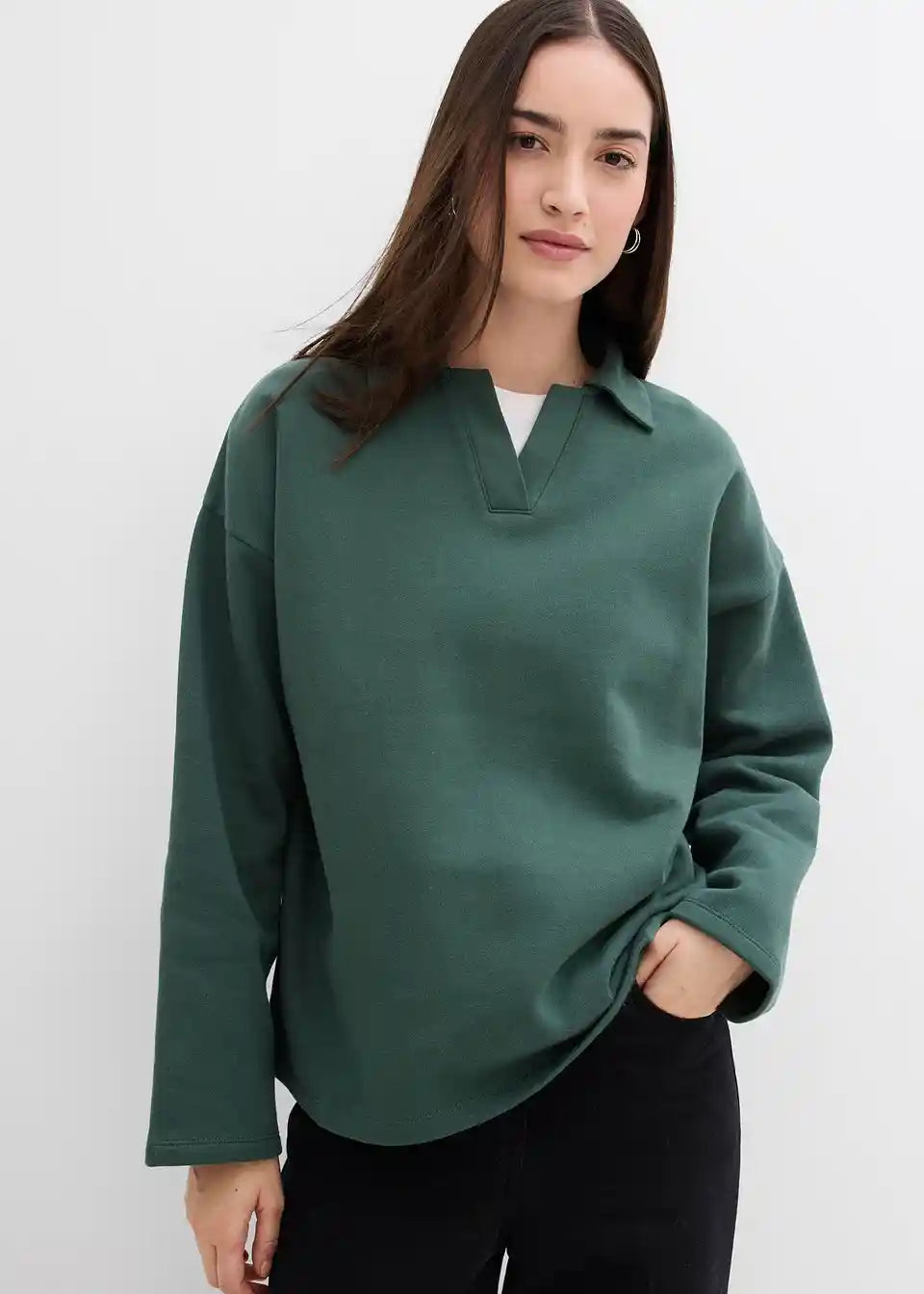 Sweatshirt s pletenim polo ovratnikom i V-izrezom s dugim rukavima od organskog pamuka