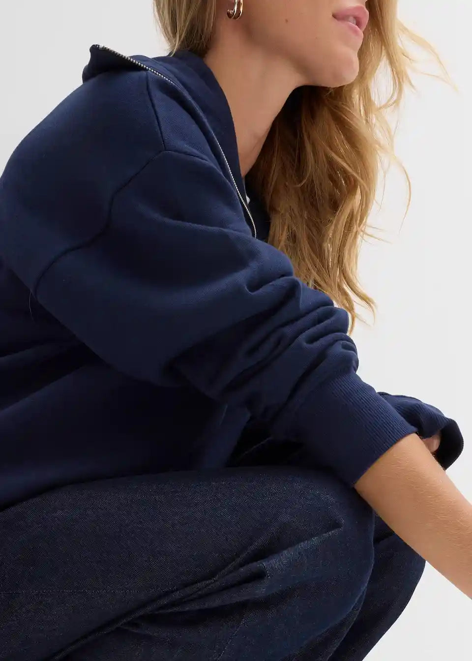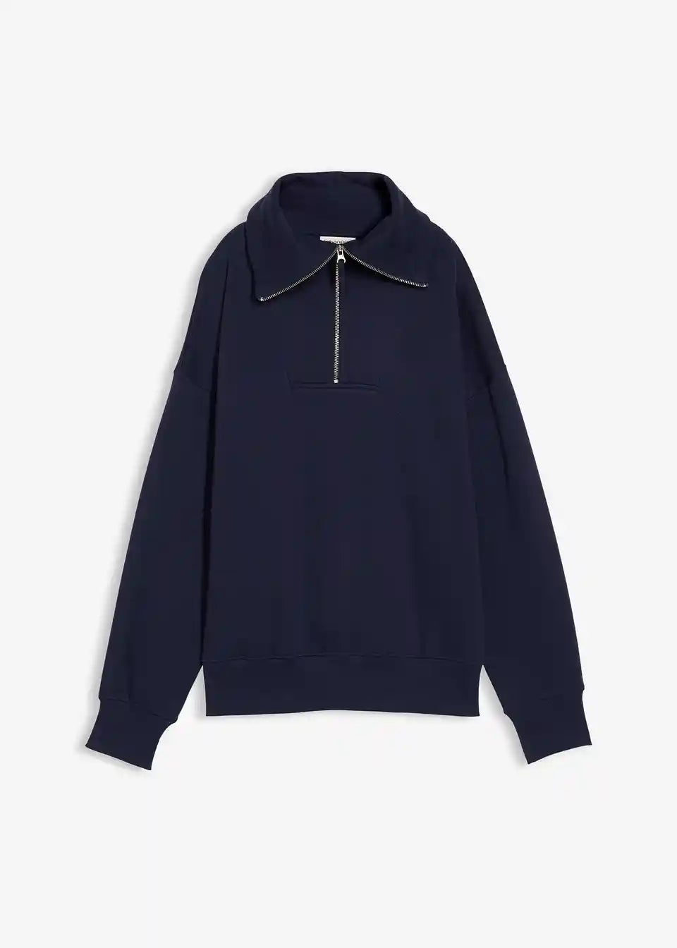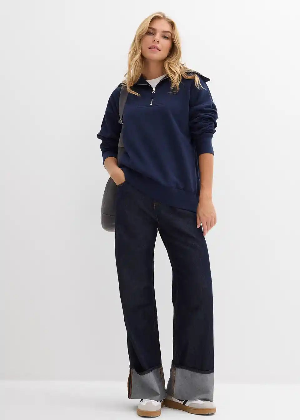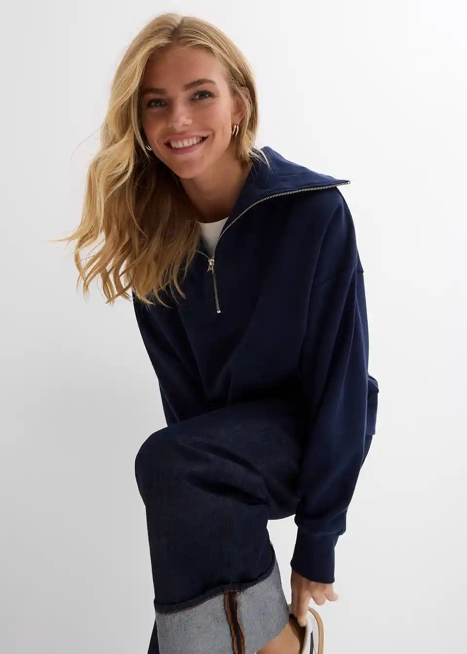 Pulover s visokim ovratnikom s patentnim zatvaračem od mekanog materijala s udjelom pamuka