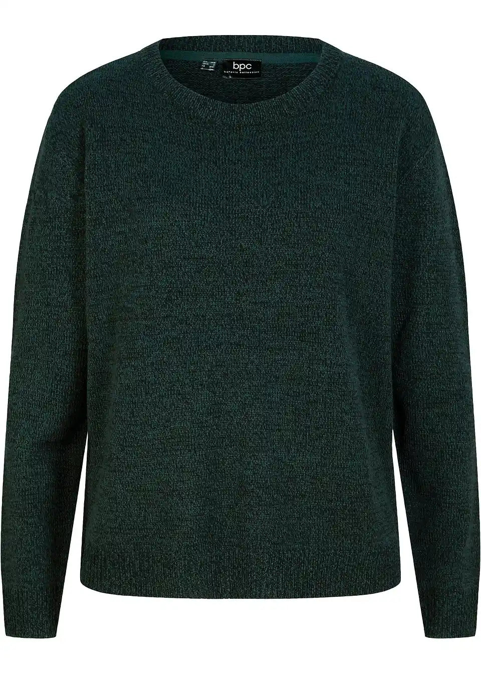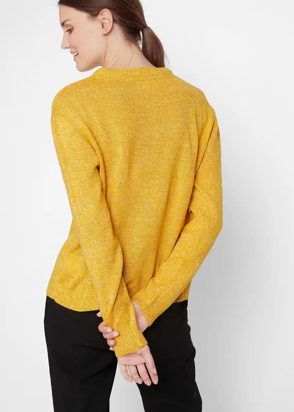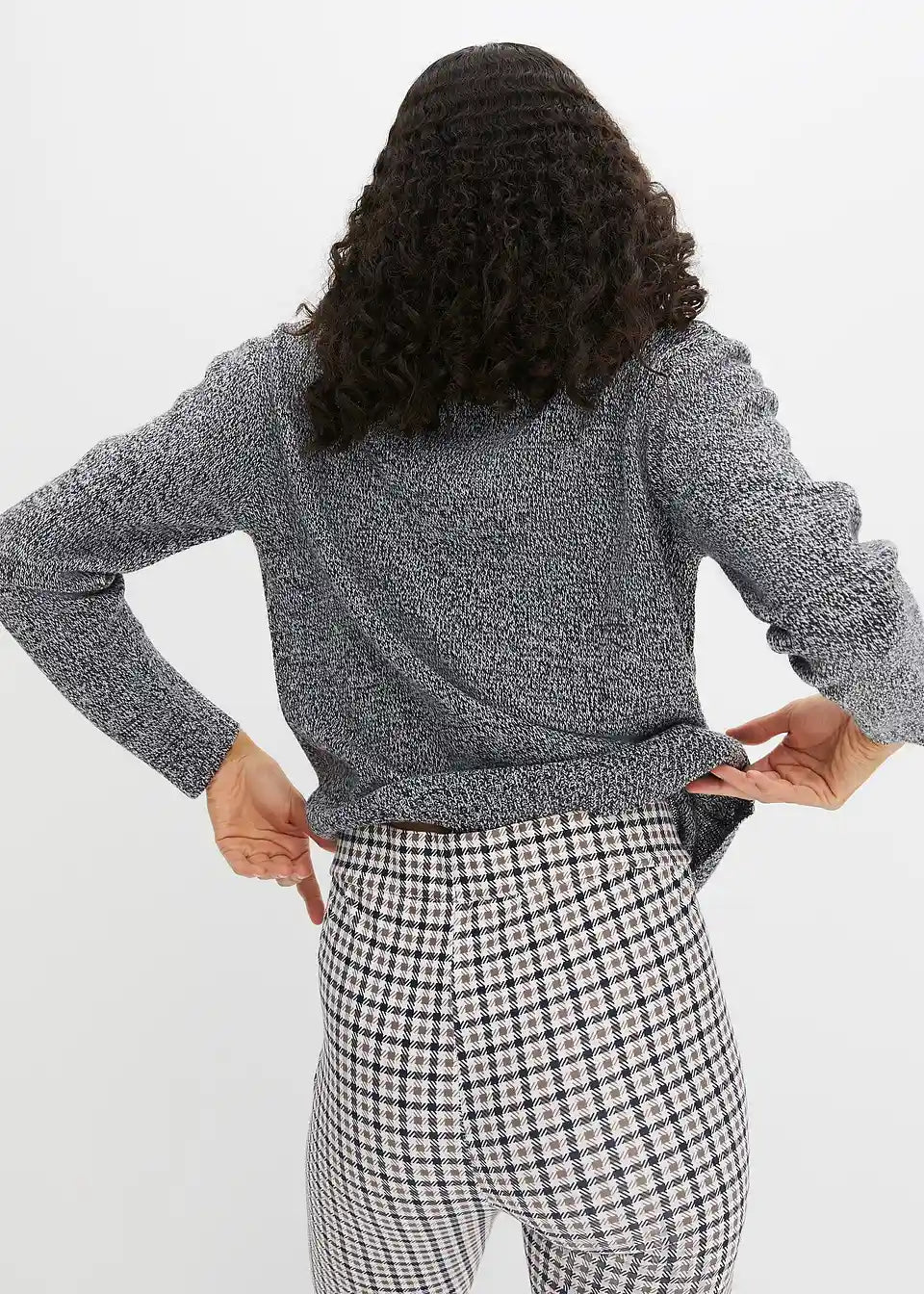 Pleteni pulover s okruglim izrezom od melanž materijala