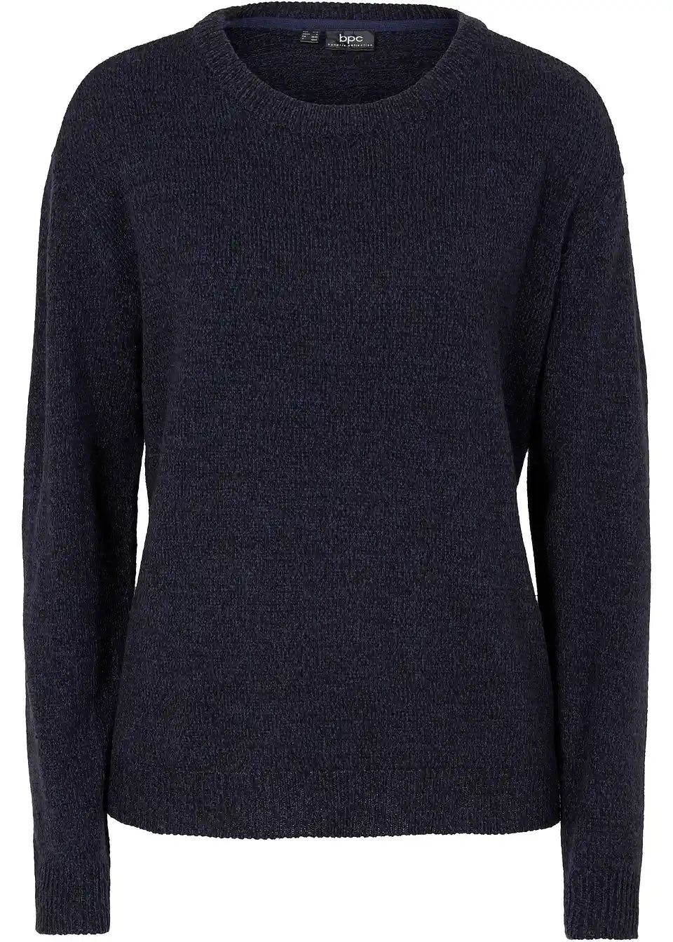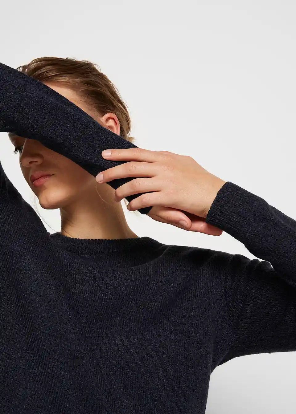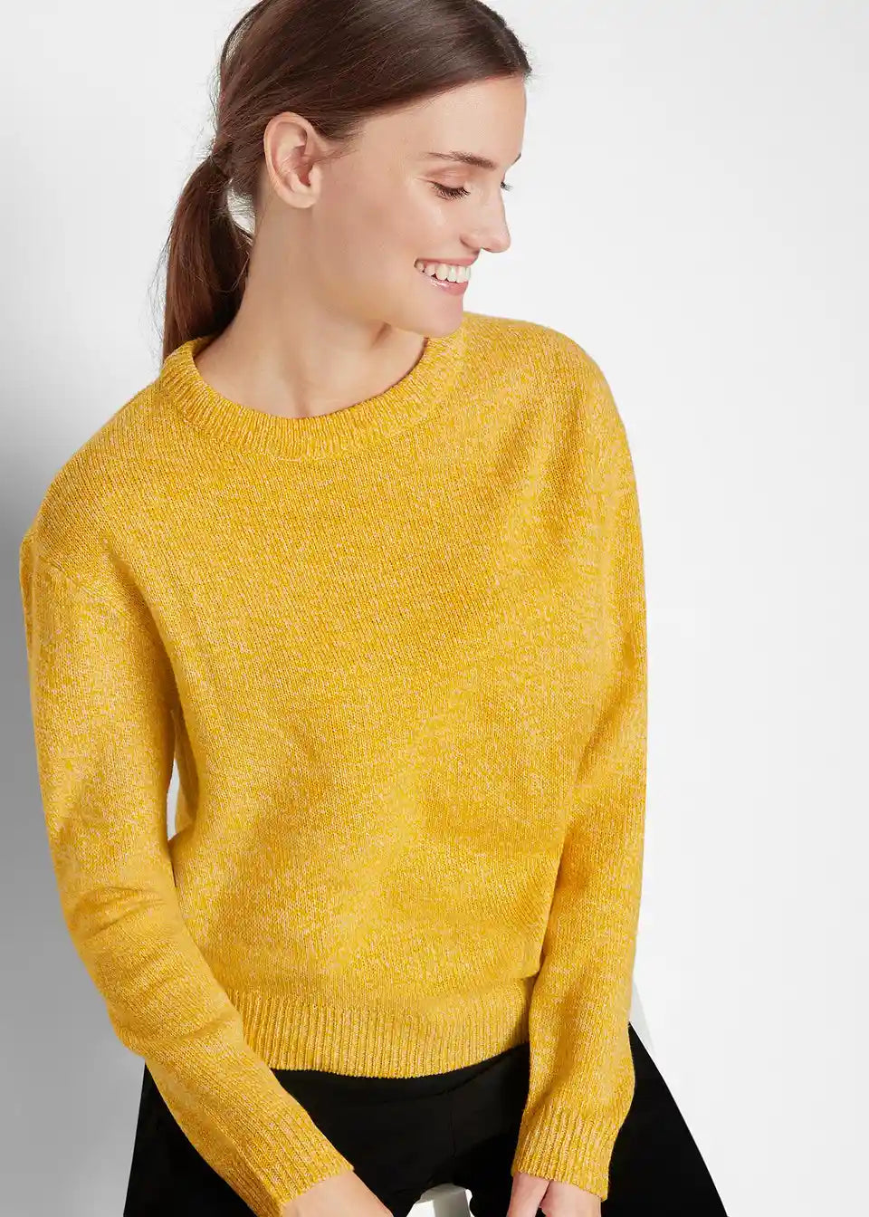 Pleteni pulover s okruglim izrezom od melanž materijala