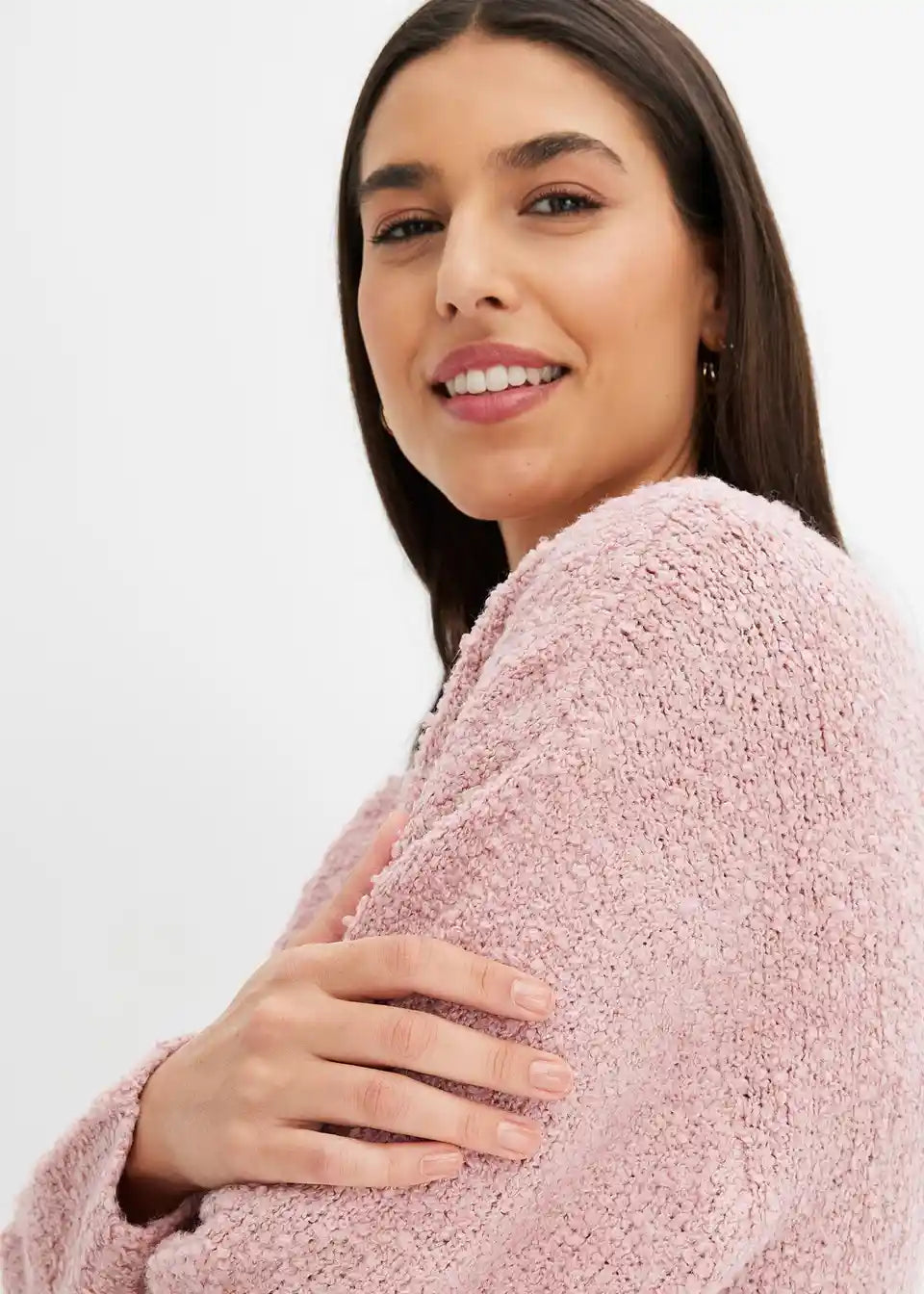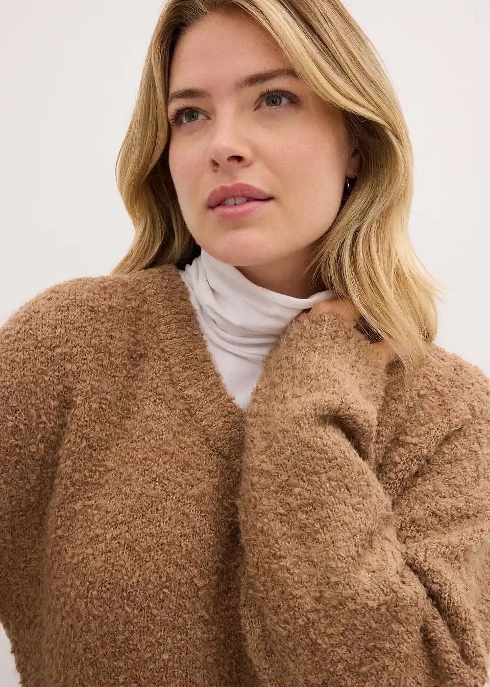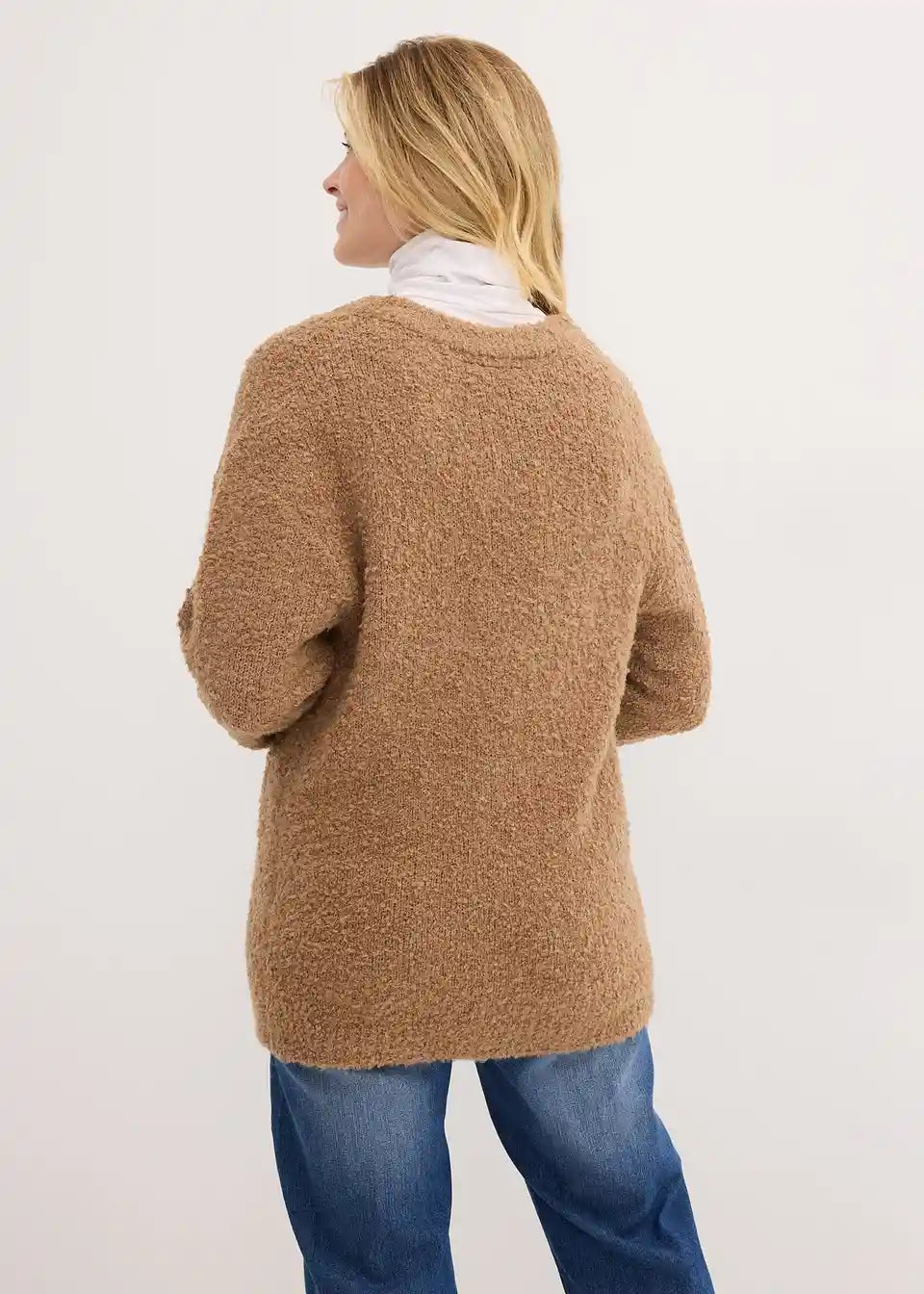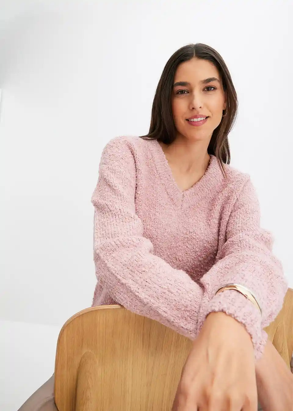 Moderan bouclé pulover širokog kroja s V-izrezom
