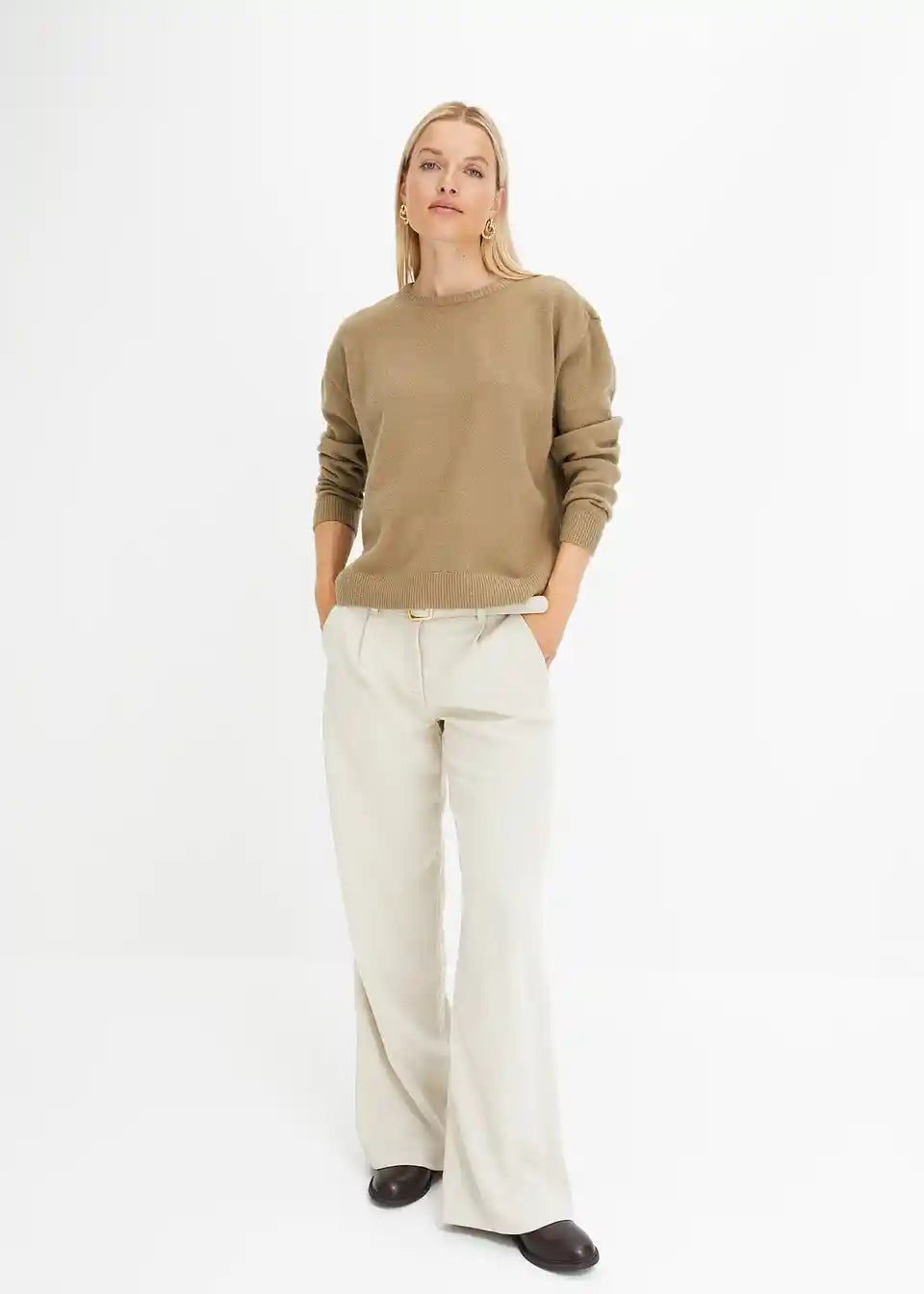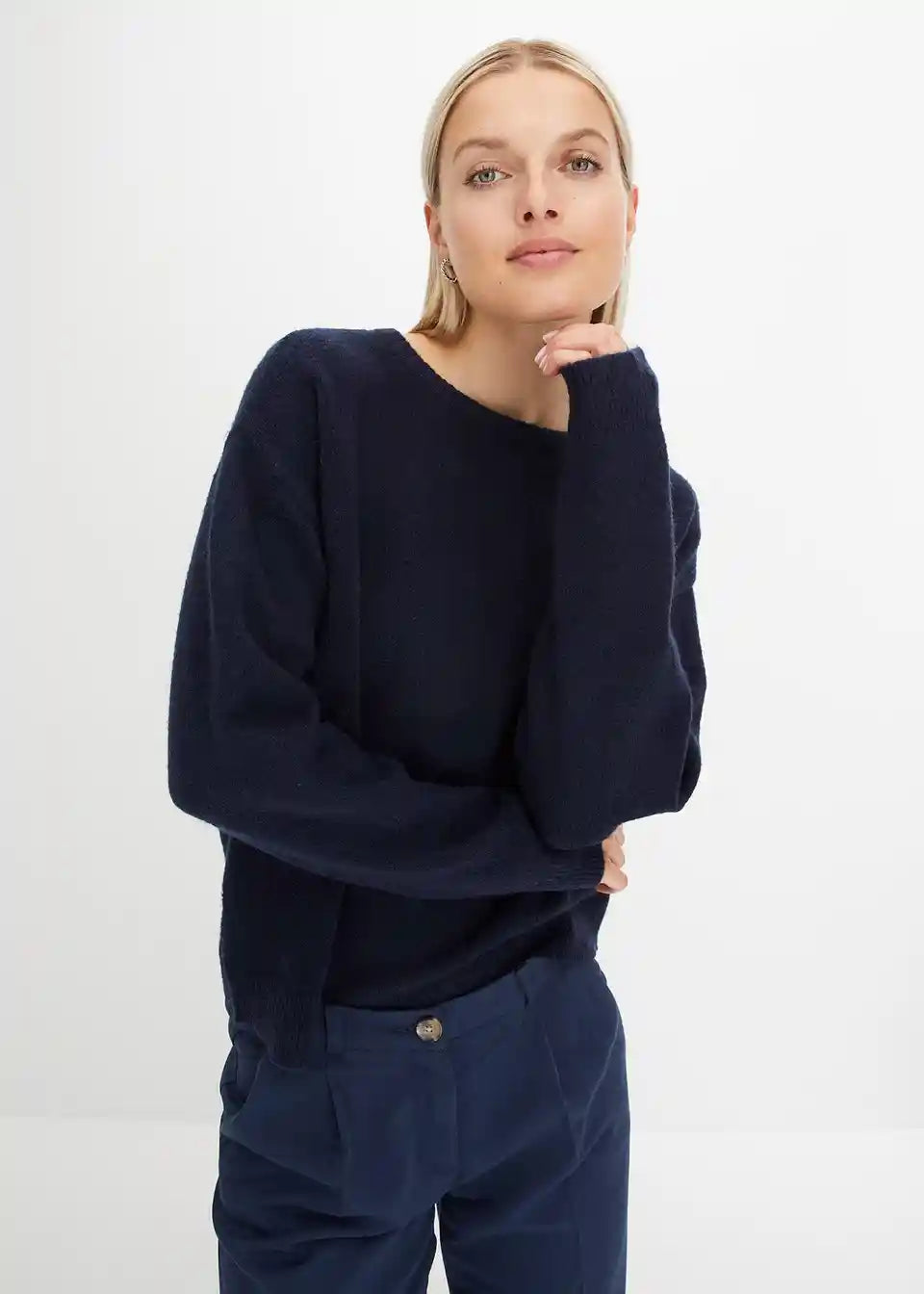 Pleteni pulover s okruglim izrezom i produženim ramenima