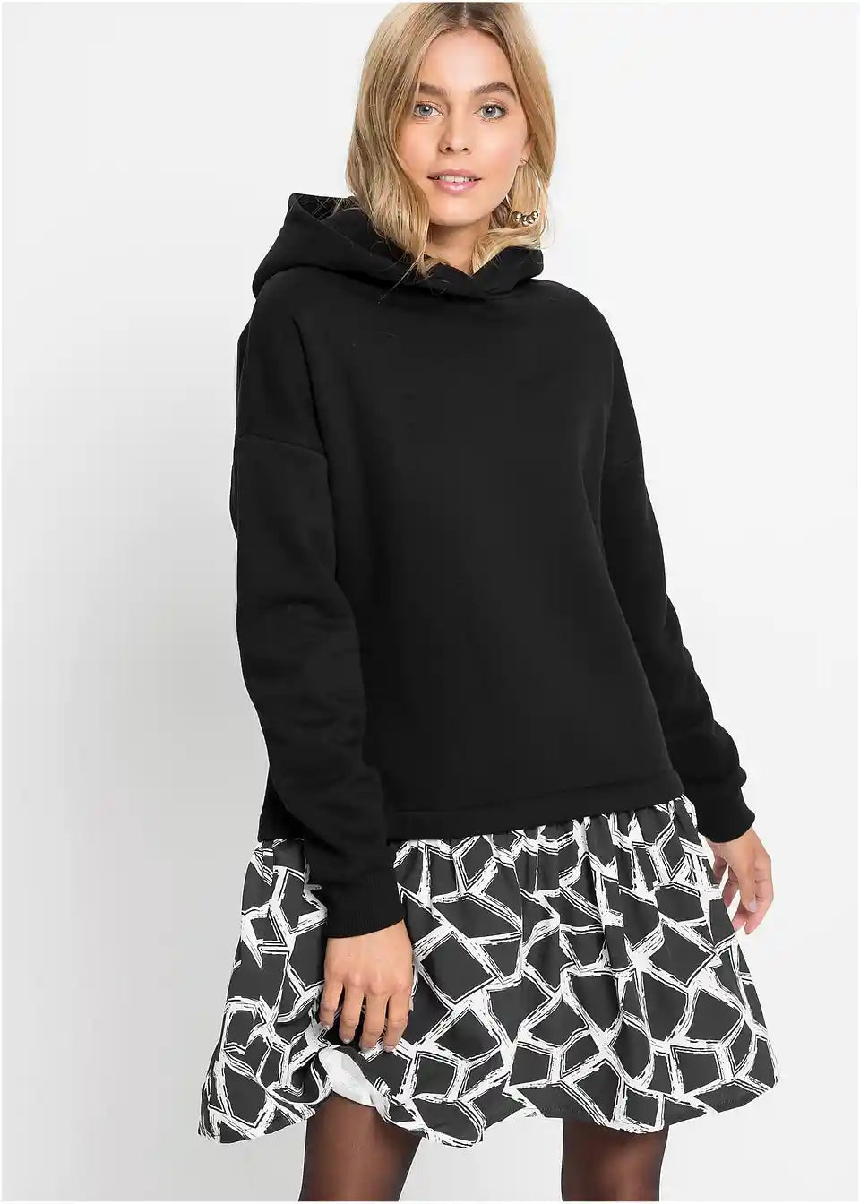 Ležerna haljina od sweat materijala u 2-u-1 izgledu s kapuljačom