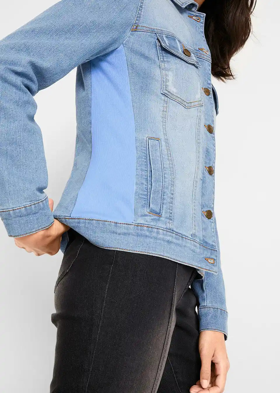 Raznolika traper jakna s bočnim rebrastim umetkom
