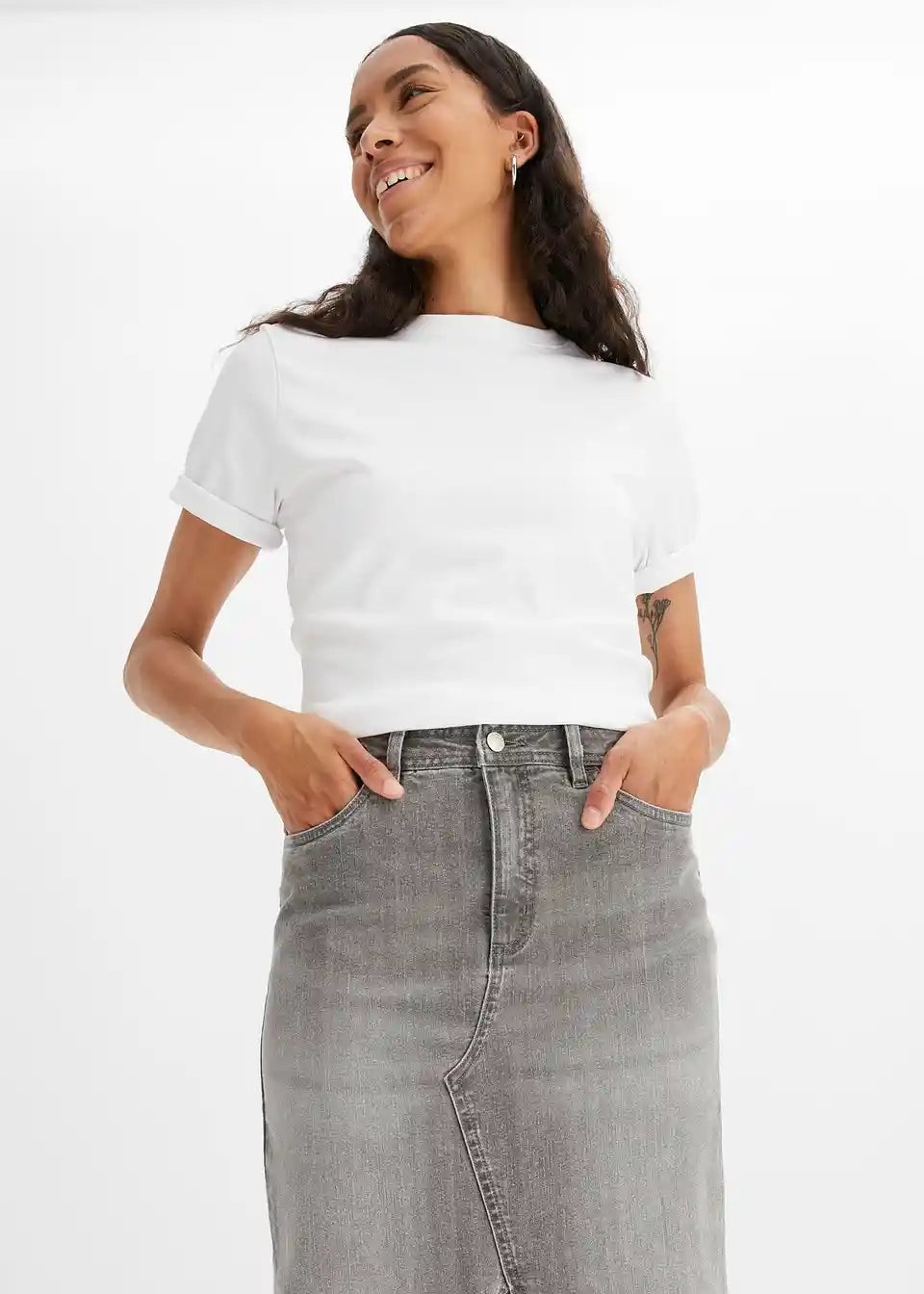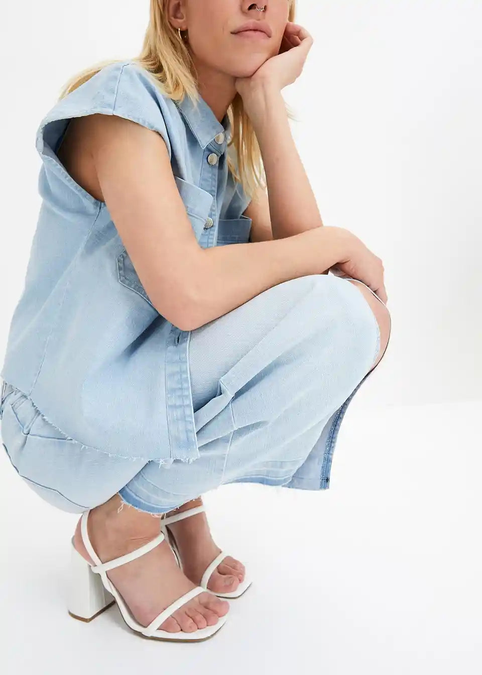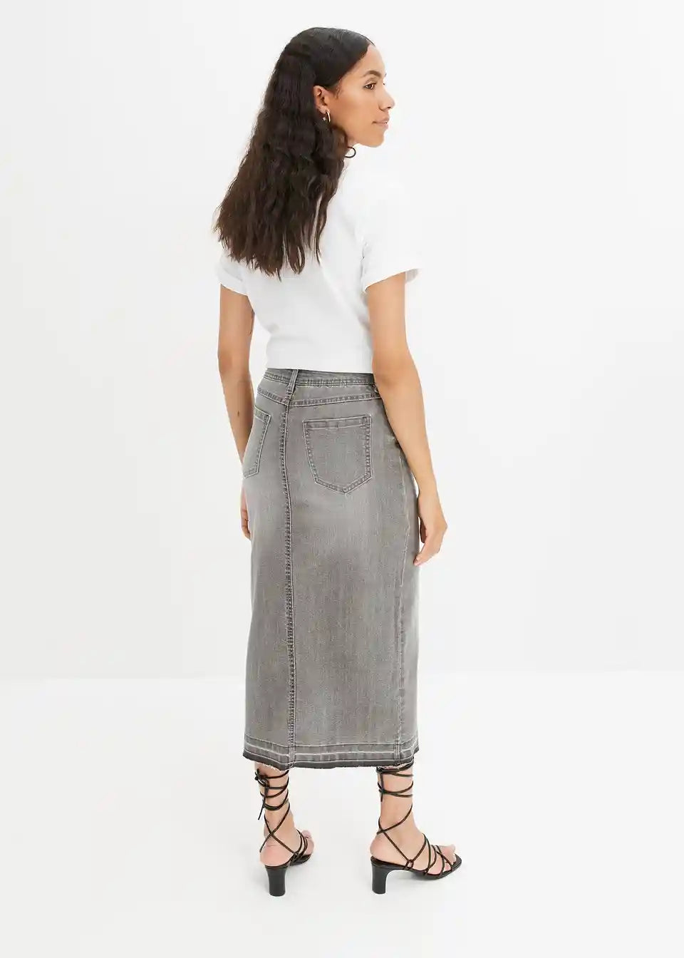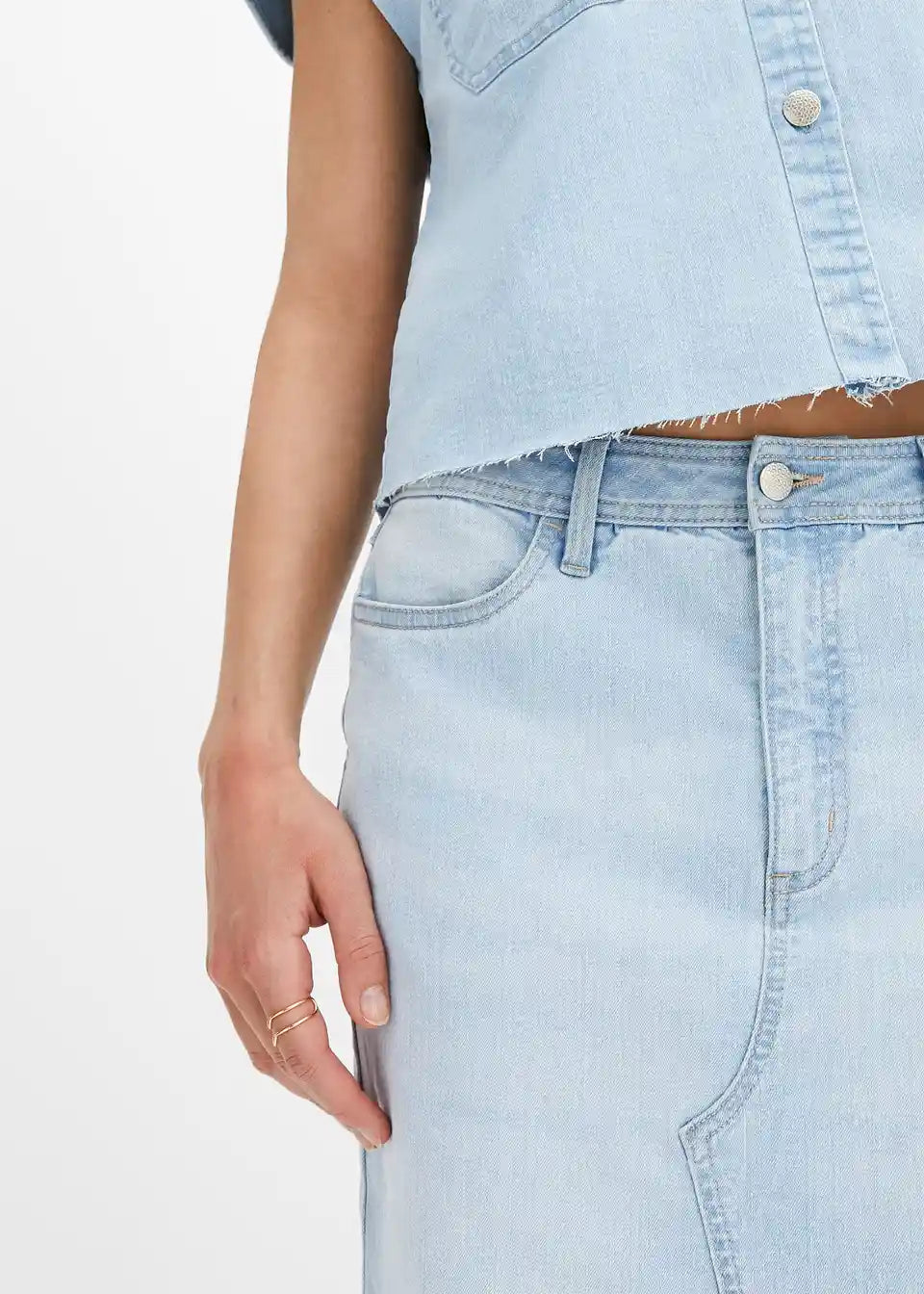Ljetna traper suknja s prorezom i otvorenim rubom