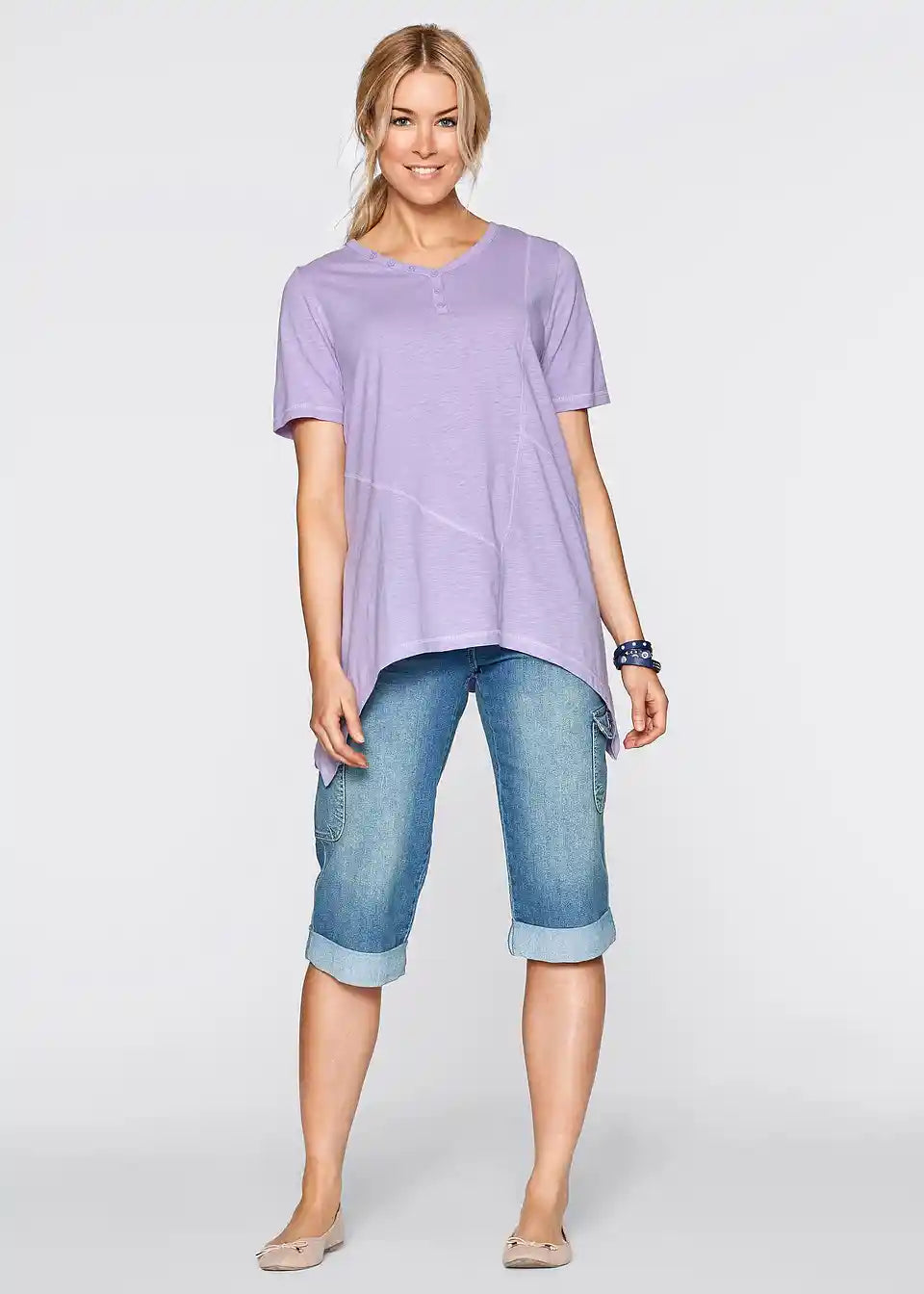 Privlačne Cargo-Stretch-traperice u Capri duljini odlikuju se izvrsnom funkcijom udobnosti. Bočni umetnuti elastični pojas čini pojas fleksibilnim i osigurava ugodan osjećaj nošenja. Viši struk i ravna, opuštena nogavica dodatno doprinose udobnom kroju. Dva našivena stražnja džepa i dva velika prednja Cargo džepa daju Stretch-trapericama marke bpc njihov ležeran izgled. Rub modela diskretno je zavrnut.