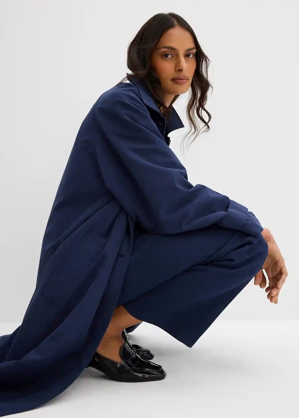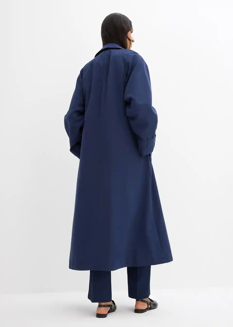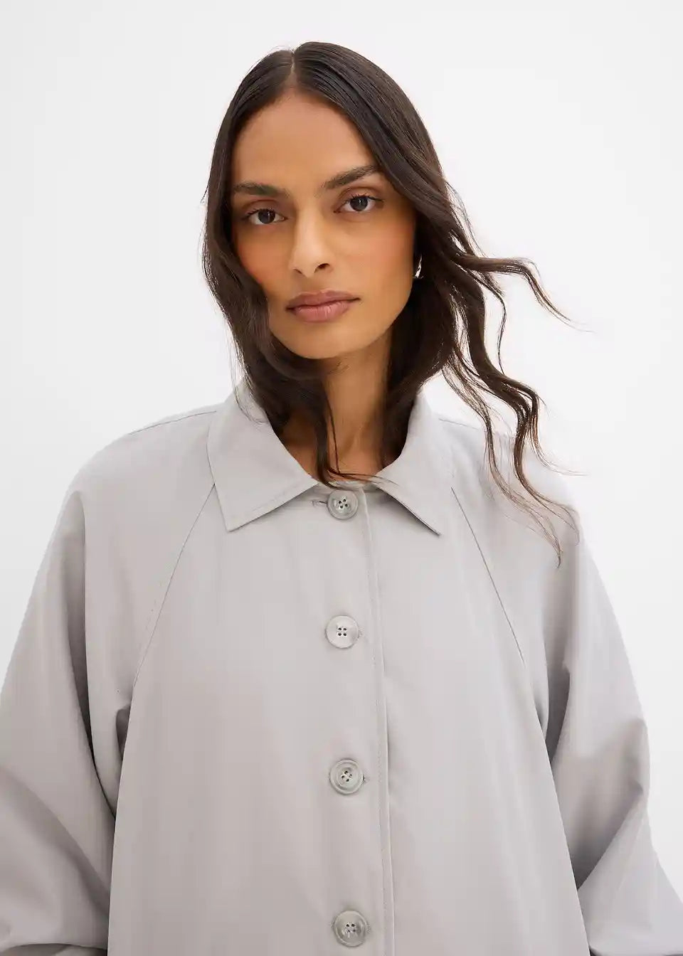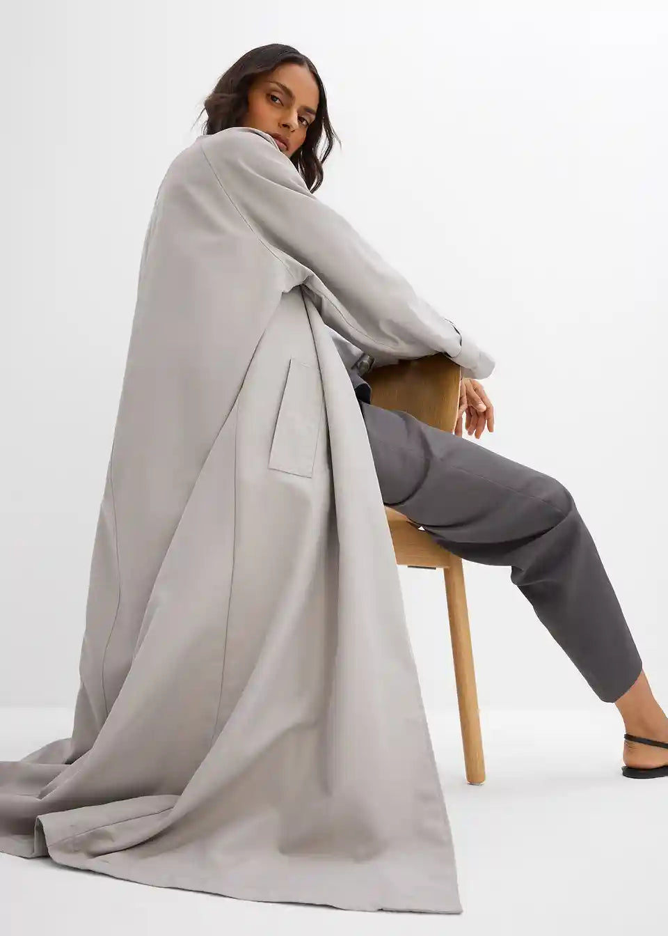 Trenchcoat do listova, jednoredni, s ovratnikom, podesivim trakama na rukavima i bočnim ušivenim džepovima.