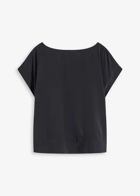 • Tunika u kroju bluze od satena sa sjajem i prošivenim rubovima