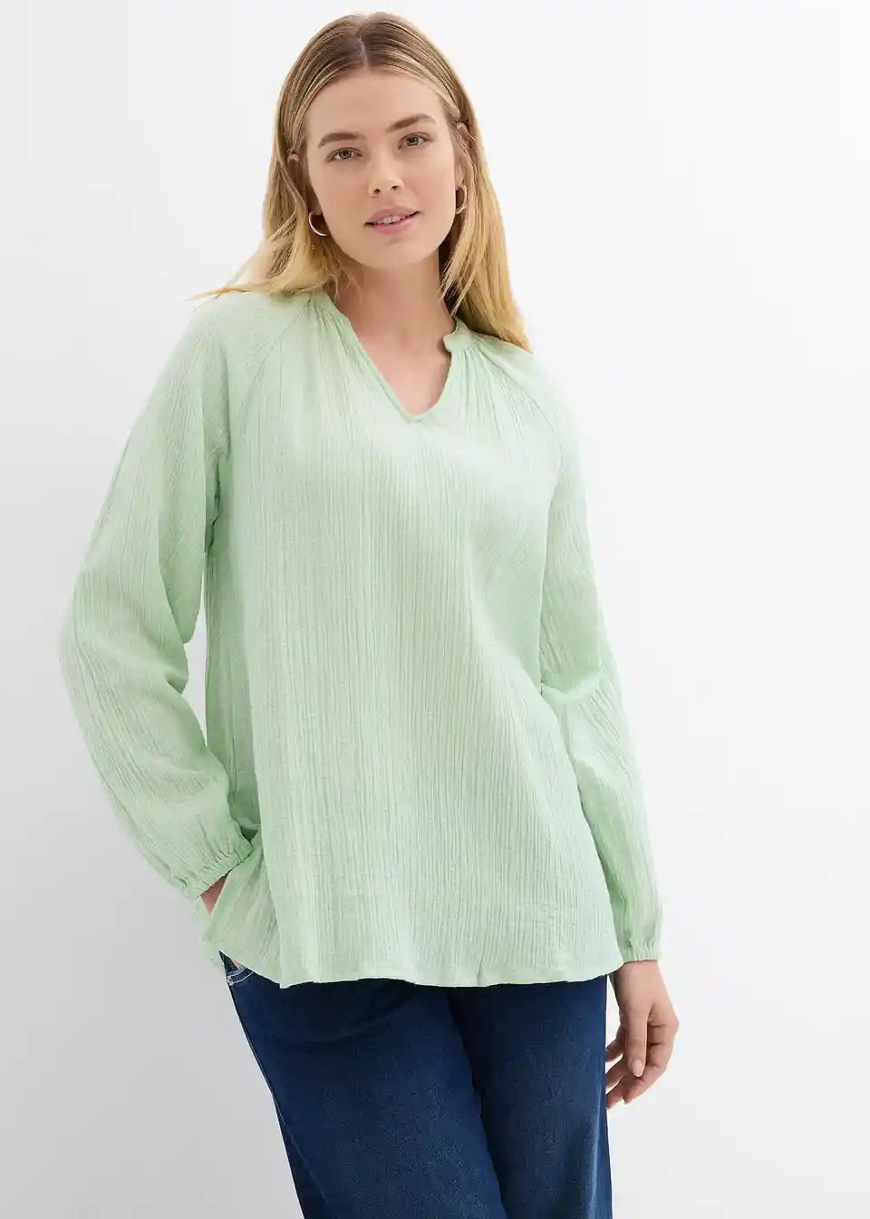 Dugačka tunika s dugim rukavima od muslina s V-izrezom