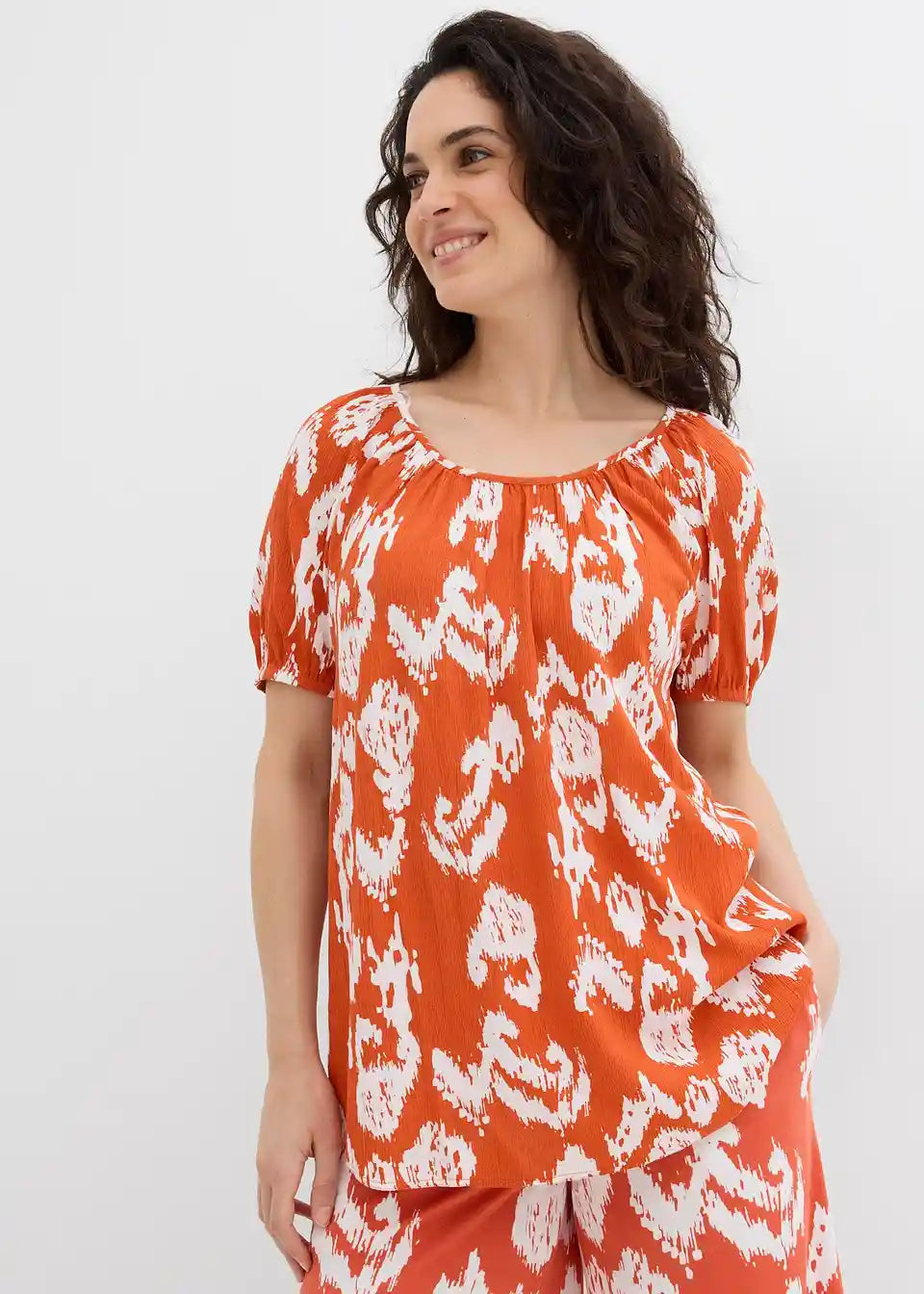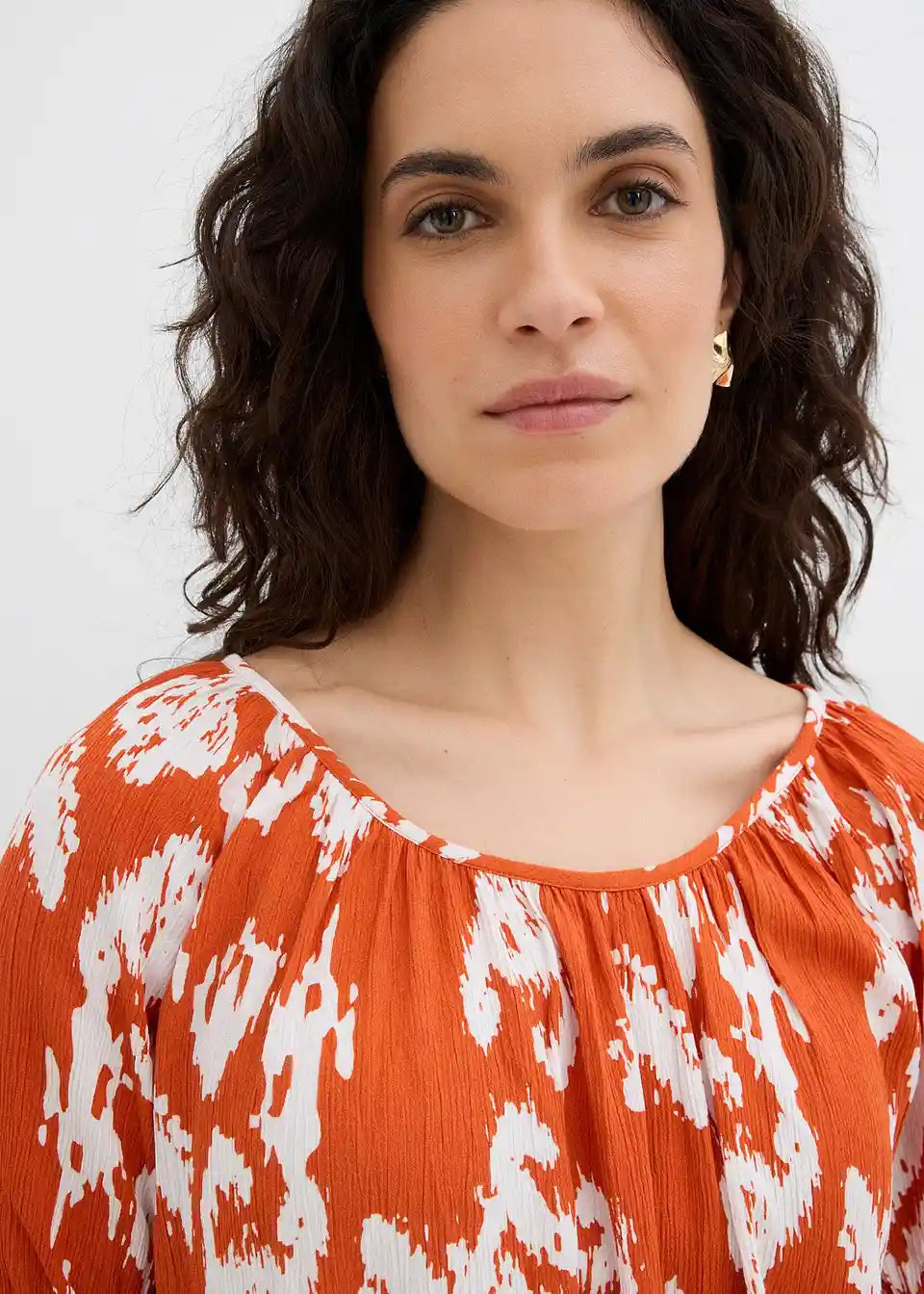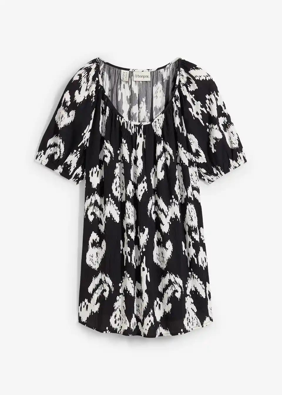 Tunike-bluza od lagano strukturirane viskoze. S elastičnim završetkom na rubu rukava i laganim A-krojem.