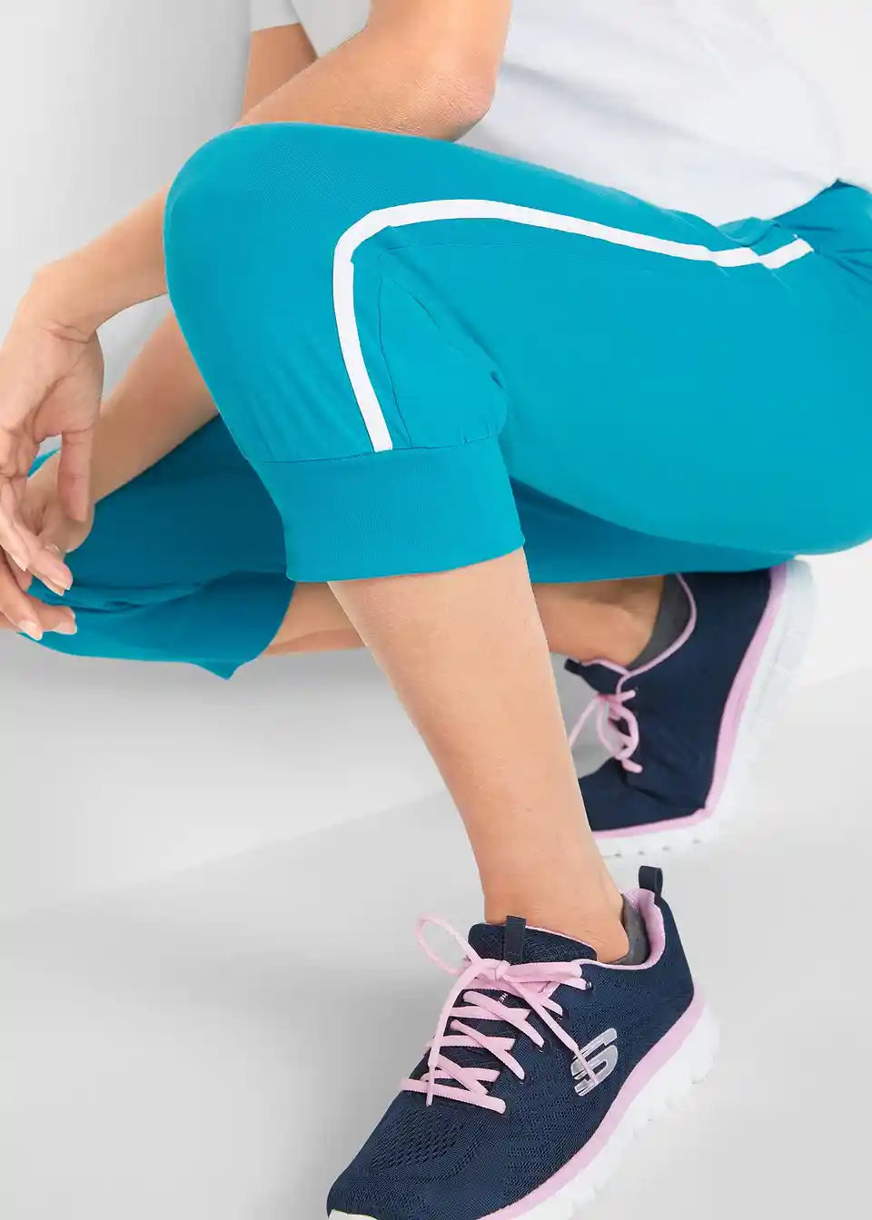 idealne za lagane sportske aktivnosti i lagane treninge, elastični pojas, bočni džepovi, unutarnja duljina nogavica u broju 40/42 cca 49 cm, perive u perilici rublja.