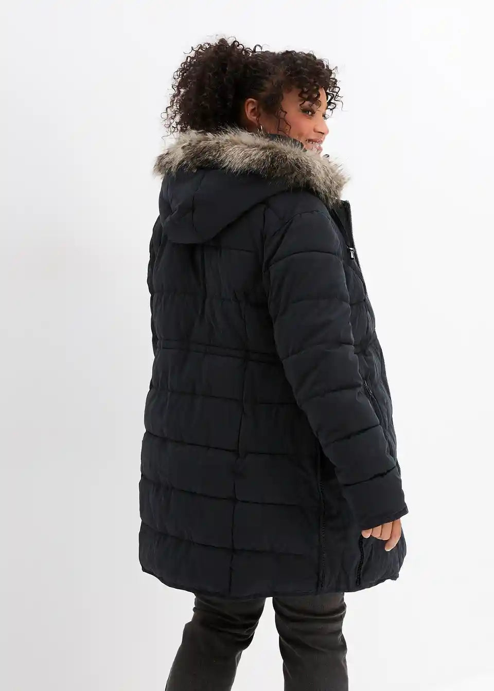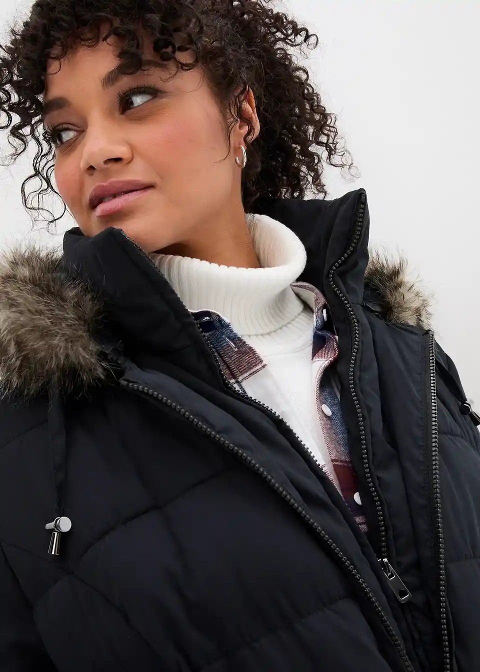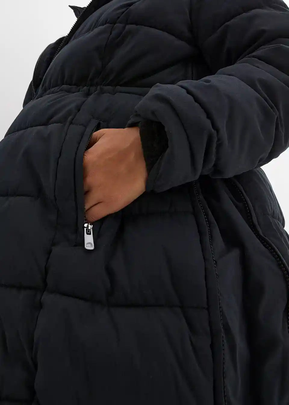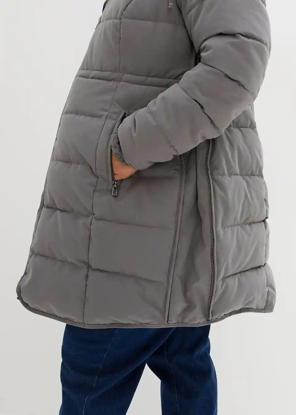 Prošivena jakna s umecima za nošenje bebe i bočnim patentnim zatvaračima za podešavanje širine, što omogućuje nošenje jakne tijekom trudnoće i nakon nje. Odvojiva kapuljača ima aplikaciju od krzna i vezice sa stoperima. Umetak za bebu, praktični džepovi s patentnim zatvaračima i porubi rukava podstavljeni su mekanim flisom. Unutarnja regulacija struka omogućuje dodatno prilagođavanje širine. S dvosmjernim patentnim zatvaračem.