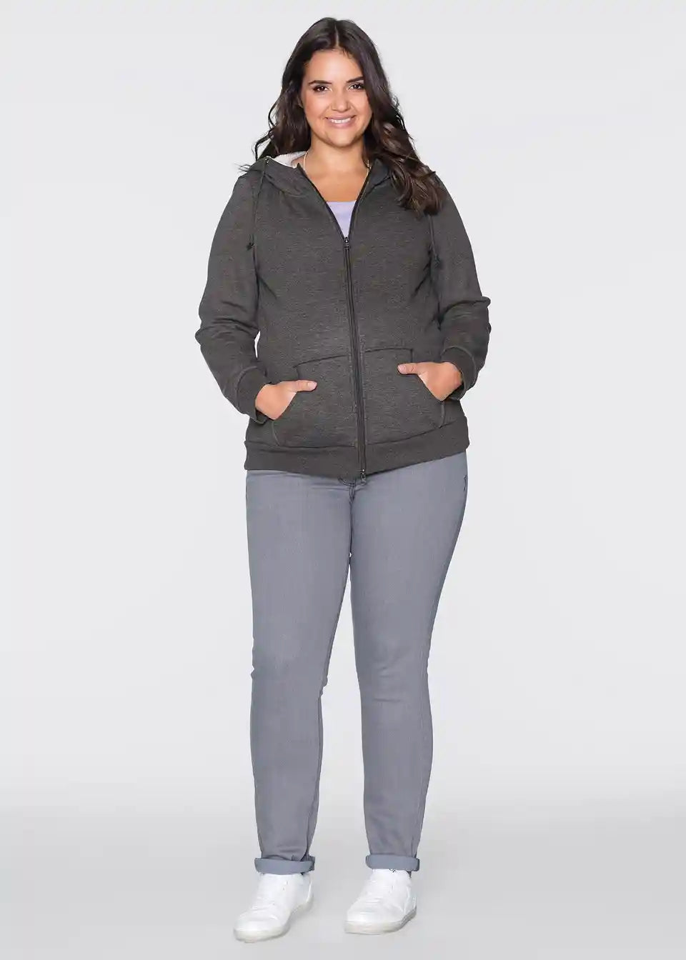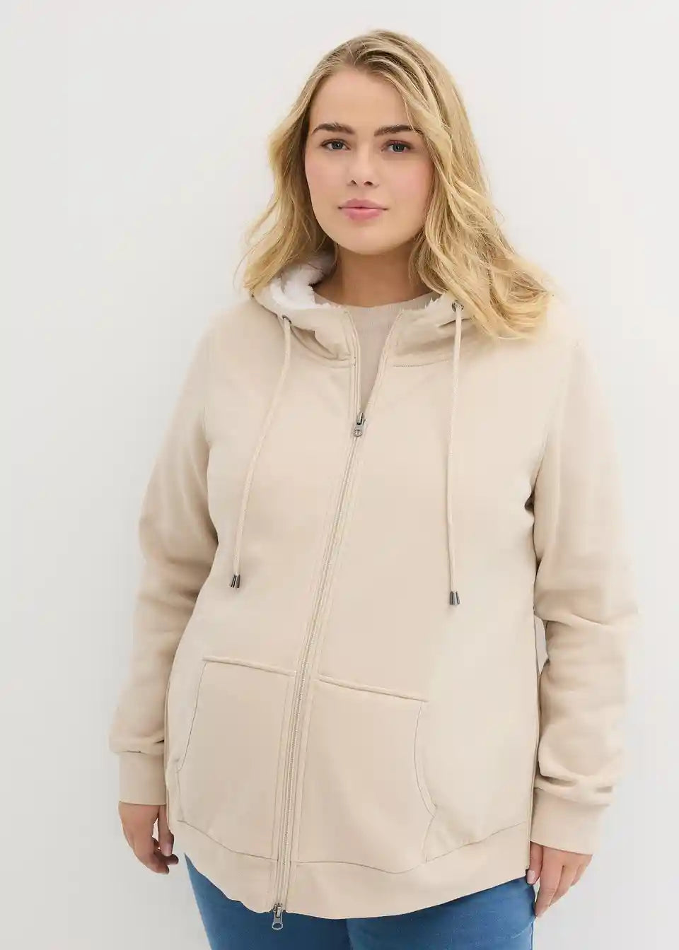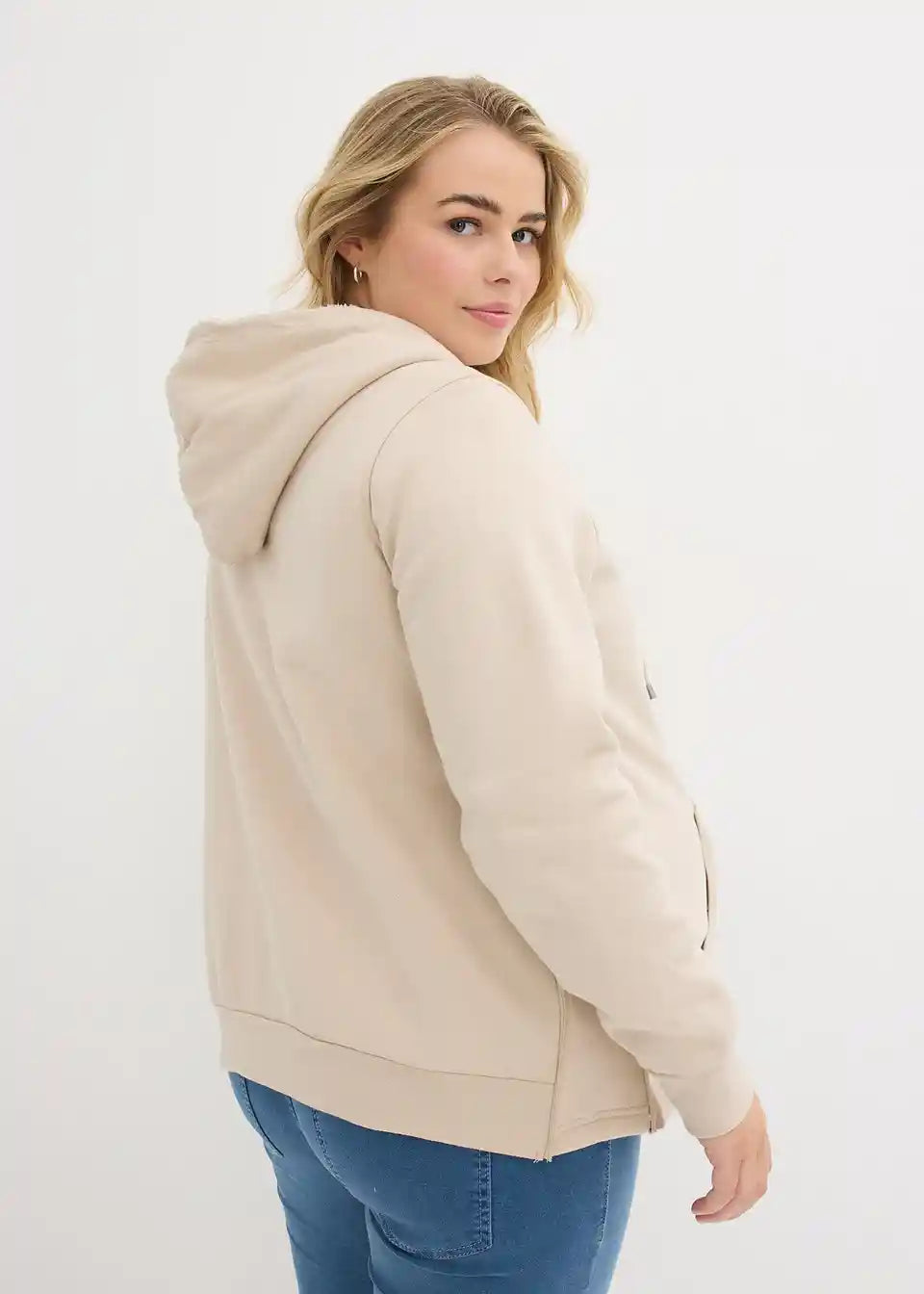 Supermekana sweat jakna za trudnice i majke posebno je praktična jer je opremljena umetkom za bebu. Tako se trudnička jakna nakon poroda može jednostavno nositi preko remena za nošenje bebe. Tijekom trudnoće, elastični materijal prilagođava se rastućem trbuščiću i zato je prikladan za svih devet mjeseci. Kontrastna unutarnja podstava jakne za sweat je posebno mekana i udobna za majku i dijete. Umetak za nošenje služi samo za zaštitu bebe i nema funkciju nošenja!