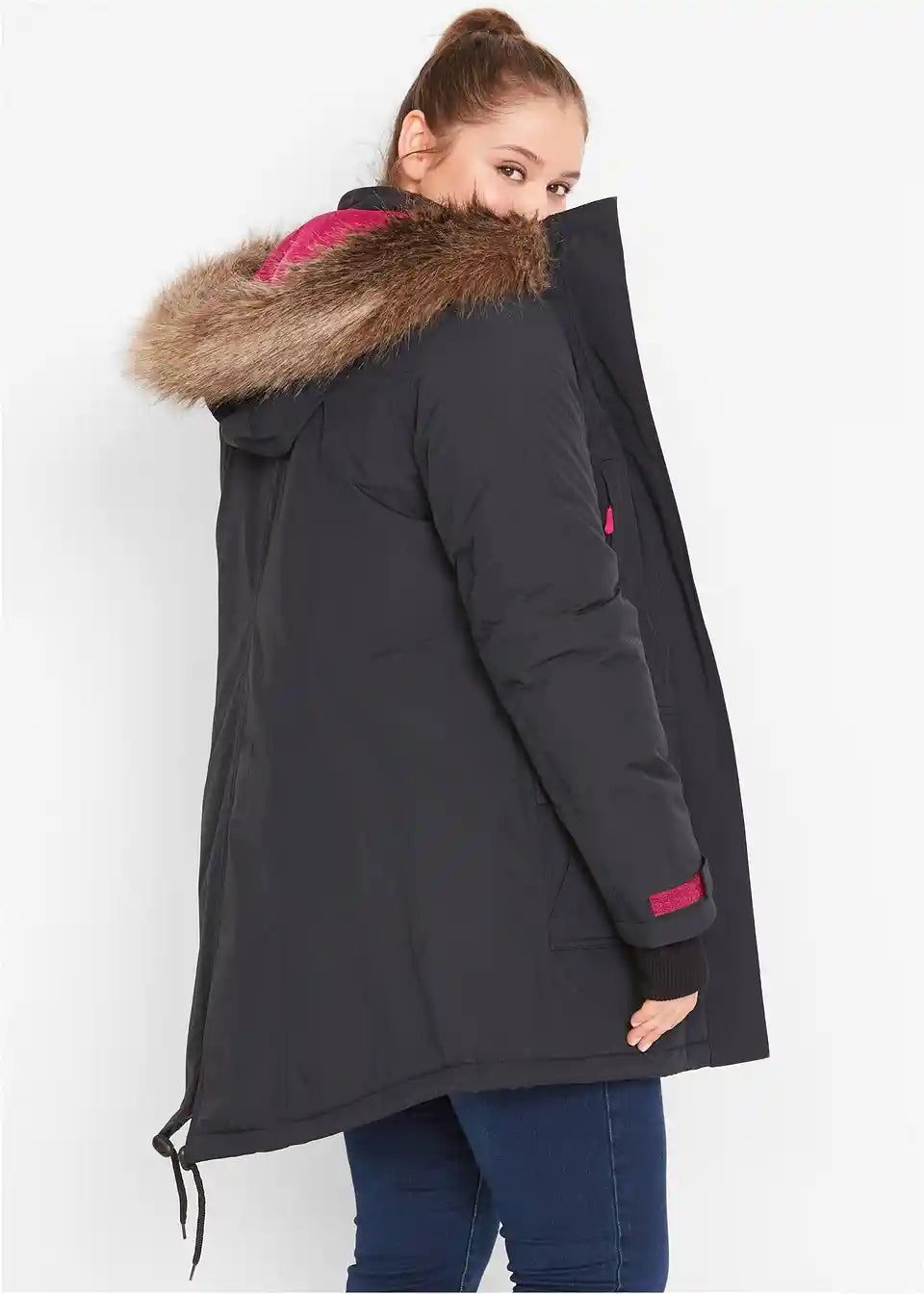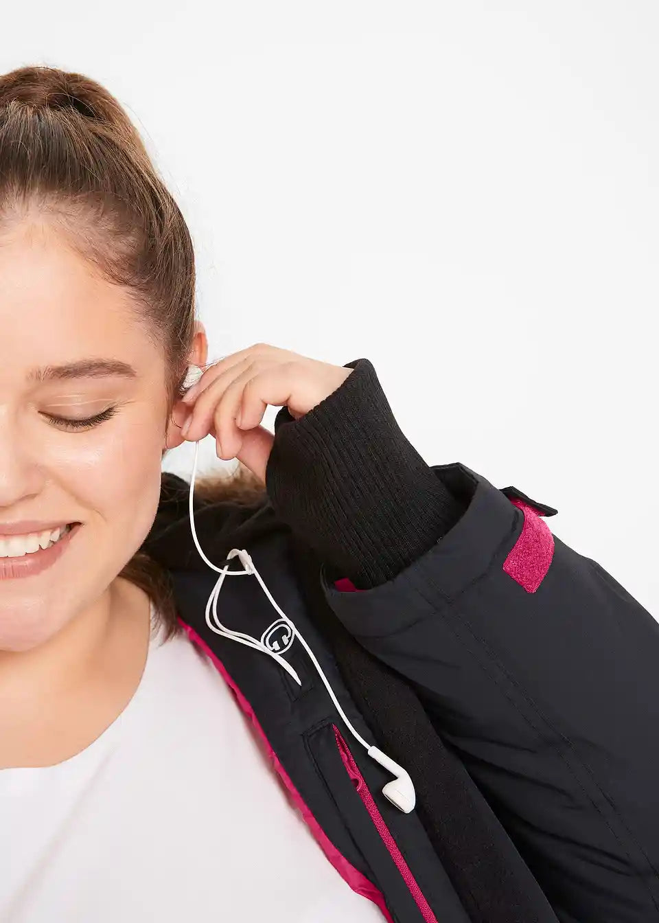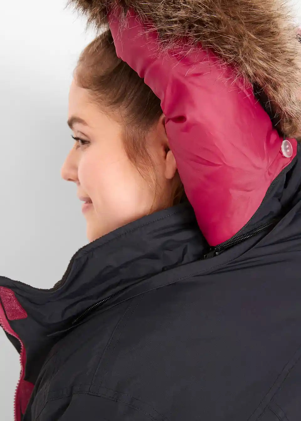 Ova podstavljena funkcionalna outdoor parka ne ostavlja svoju nositeljicu na kiši. Vodootporna i vjetronepropusna parka marke bpc oduševljava mnogim detaljima: dvosmjerni patentni zatvarač s zaštitom za bradu, ureznim i patentnim džepovima, unutarnjim džepom s funkcijom za kablove, otvorima za palac i kapuljačom. Lastavičji rep na stražnjoj strani može se regulirati vezicama. Kapuljača i ovratnik mogu se skinuti na ovom modelu koji diše.