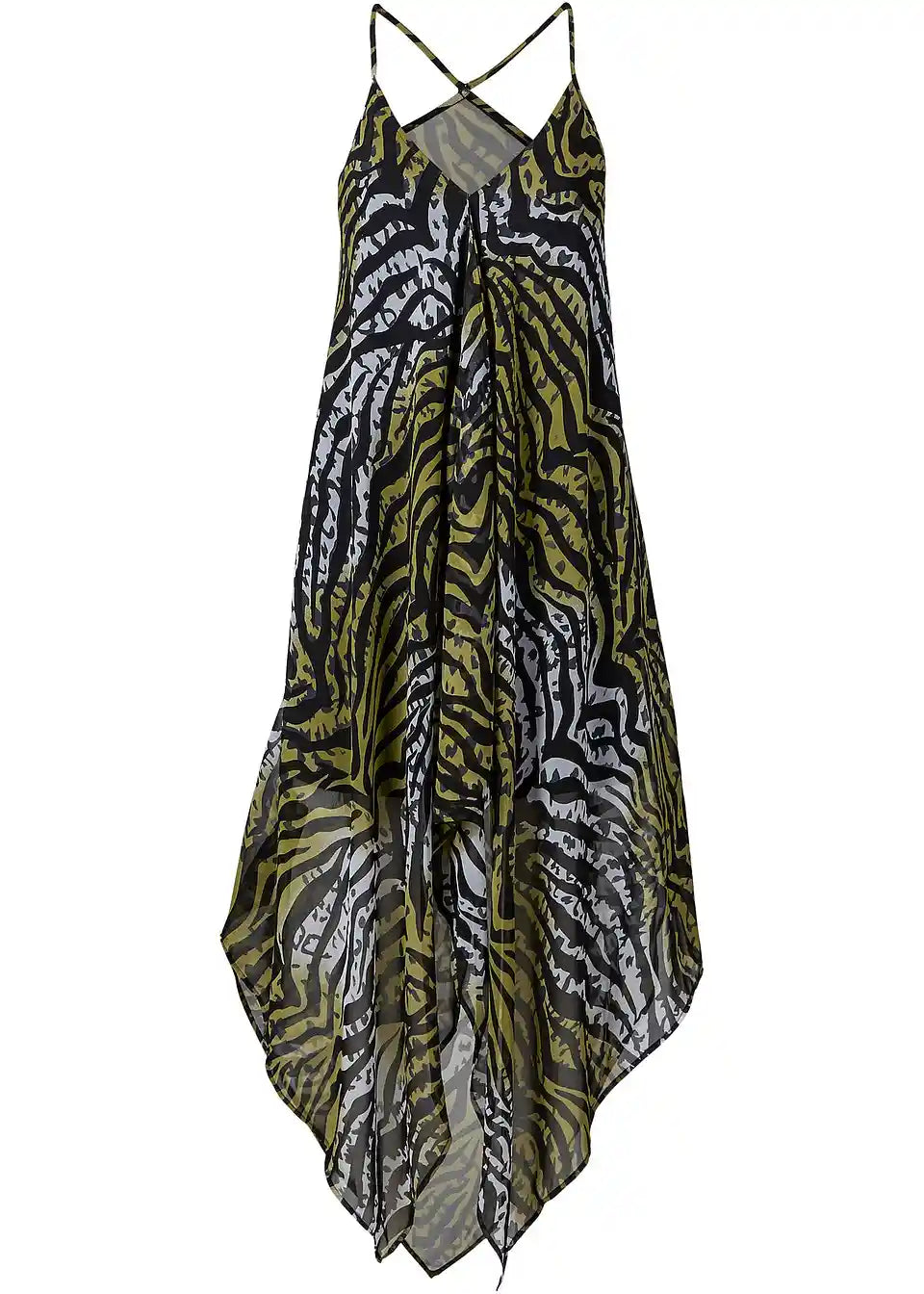 S ovim laganim, prozračnim haljinom za plažu, elegantne dame su savršeno odjevene na moru. Atraktivna haljina iz aktualne kolekcije bpc selection posebno očarava svojim rafiniranim krojem: Ima duboki V-izrez, naramenice koje se križaju na leđima i kraća je sa strane nego sprijeda i straga.