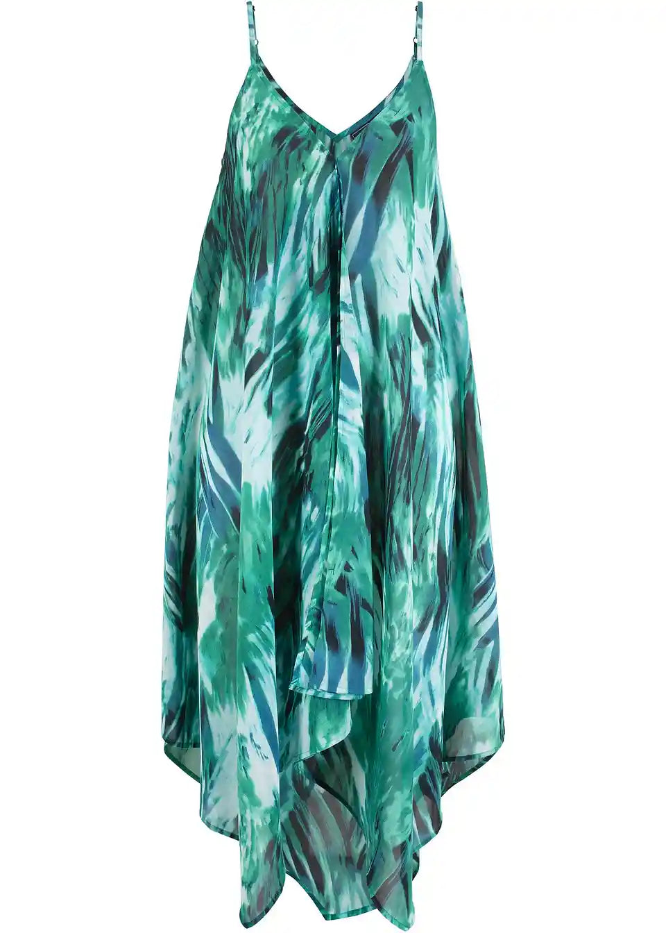 Haljina za plažu s podesivim naramenicama na leđima. S V-izrezom. Asimetričan rub.